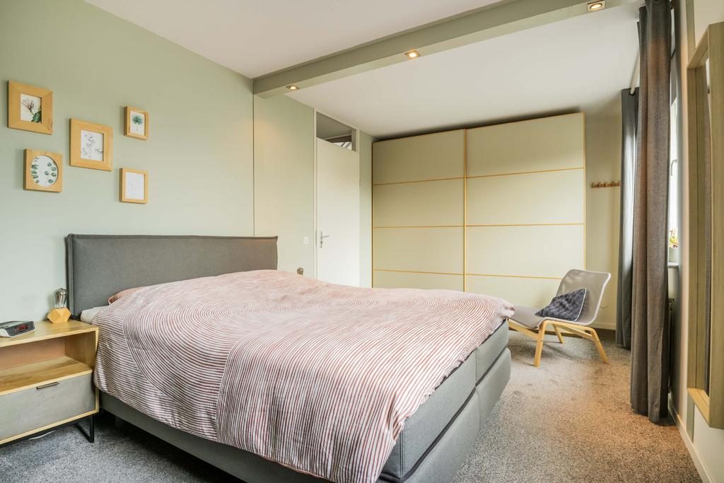 Vanaf de overloop zijn drie slaapkamers, de badkamer en de tweede toiletruimte te bereiken. De slaapkamer aan de achterzijde is een ruime hoofdslaapkamer. Aan de voorzijde zijn de andere twee slaapkamers. In de slaapkamers ligt laminaat op de vloer.