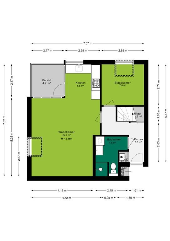 Vanuit de keuken is er toegang tot het gezellige balkon, waar je heerlijk vrij wegkijkt. Hier geniet je van optimale privacy.