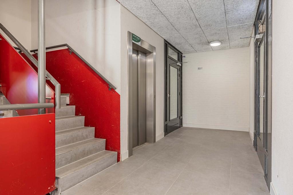 Het appartementencomplex heeft een centrale entree naast het parkeerterrein van het gebouw. De centrale portiek is afgesloten en heeft een bellenplateau. De centrale hal geeft toegang tot het trappenhuis en de lift. De gangen zijn onlangs voorzien van nieuwe PVC-vloerafwerking.