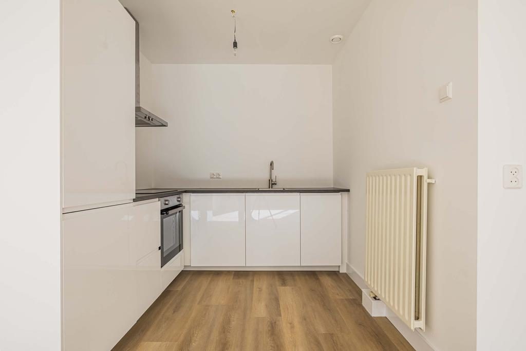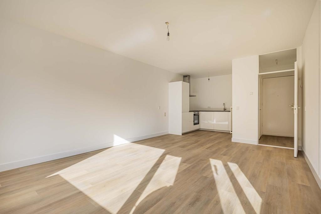 Entree/hal met toegang tot de meterkast en cv kast met plek voor de wasmachine. Stap de ruime woonkamer in met open keuken, vanuit de woonkamer loop je de tuin in. De grote raampartijen zorgen voor veel licht in het appartement. De moderne open keuken (2025) beschikt over de volgende inbouwapparatuur: