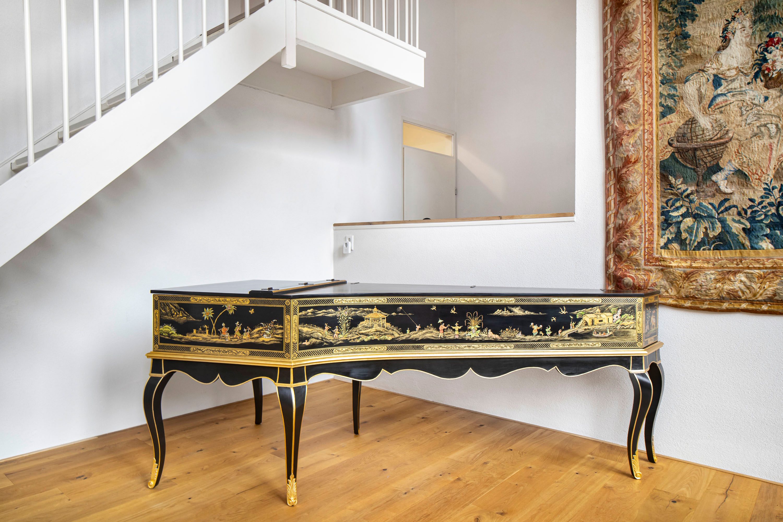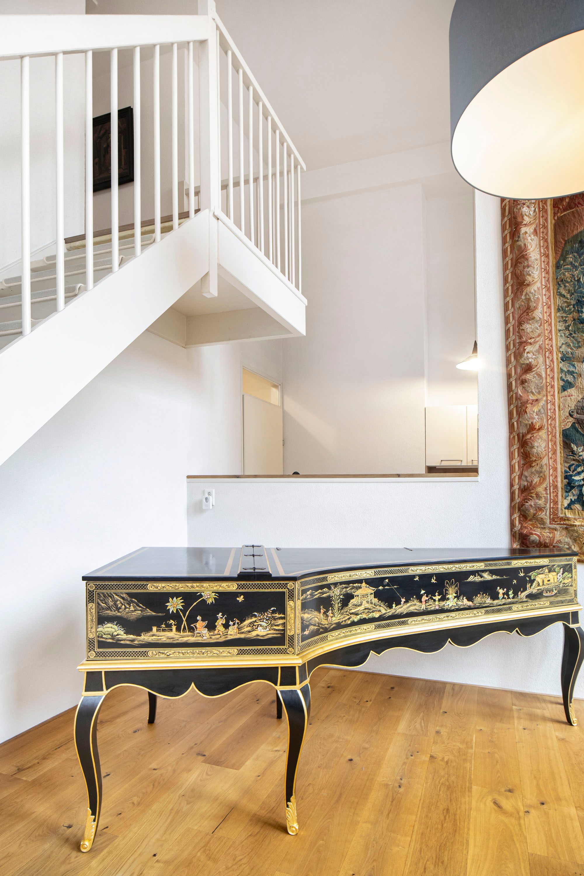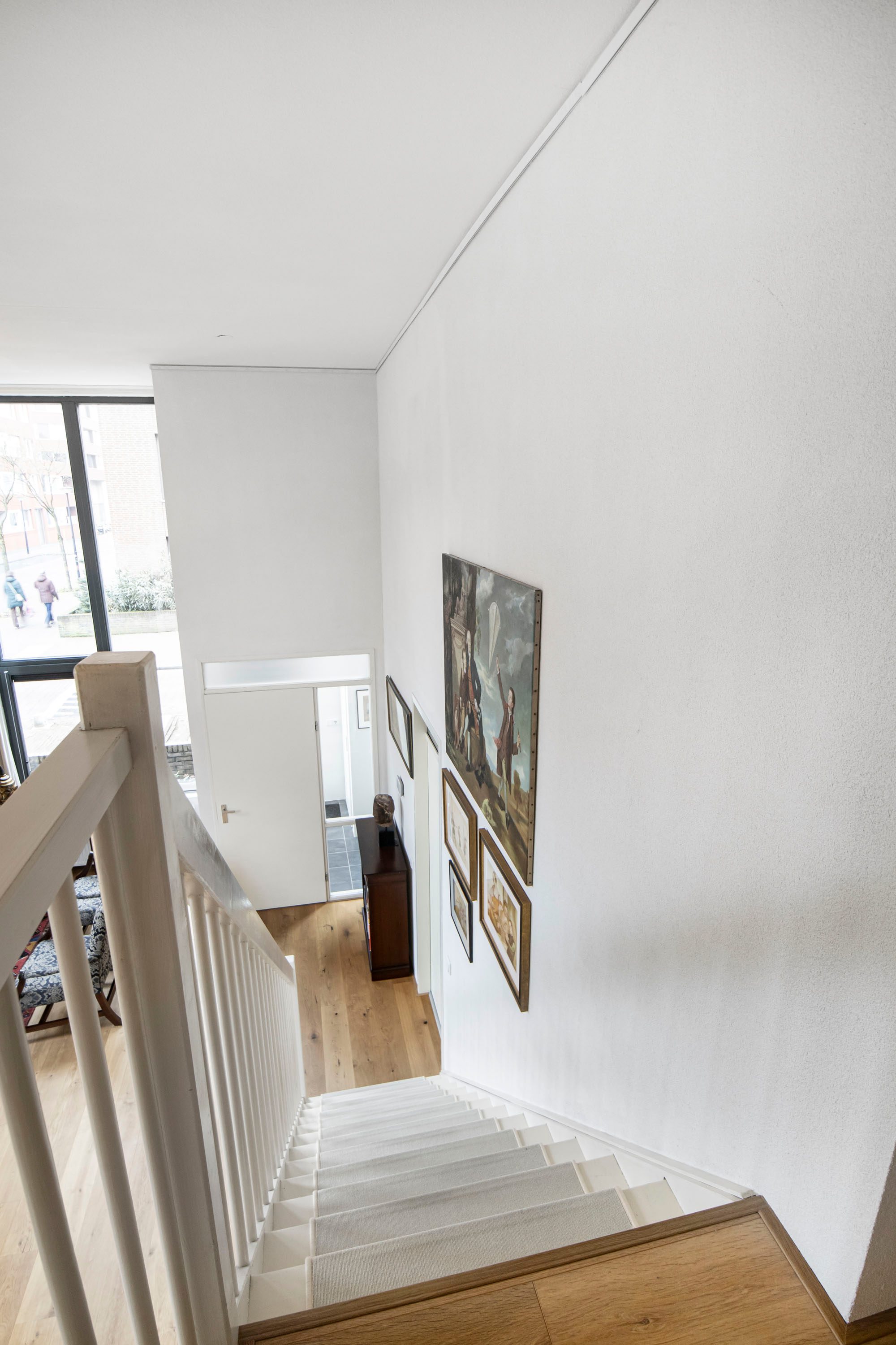 Via de open trap en vide bereik je de verdieping.