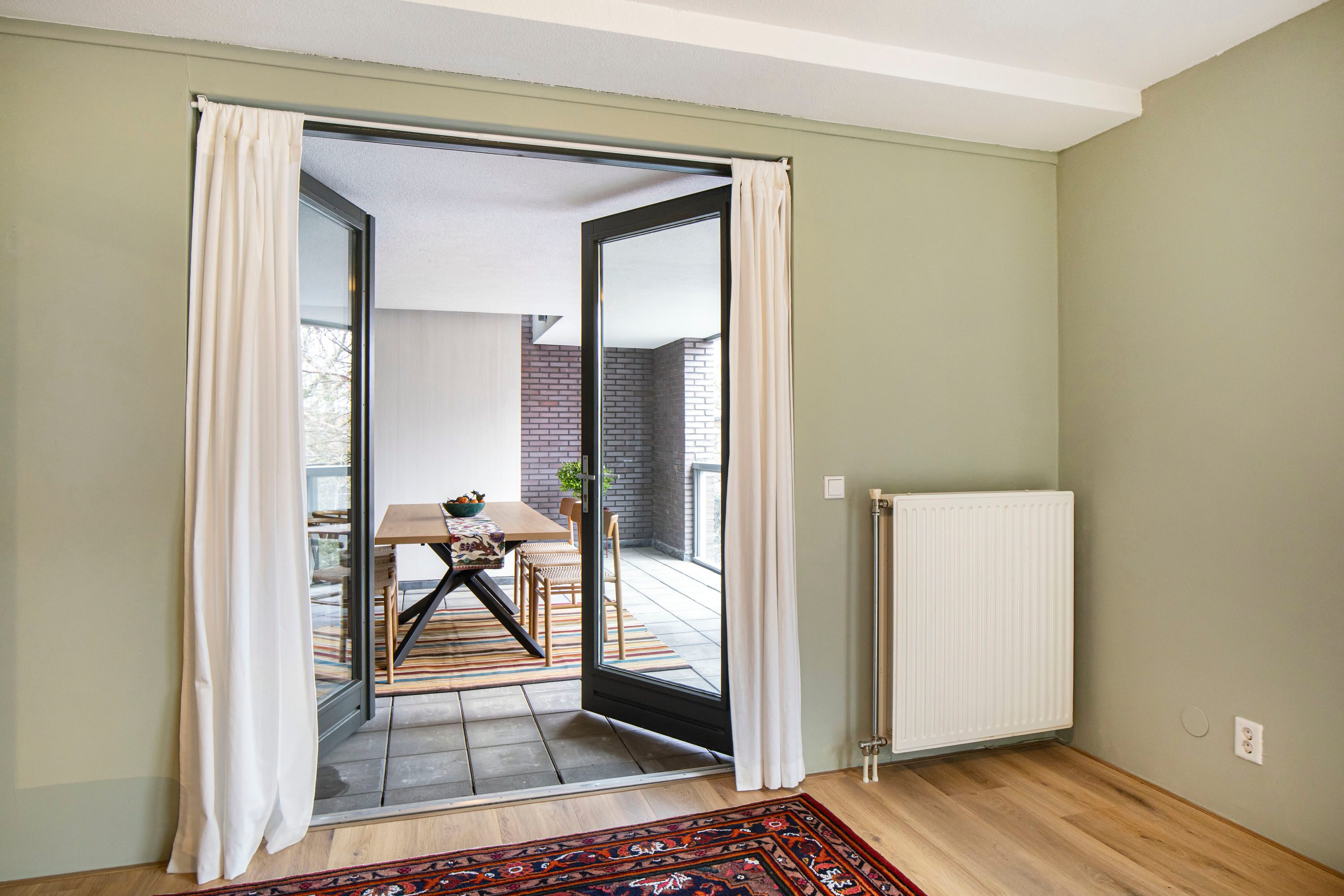De royale loggia is een fijne en beschutte plek waar je het hele jaar door buiten kunt zitten. De loggia is uitermate geschikt om in alle privacy te kunnen ontspannen, waar je vrienden kunt ontvangen en de kinderen veilig kunnen spelen. Vanuit de loggia heb je via een toegangsdeur direct toegang tot de gemeenschappelijke binnentuin, die exclusief beschikbaar is voor bewoners van het complex. Daarnaast beschikt de woning over de naastgelegen tuin, wat zorgt voor extra buitenruimte.