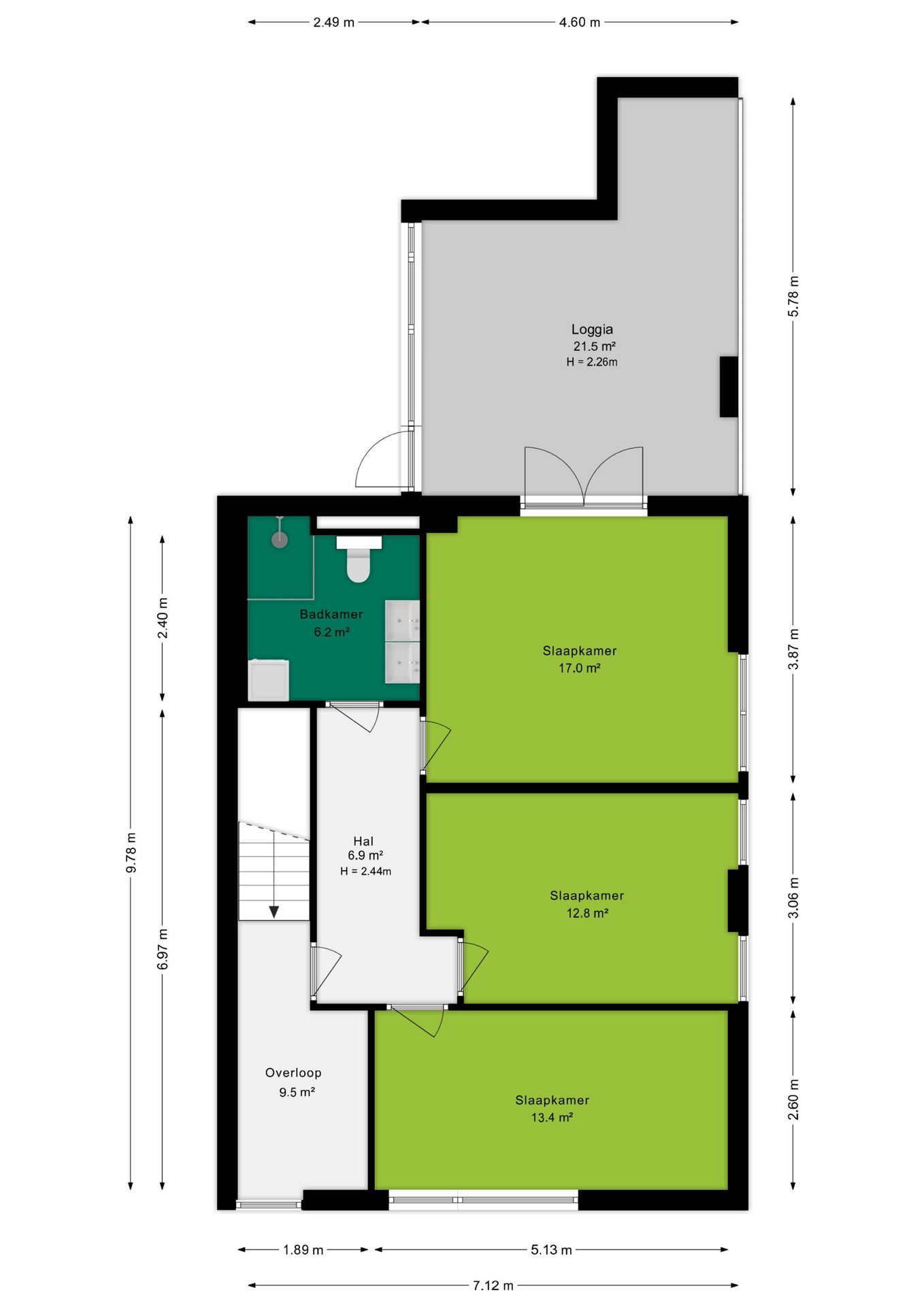Op de overloop heb je toegang tot drie ruim bemeten slaapkamers en de badkamer. De overloop is zeer ruim en beschikt over twee inbouw-kledingkasten.