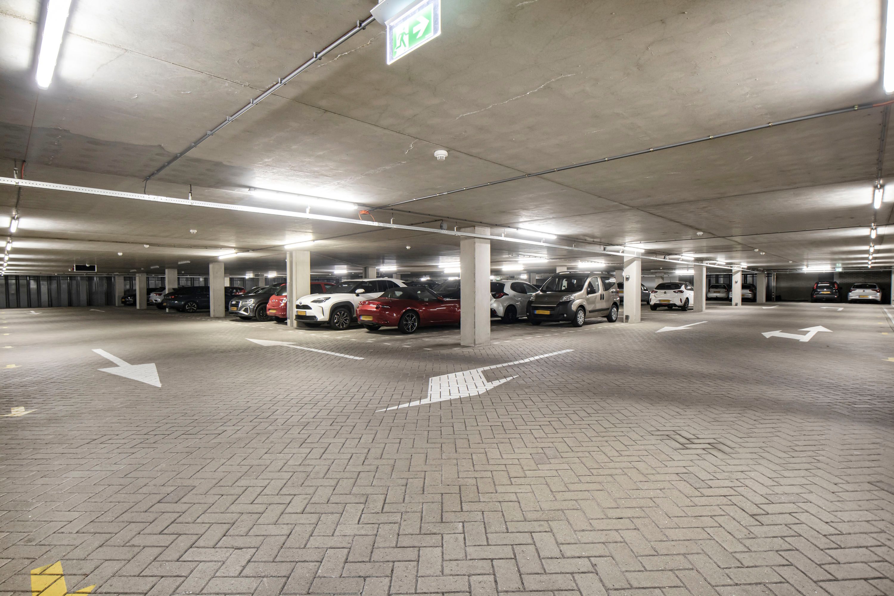 De woning beschikt over een extra lange parkeerplaats in de onderbouw, geschikt voor twee auto’s. Daarnaast is er een ruime privéberging aanwezig, ideaal voor fietsen, opslag of hobbygebruik.