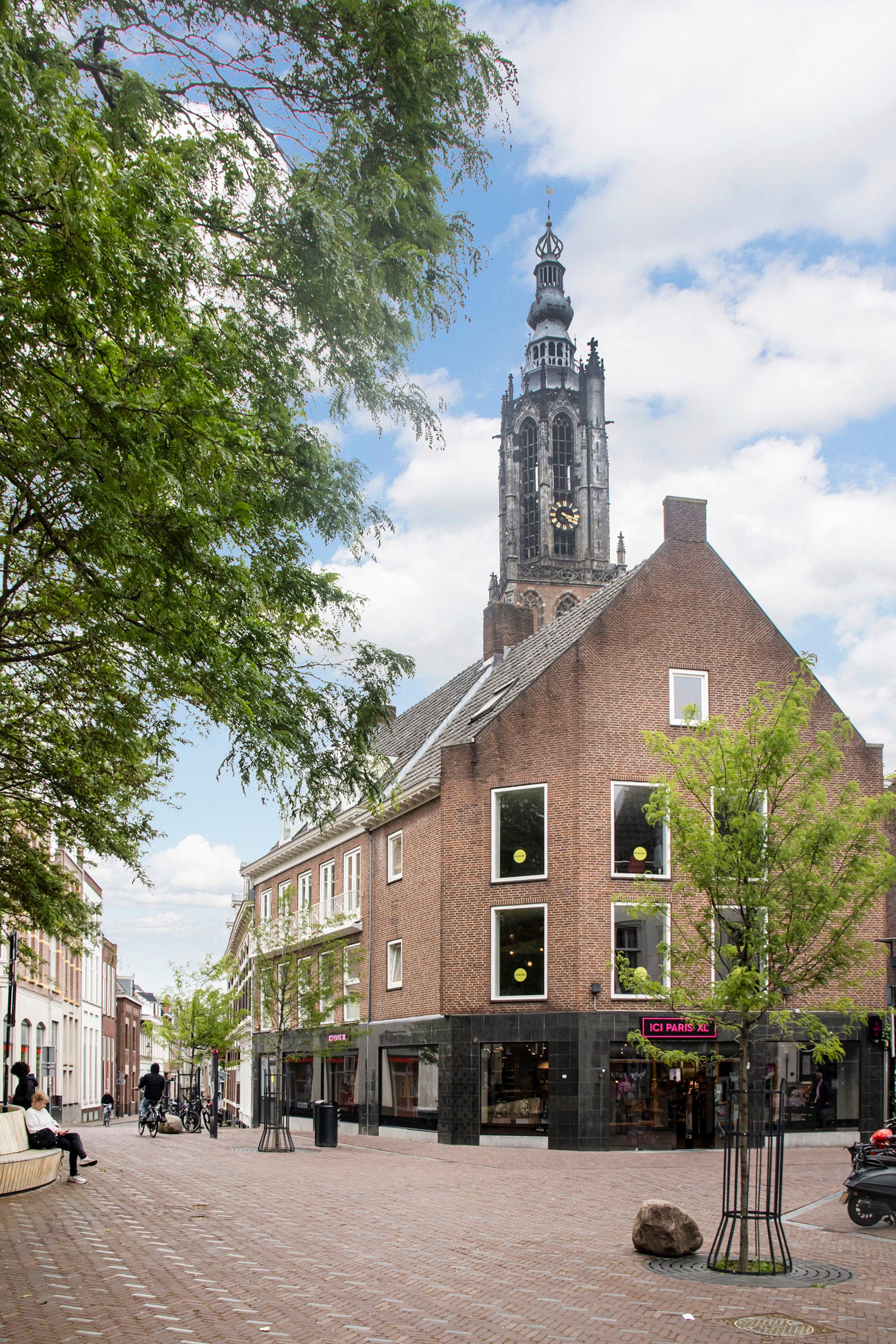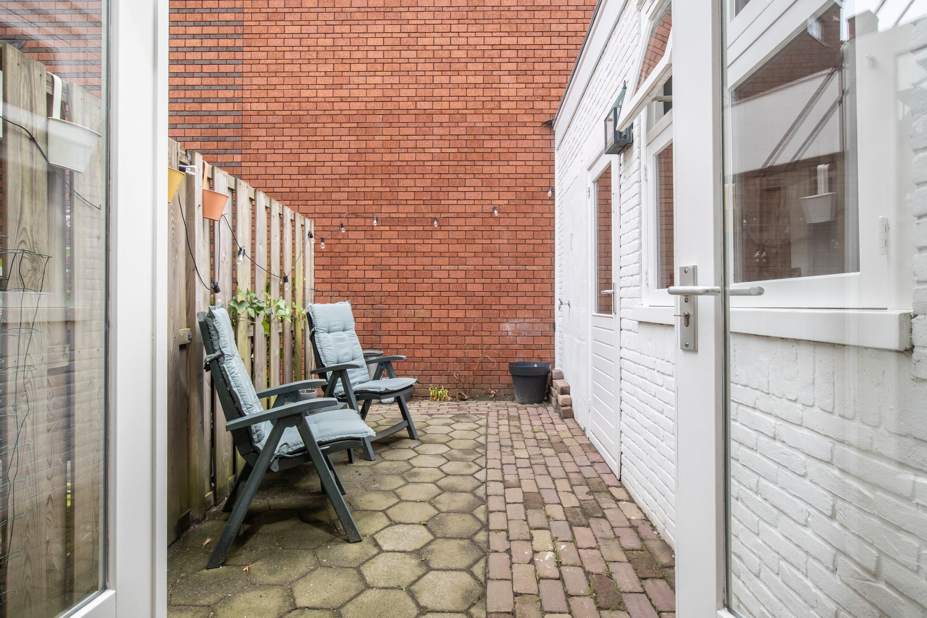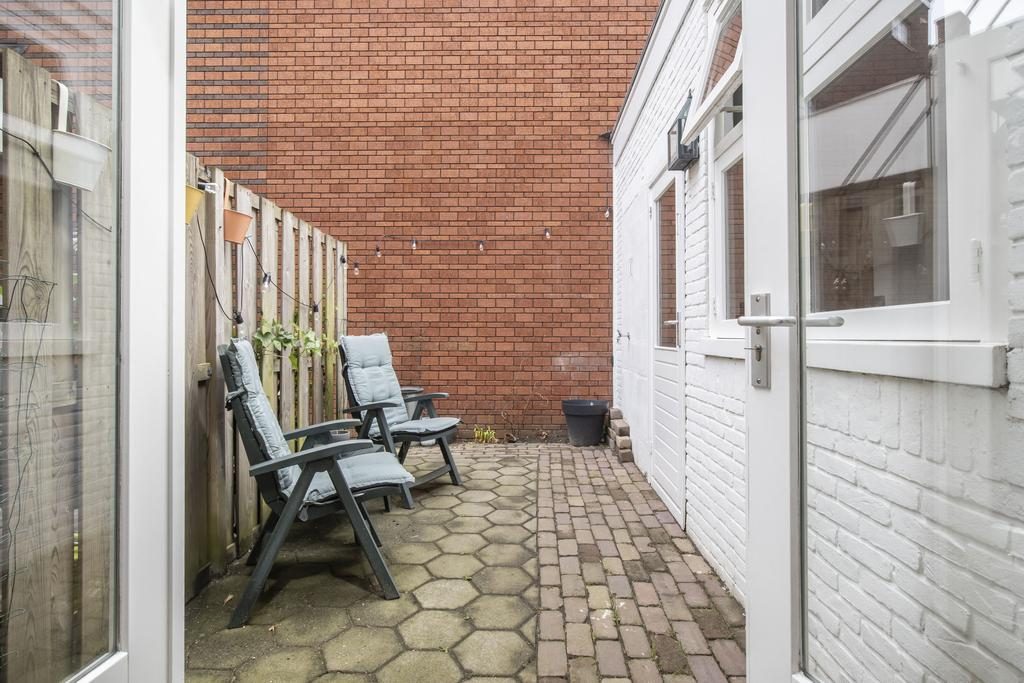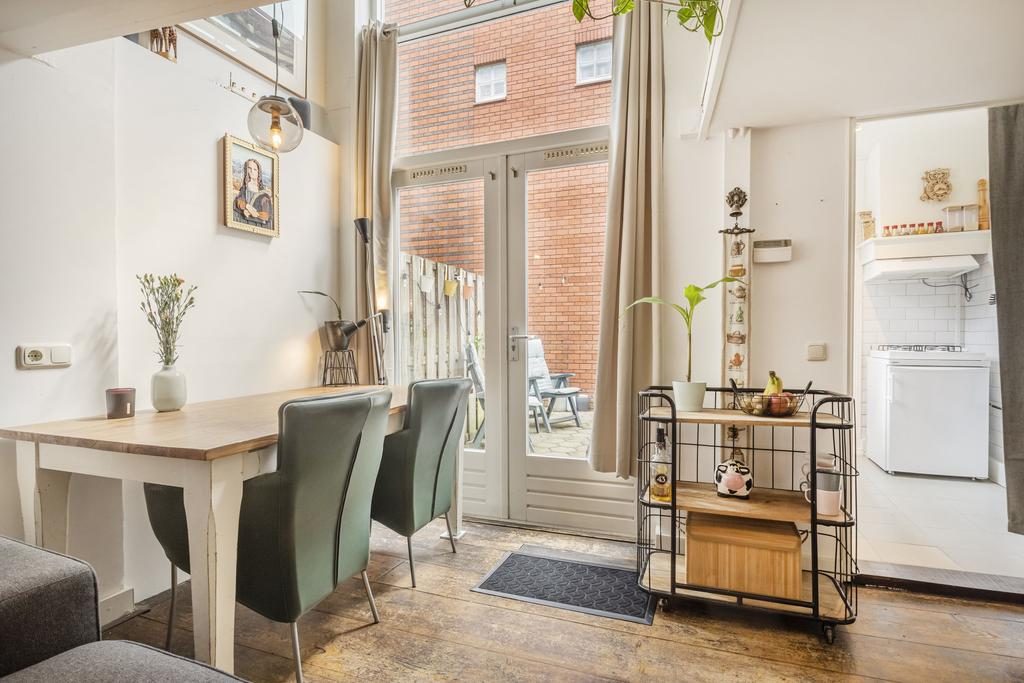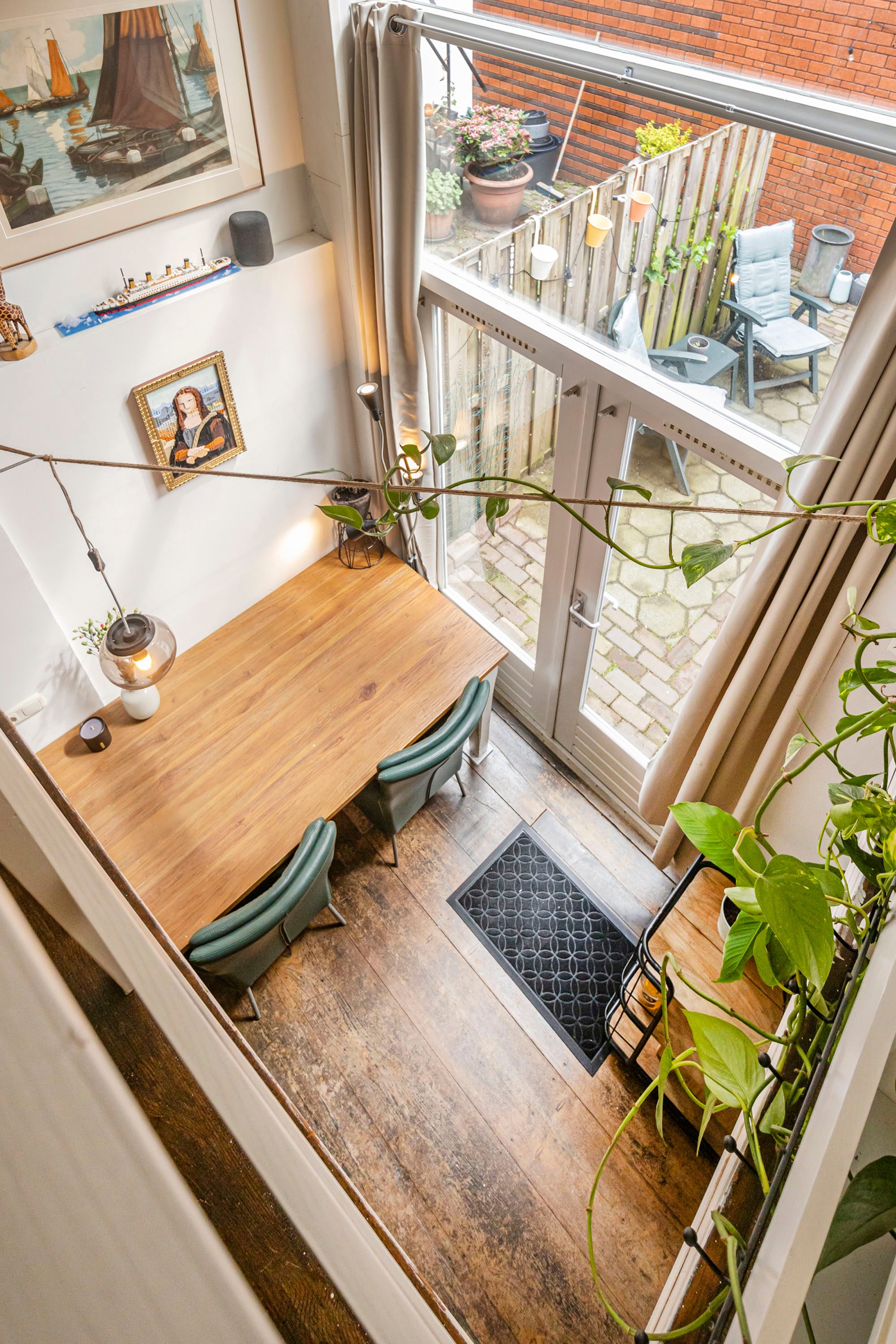 Vanuit de woonkamer stap je zo de tuin in via de openslaande deuren. Zodra je de tuin instapt, valt direct de kalmte op, een zeldzame stilte in het levendige hart van Amersfoort.