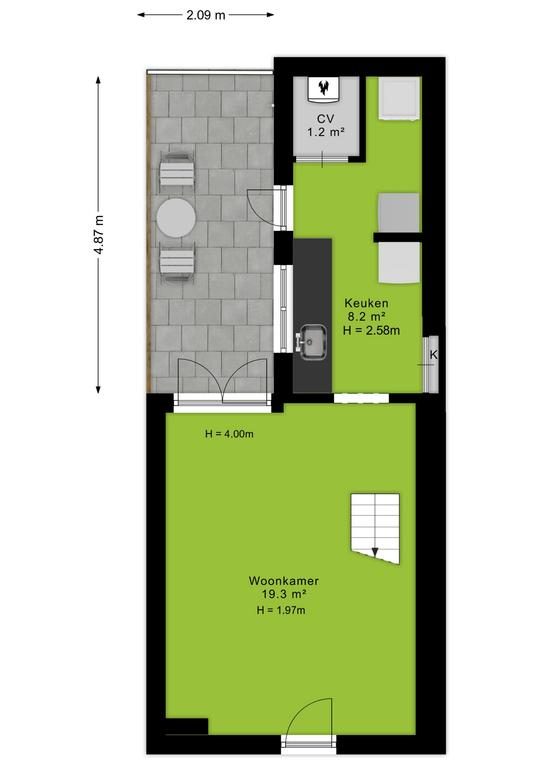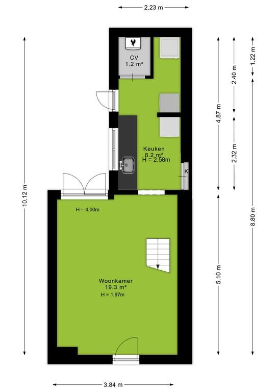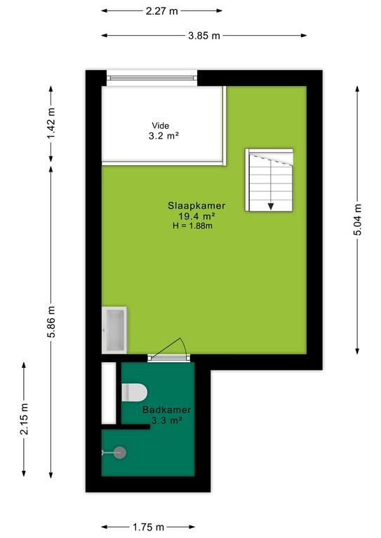 Let op: De woning heeft een officieel woonoppervlak van circa 30 m² volgens de NEN 2580-meetinstructie. Dit komt doordat delen van de woning, zoals in dit geval de vide, niet voldoen aan de minimale hoogte-eisen van het Bouwbesluit. In de praktijk is er echter aanzienlijk meer bruikbare ruimte beschikbaar, wat zorgt voor extra comfort en flexibiliteit in het gebruik!