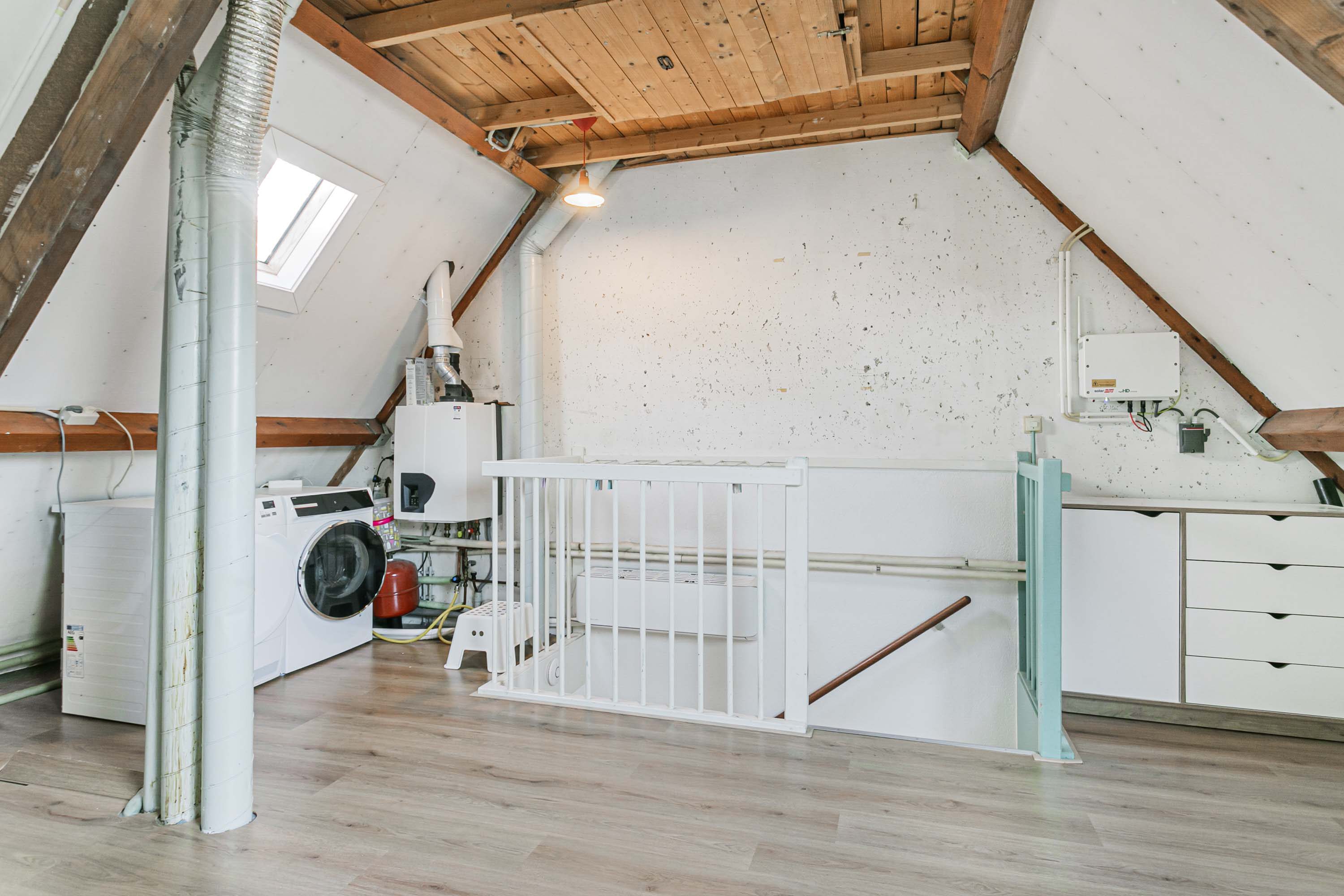 De tweede verdieping bestaat uit een ruime zolder met dakramen, cv-installatie en wasmachineaansluiting. Deze ruimte kan eenvoudig worden ingericht als extra slaapkamer, werkplek of hobbykamer.