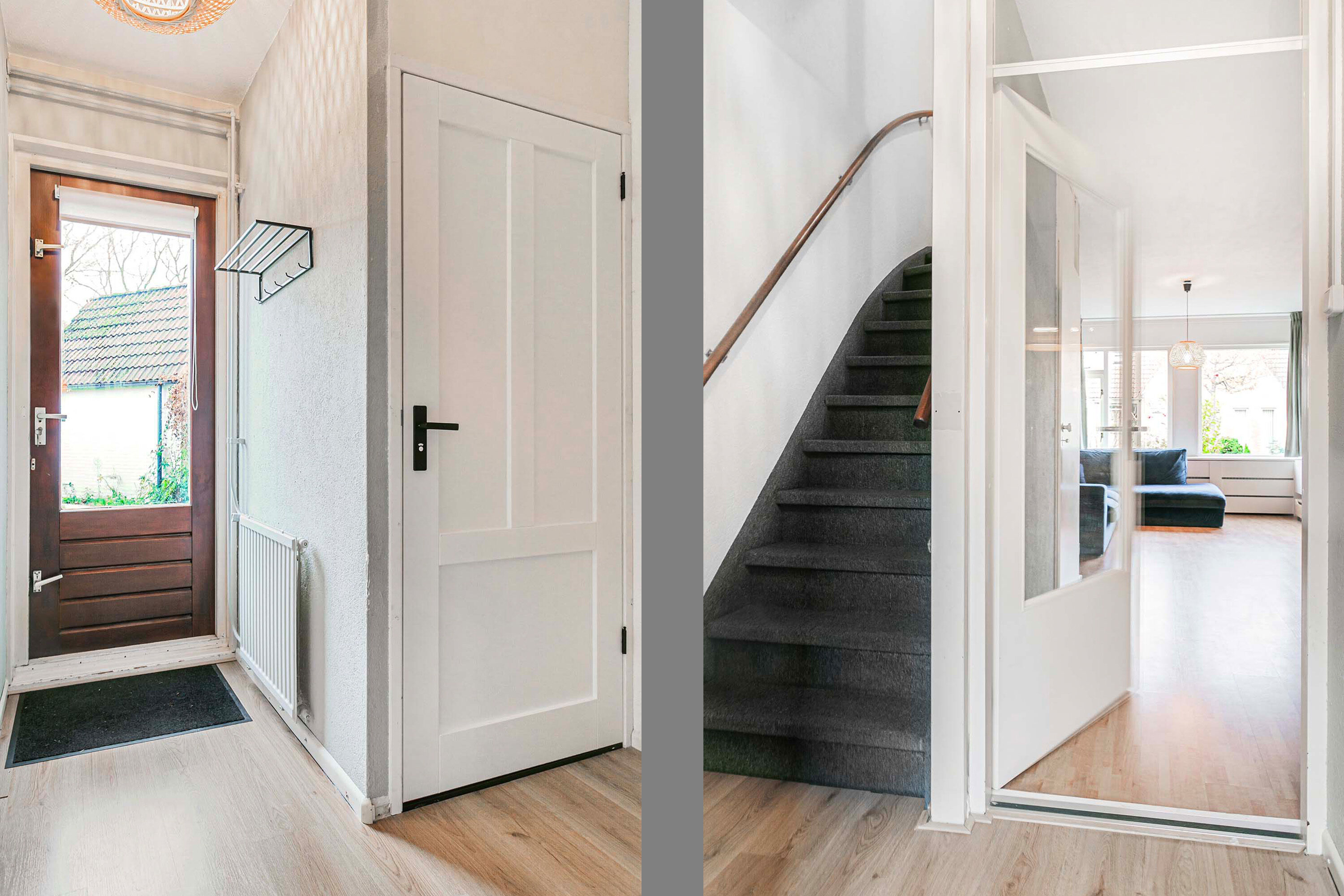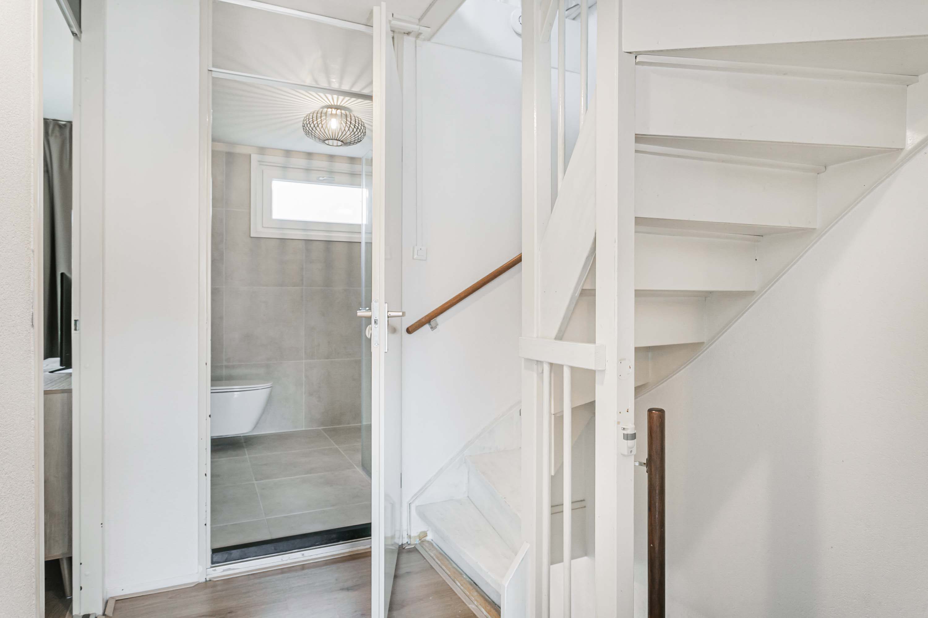 Bij binnenkomst in de entree vind je direct de meterkast. De lichte woonkamer valt meteen op door de grote ramen en het vele daglicht. Er is voldoende ruimte voor een zit- en eethoek. Aan de achterzijde ligt de hal met modern toilet en trapopgang naar de eerste verdieping.