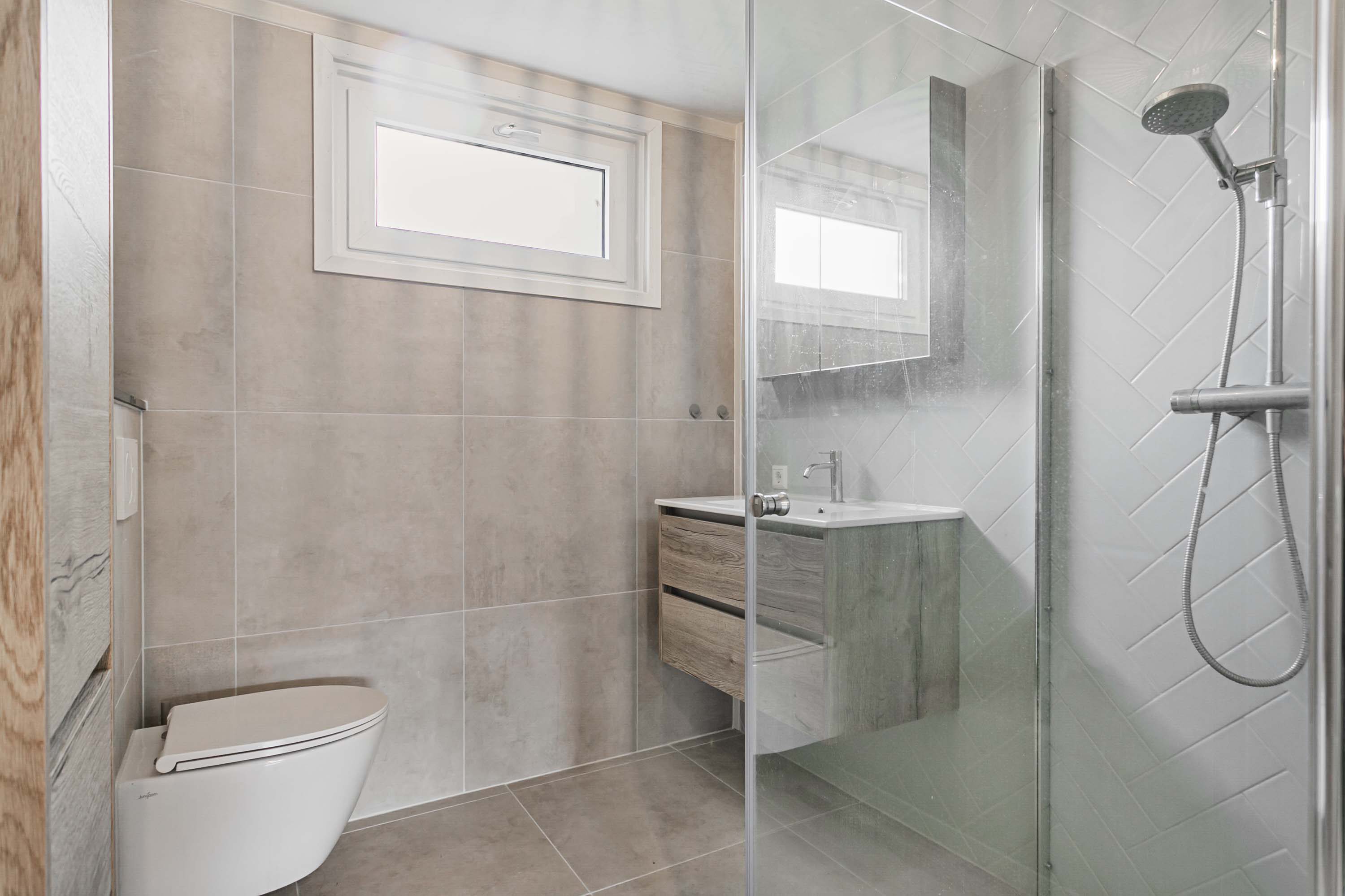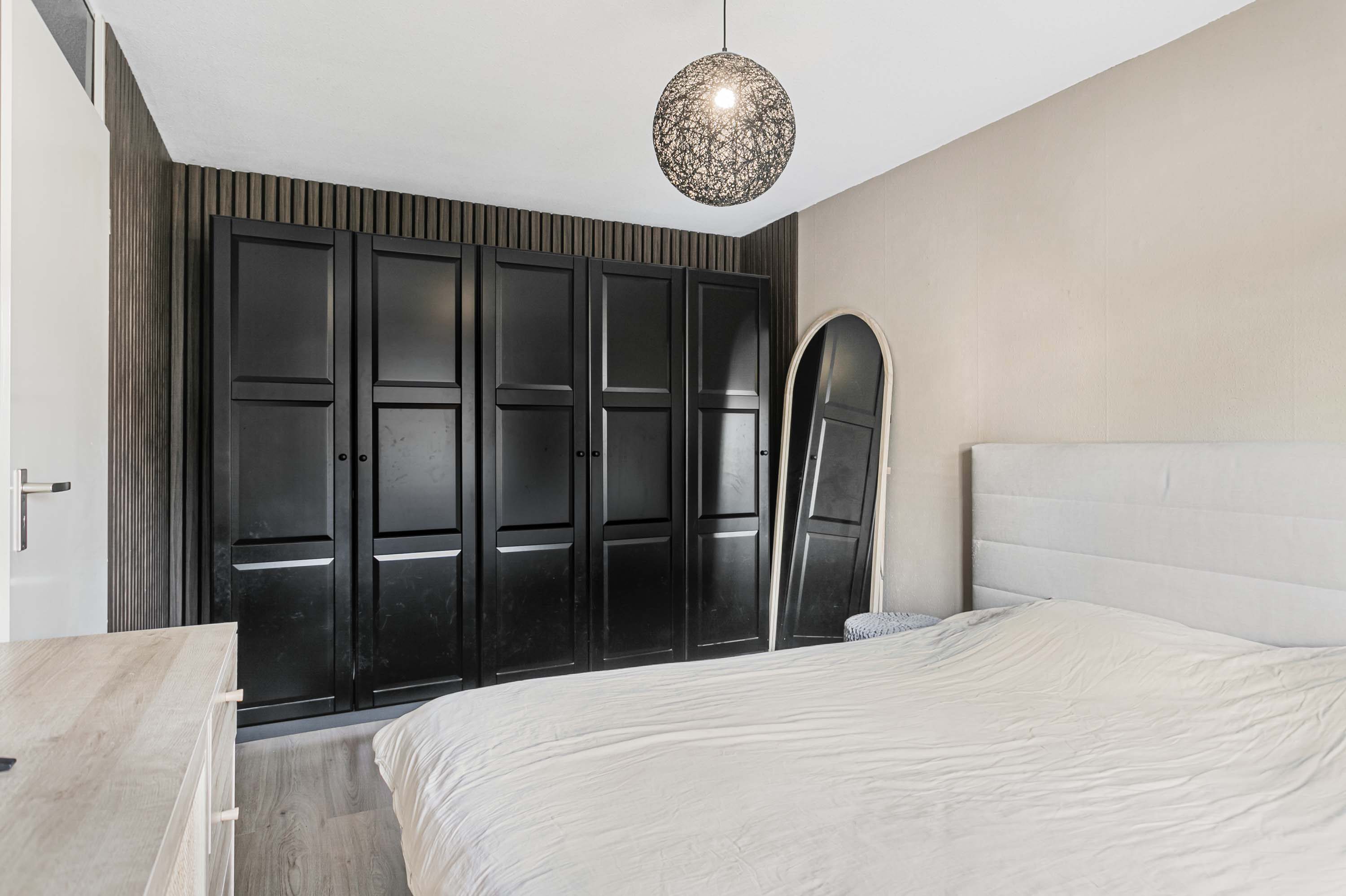 De eerste verdieping biedt twee ruime slaapkamers van circa 15 m² en 13 m². De kamer aan de voorzijde beschikt over opbergruimte achter de knieschotten. De vernieuwde badkamer uit 2024 van circa 5 m² groot is uitgerust met een inloopdouche, wastafelmeubel en toilet.