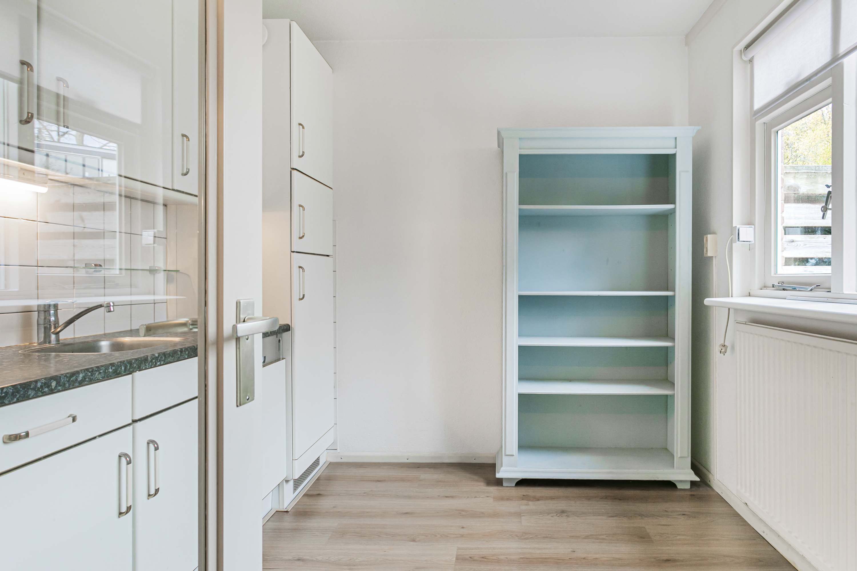 De keuken bevindt zich eveneens aan de achterzijde en is voorzien van diverse inbouwapparatuur, waaronder een gasfornuis, oven, koel-vriescombinatie en vaatwasser. Vanuit hier kijk je fijn uit op de tuin.