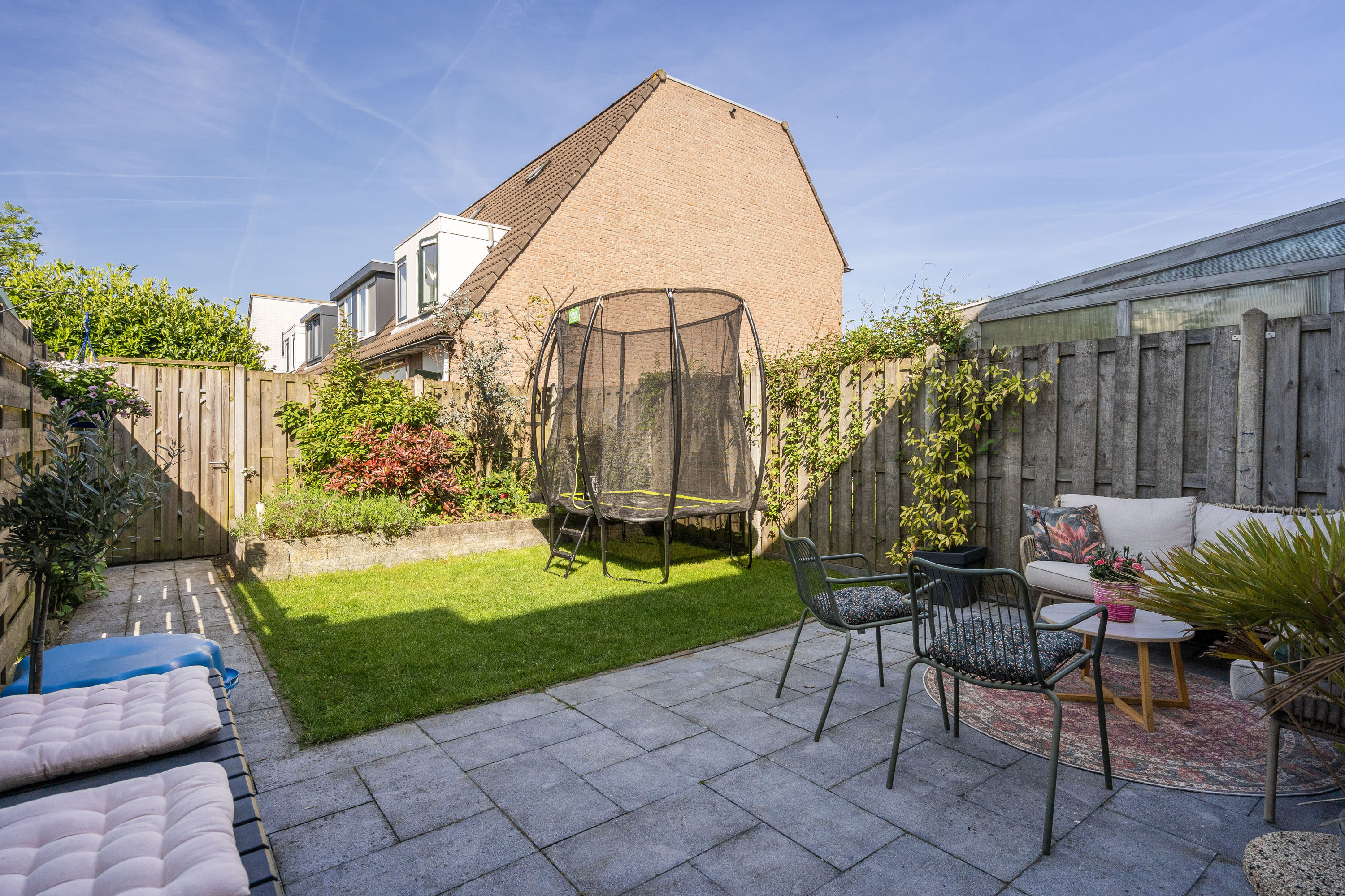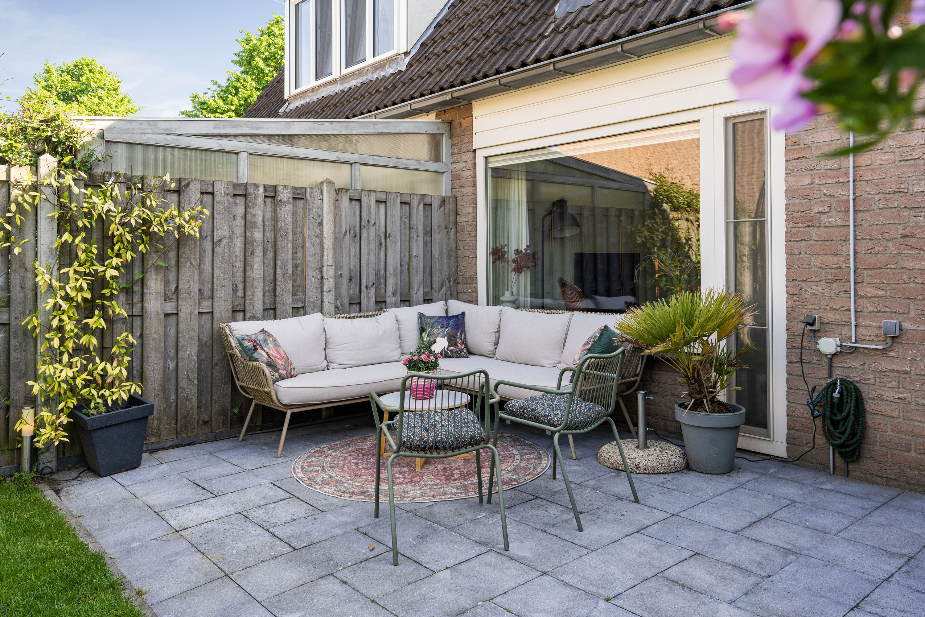 Zowel de voortuin als achtertuin zijn fraai aangelegd met groene beplanting en een terras. Ook fijn is de privacy die je ervaart in de achtertuin, hier kan je echt genieten van het buitenleven! Daarnaast is de achtertuin onderhoudsvriendelijk aangelegd, gelegen op het westen en voorzien van een achterom. De berging aan de voorzijde van de woning is ideaal voor extra opslag en het stallen van de fiets.
