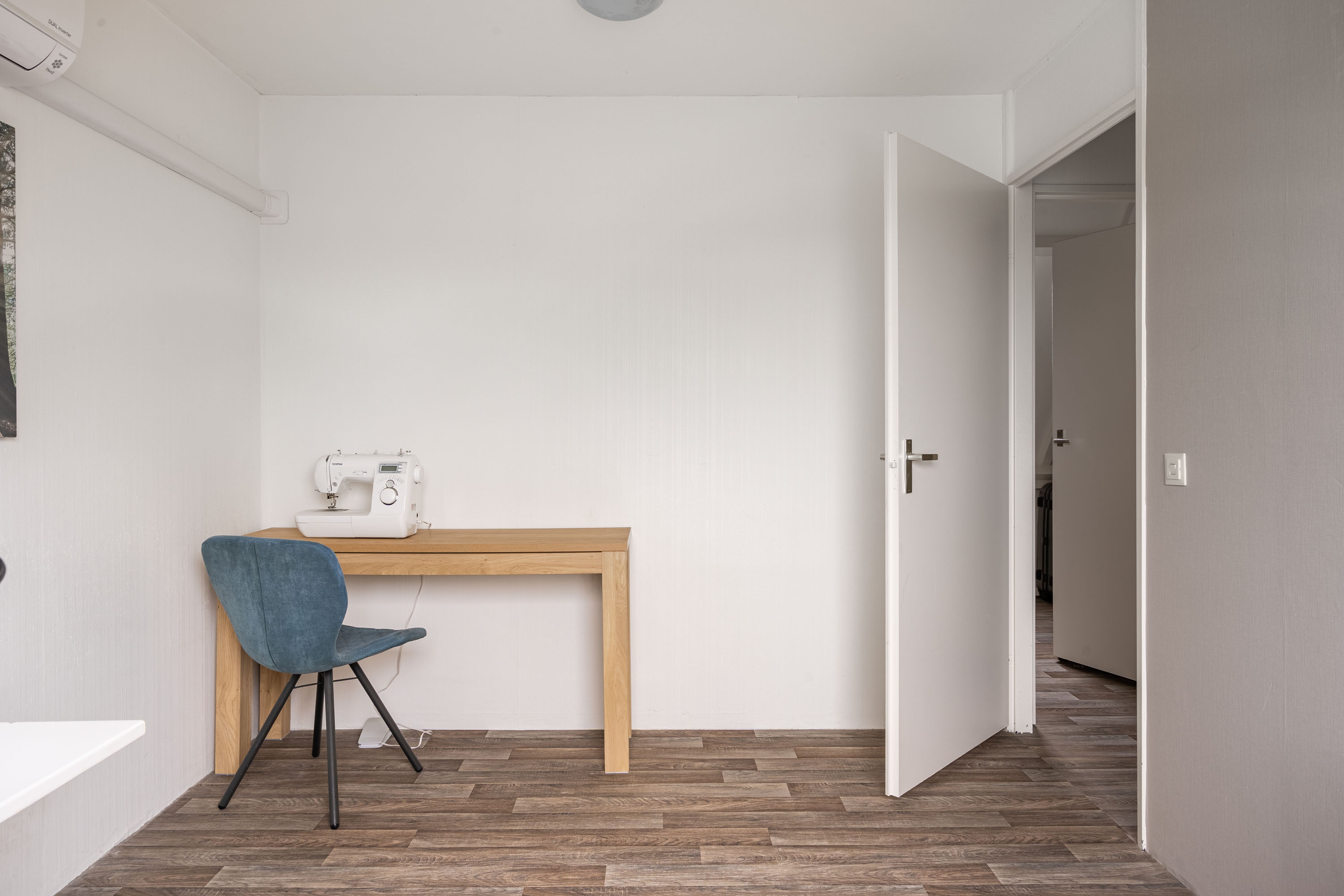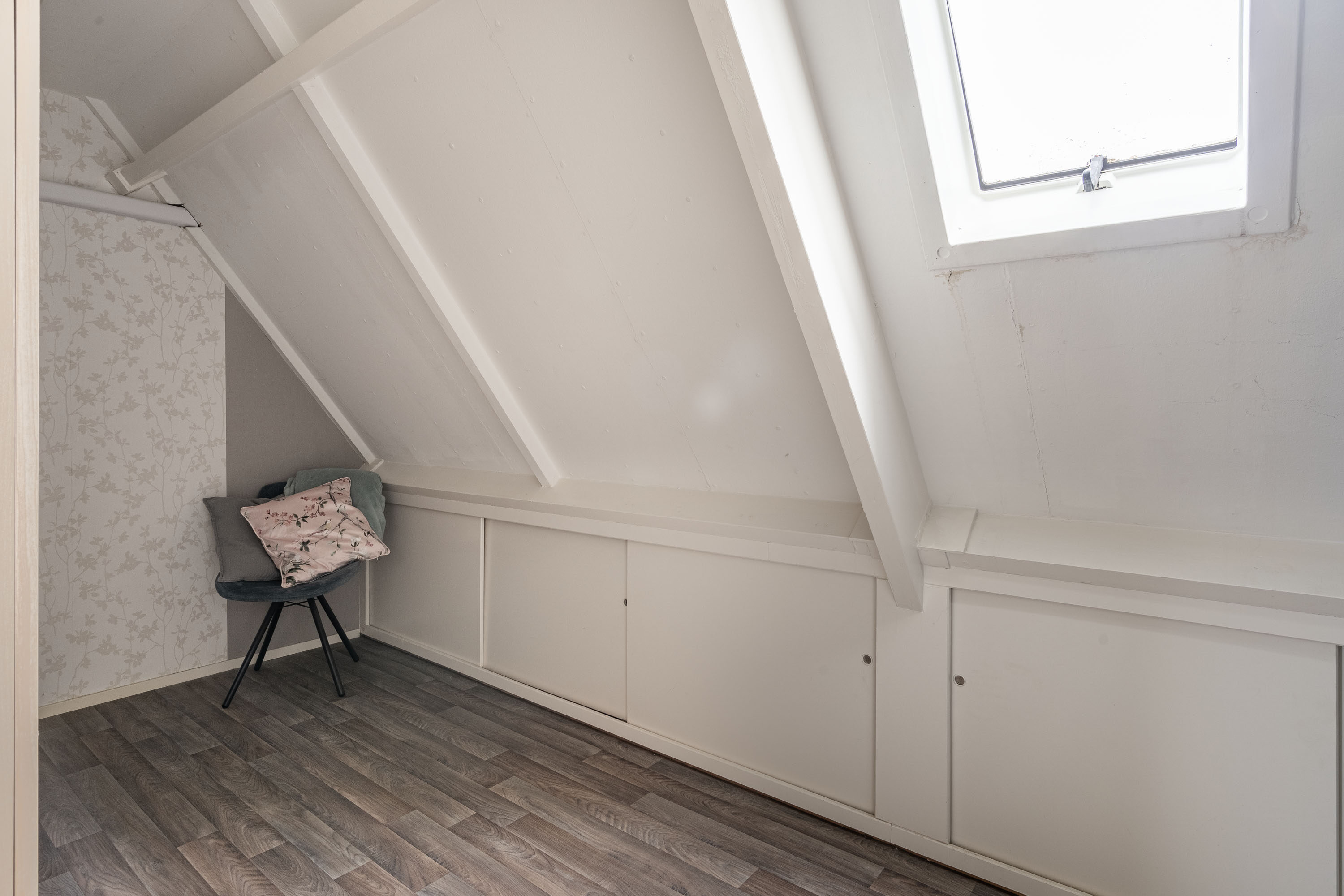 Via de vaste trap bereik je de tweede verdieping met toegang naar twee slaapkamers en een aparte was-/bergruimte. Beiden slaap-/werkkamers zijn voorzien van een dakraam en geven de mogelijkheid om hier een werk-/ logeer of hobbykamer te realiseren. In de was-/ bergruimte tref je de witgoedaansluiting, C.V. opstelling en extra bergruimte. Ook de thuisbatterij tref je in het washok, ideaal dat hiermee de opgewekte stroom vanuit de zonnepanelen wordt opgeslagen.