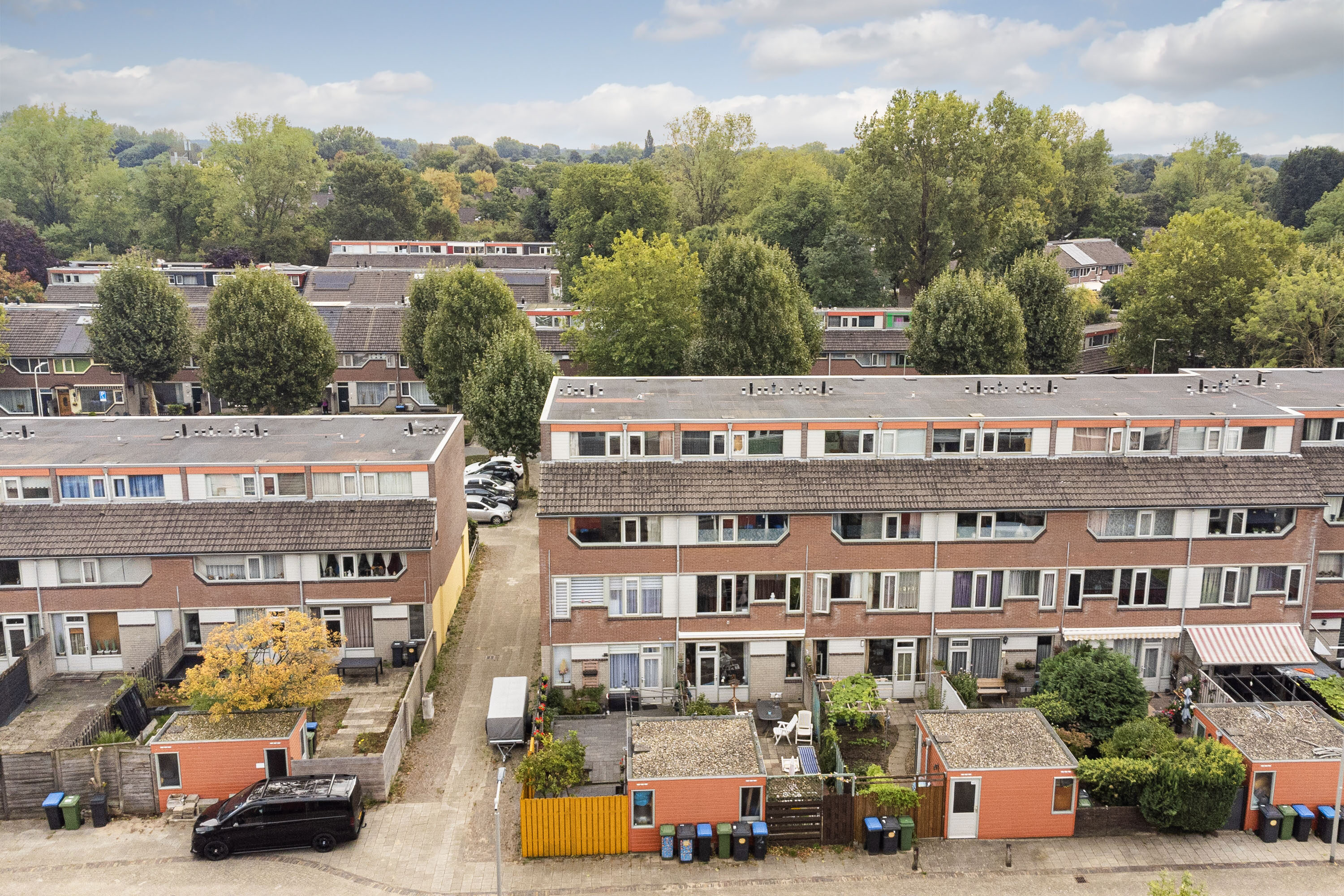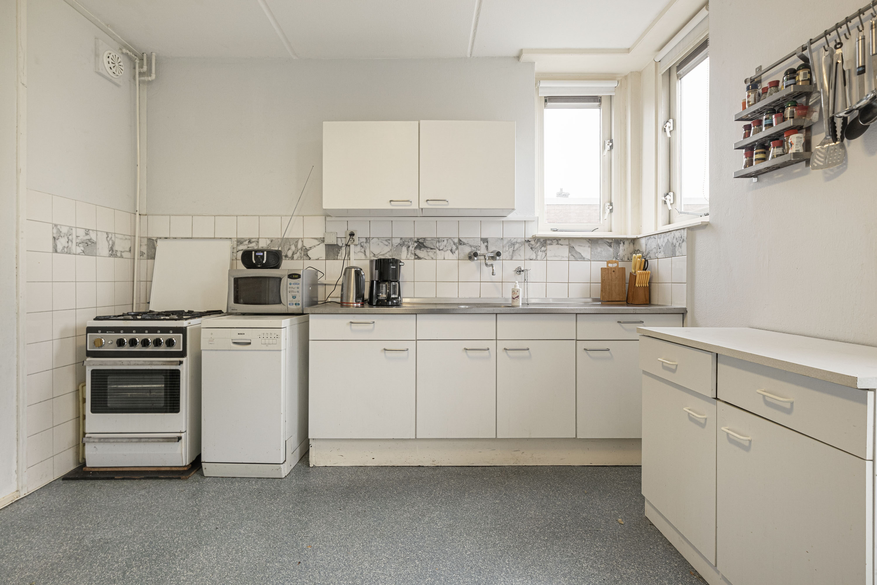 Bij binnenkomst word je verwelkomd in een ruime hal, die toegang biedt tot de woonkamer, keuken, toiletruimte en de trap naar de verdieping. Het balkon van ongeveer 6 m² nodigt uit om even buiten te ontspannen en te genieten van het uitzicht. Op de verdieping beschik je over vier kamers en een badkamer. Daarnaast beschikt de woning over een eigen berging, ideaal voor opslag of het stallen van de fiets. Deze woning biedt de kans om geheel naar eigen wens te moderniseren. De speelse indeling doet denken aan een complete gezinswoning, maar met het gemak van onderhoud binnen een Vereniging van Eigenaren.