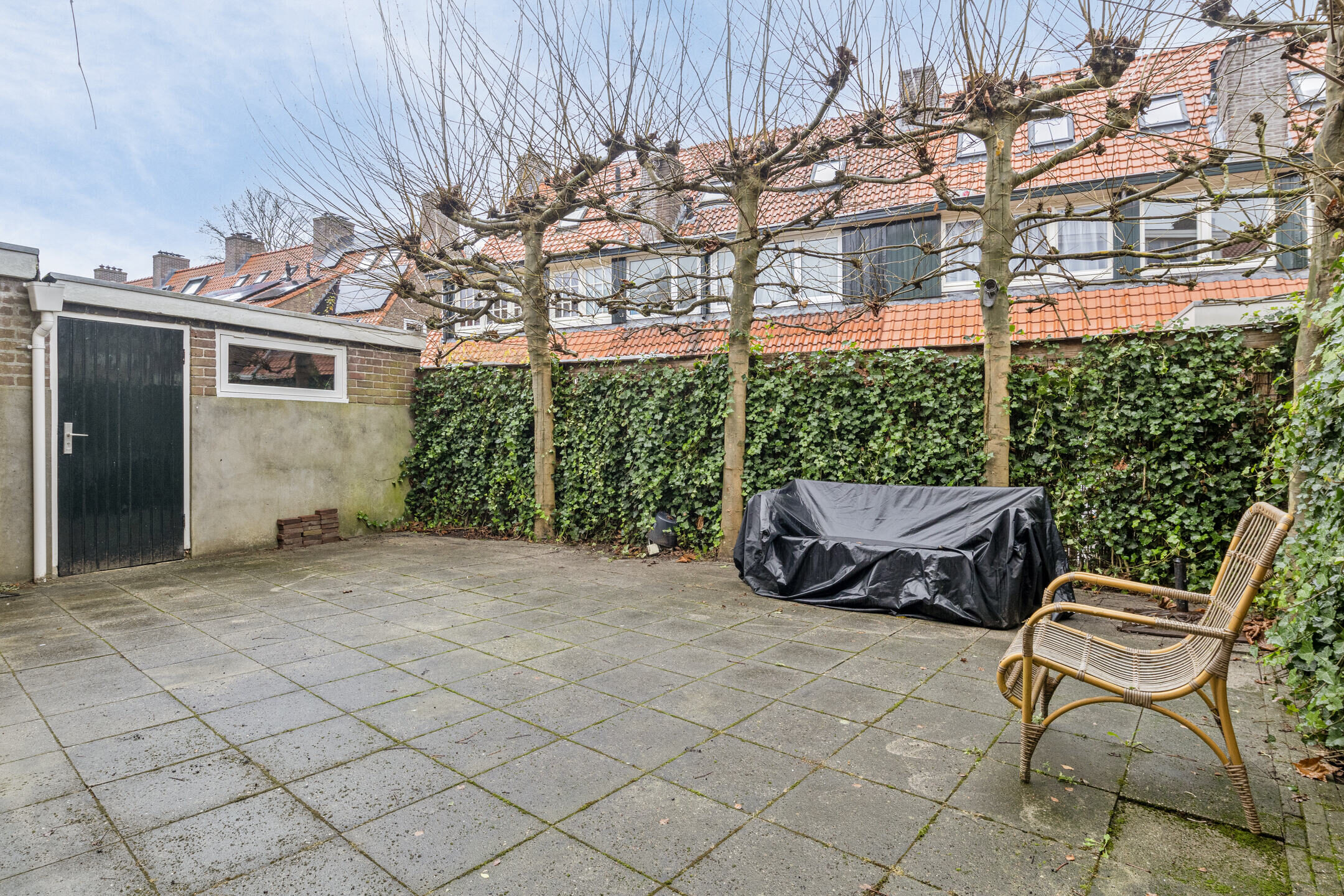 De tuin is gelegen op het noordwesten, wat betekent dat je kunt genieten van de middag- en avondzon, ideaal voor ontspannen buitenactiviteiten na een lange dag. Wanneer de hoge bomen in bloei staan, bieden ze volledige privacy, waardoor je in alle rust en beslotenheid van je buitenruimte kunt genieten. Deze natuurlijke afscherming maakt de tuin tot een perfecte plek om te ontspannen, te tuinieren of gezellig buiten te eten, zonder gestoord te worden door nieuwsgierige blikken.