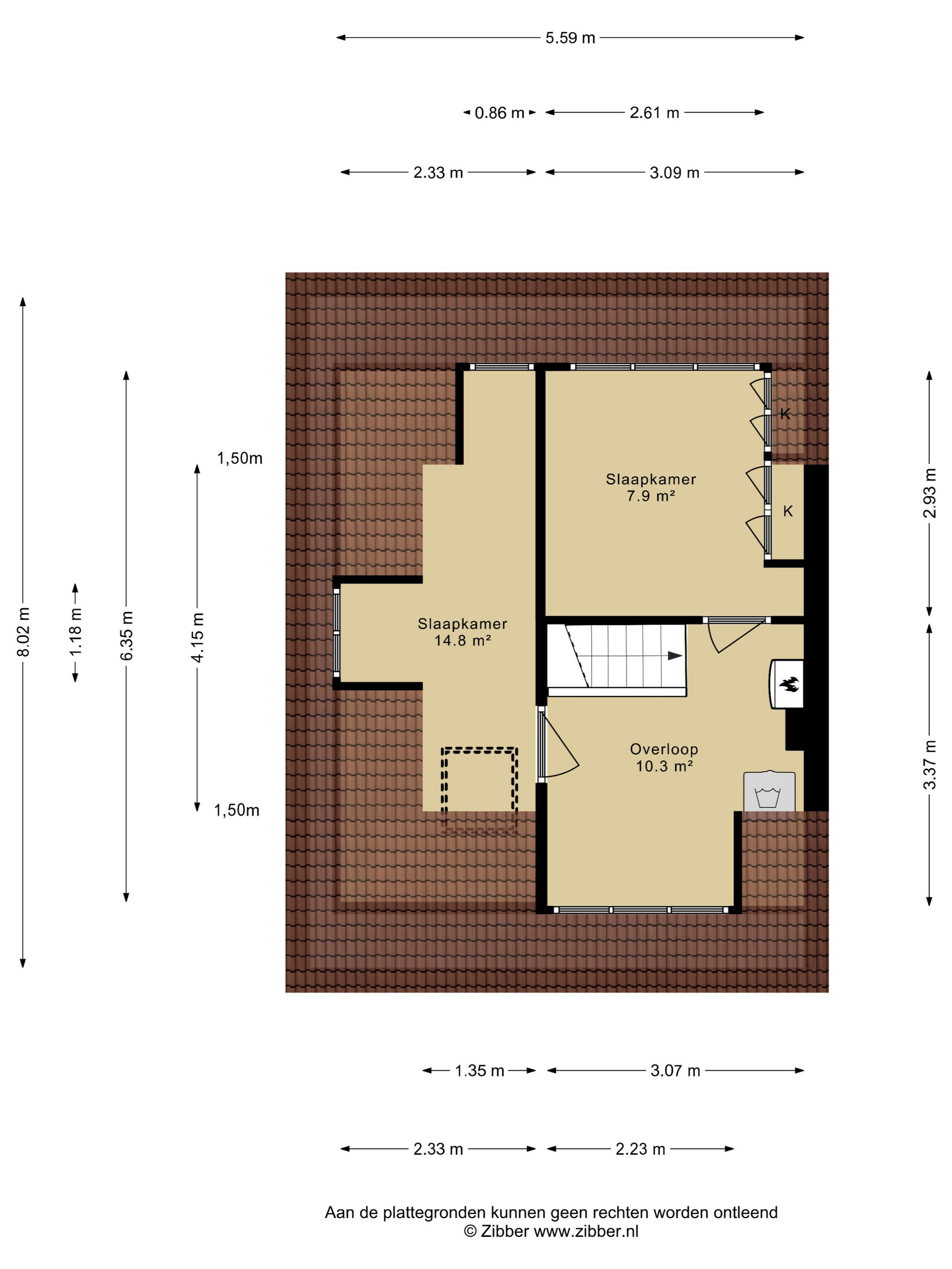 Op de tweede verdieping vind je een overvloed aan ruimte, waar nog eens twee (slaap)kamers zijn gesitueerd. Deze verdieping wordt gekenmerkt door een uitstekende lichtinval, dankzij de dakkapellen die zowel aan de voorzijde, achterzijde als zijkant van het huis zijn geplaatst. Deze toevoeging zorgt niet alleen voor extra ruimte, maar laat ook het natuurlijke licht rijkelijk binnenstromen.. Deze veelzijdige verdieping biedt tal van mogelijkheden om aan je woonwensen te voldoen.