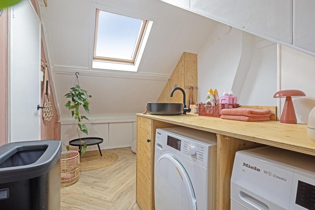 Via een vaste trap bereik je de volwaardig tweede verdieping. In 2022 is hier een dakkapel geplaatst waardoor je nog meer woongenot ervaart. Hier bevindt zich ook de vierde (slaap)kamer met een afmeting van 11,7m². Deze (slaap)kamer is eveneens voorzien van een visgraatvloer en heeft mede dankzij 2 dakramen voldoende lichtinval. Op de voorzolder bevindt zich de uit zicht weggewerkte C.V.-ketel uit 2022, de wasmachine-aansluiting en de omvormer voor de zonnepanelen. In een mooie ombouw, waarop ook een wastafel is gerealiseerd, is plaats voor een wasmachine en -droger.