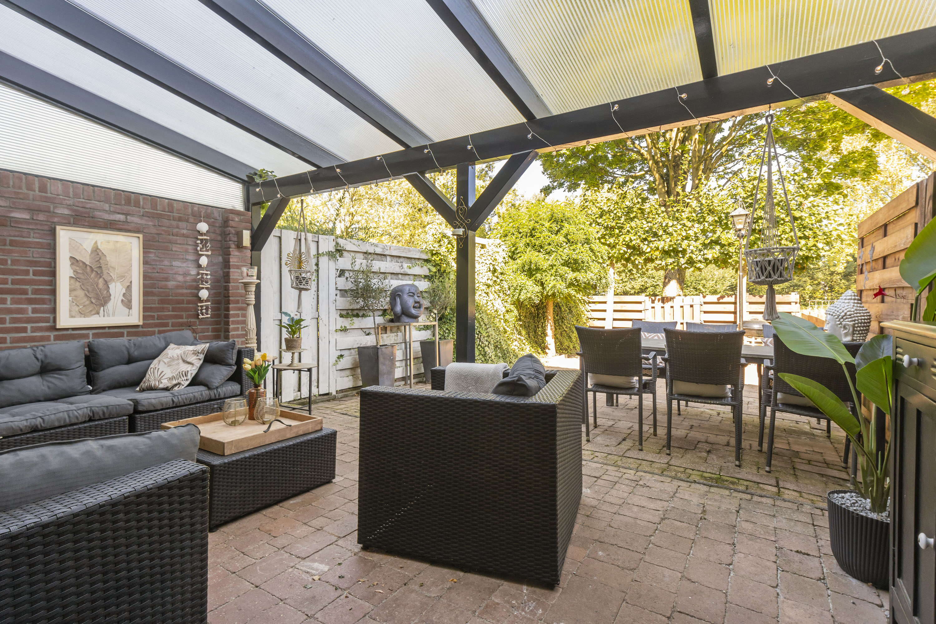 - Een heerlijke voortuin op het zonnige zuiden en een diepe achtertuin met overkapping