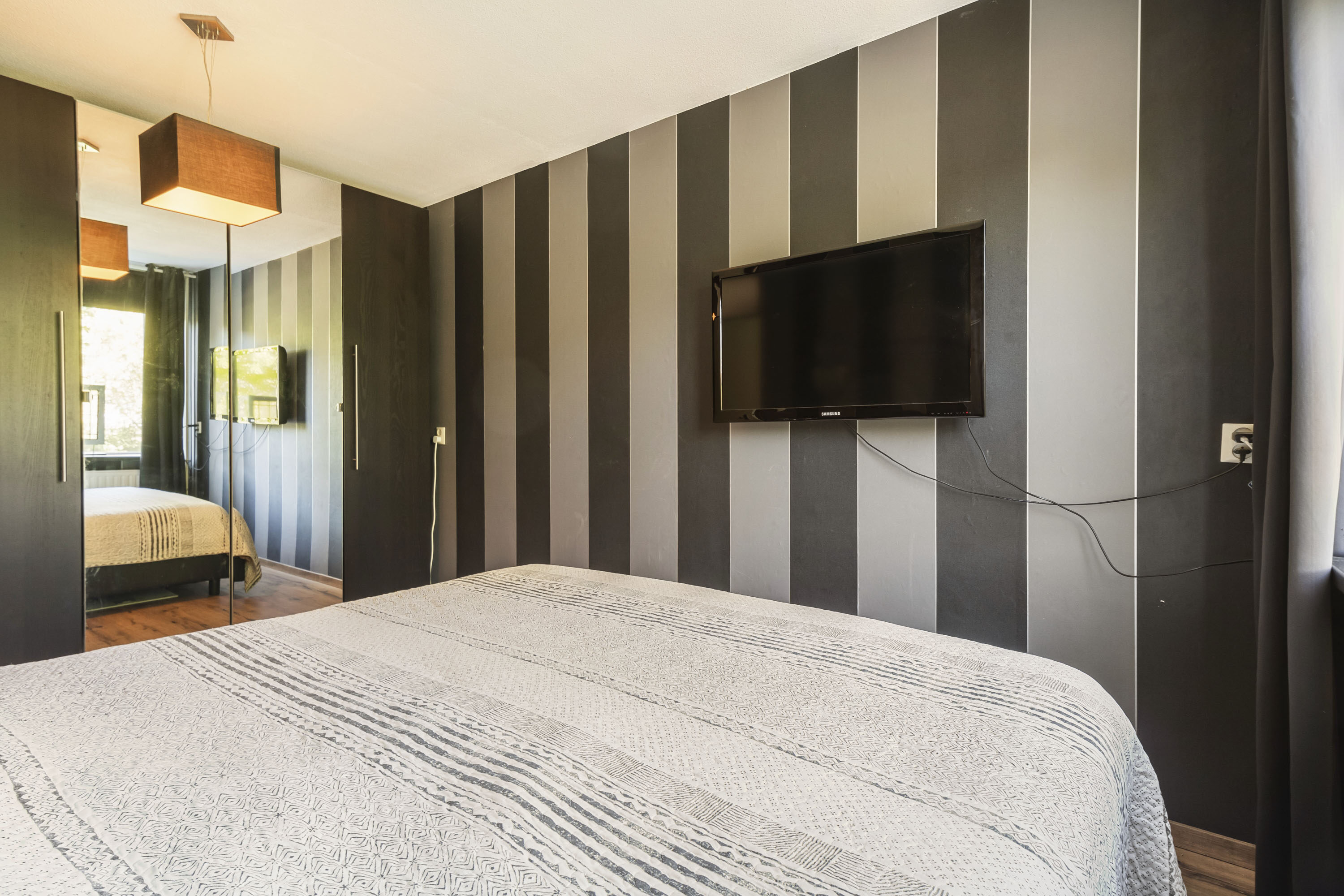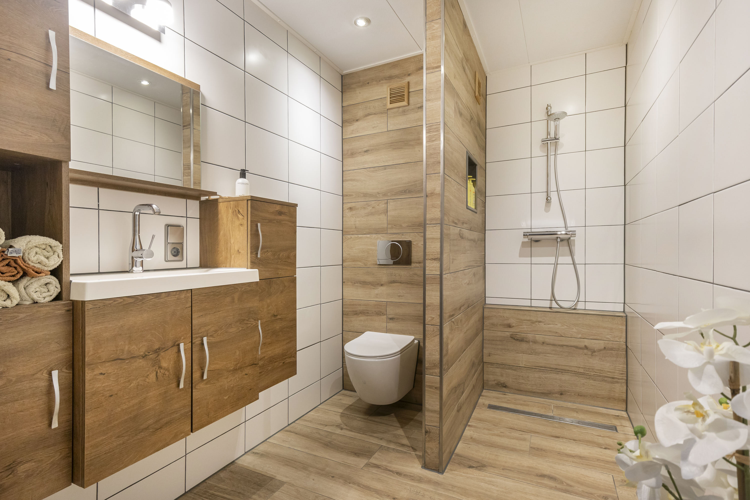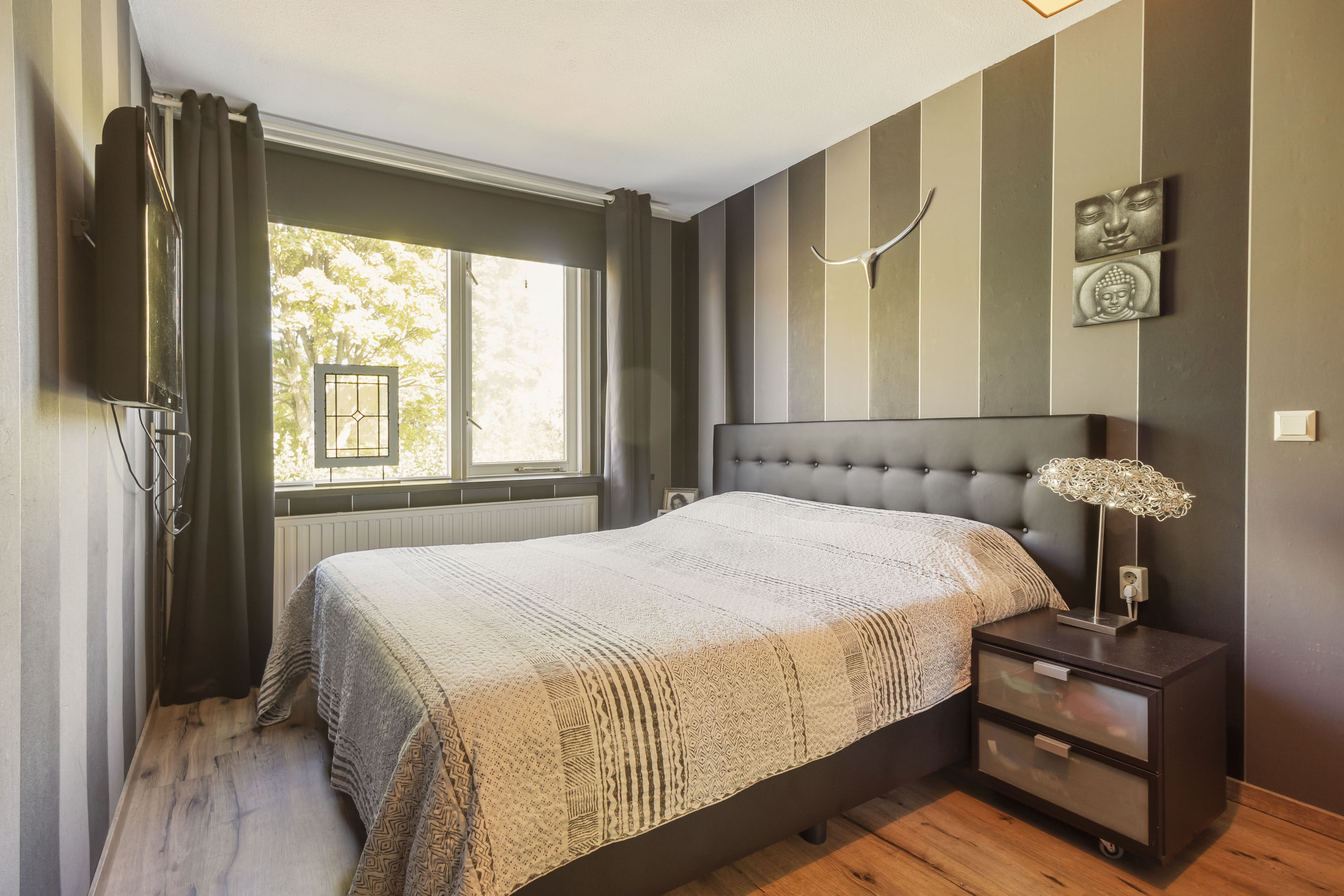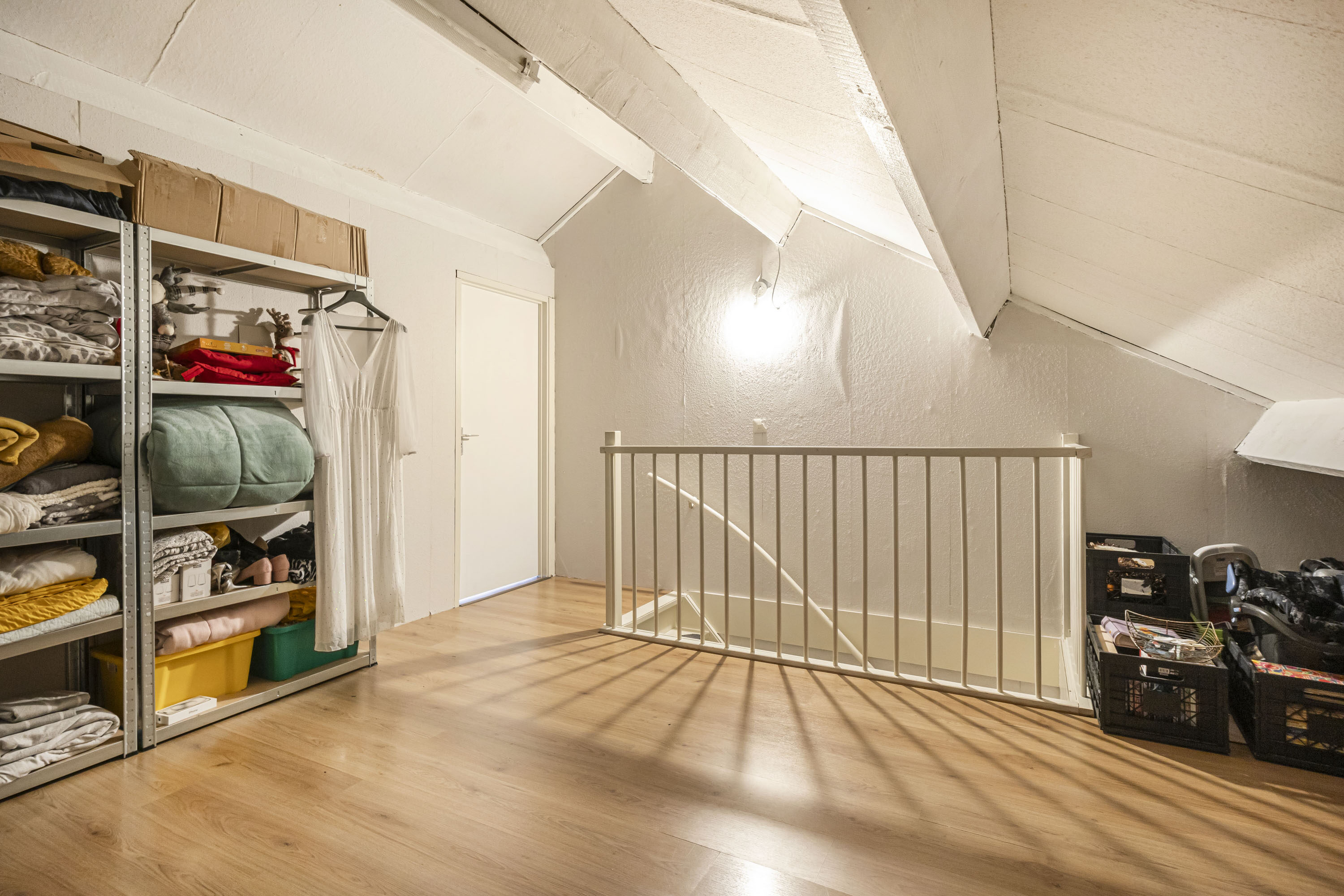 De overloop geeft toegang tot drie slaapkamers en de badkamer. De slaapkamers hebben goede afmetingen van circa 13m², 12m² en 7m² en zijn eveneens voorzien van een laminaatvloer. De grootste slaapkamer is gelegen aan de voorzijde van de woning en over de gehele breedte van de woning. De moderne badkamer (2022) is voorzien van een inloopdouche, wastafel en toilet.