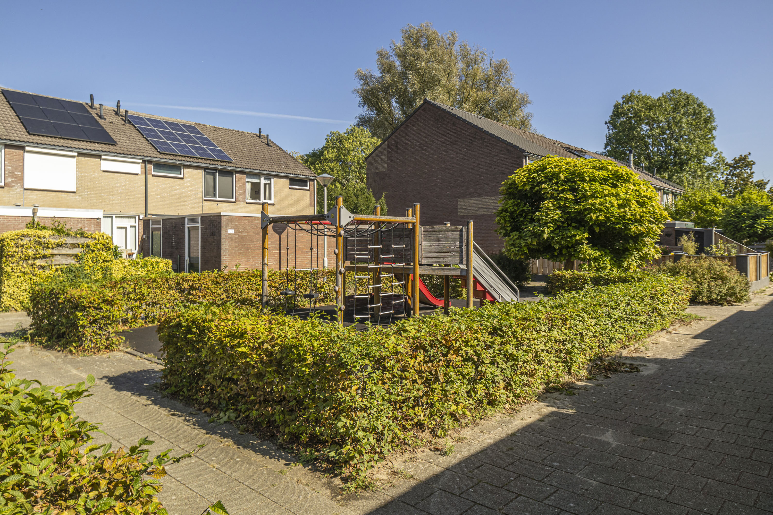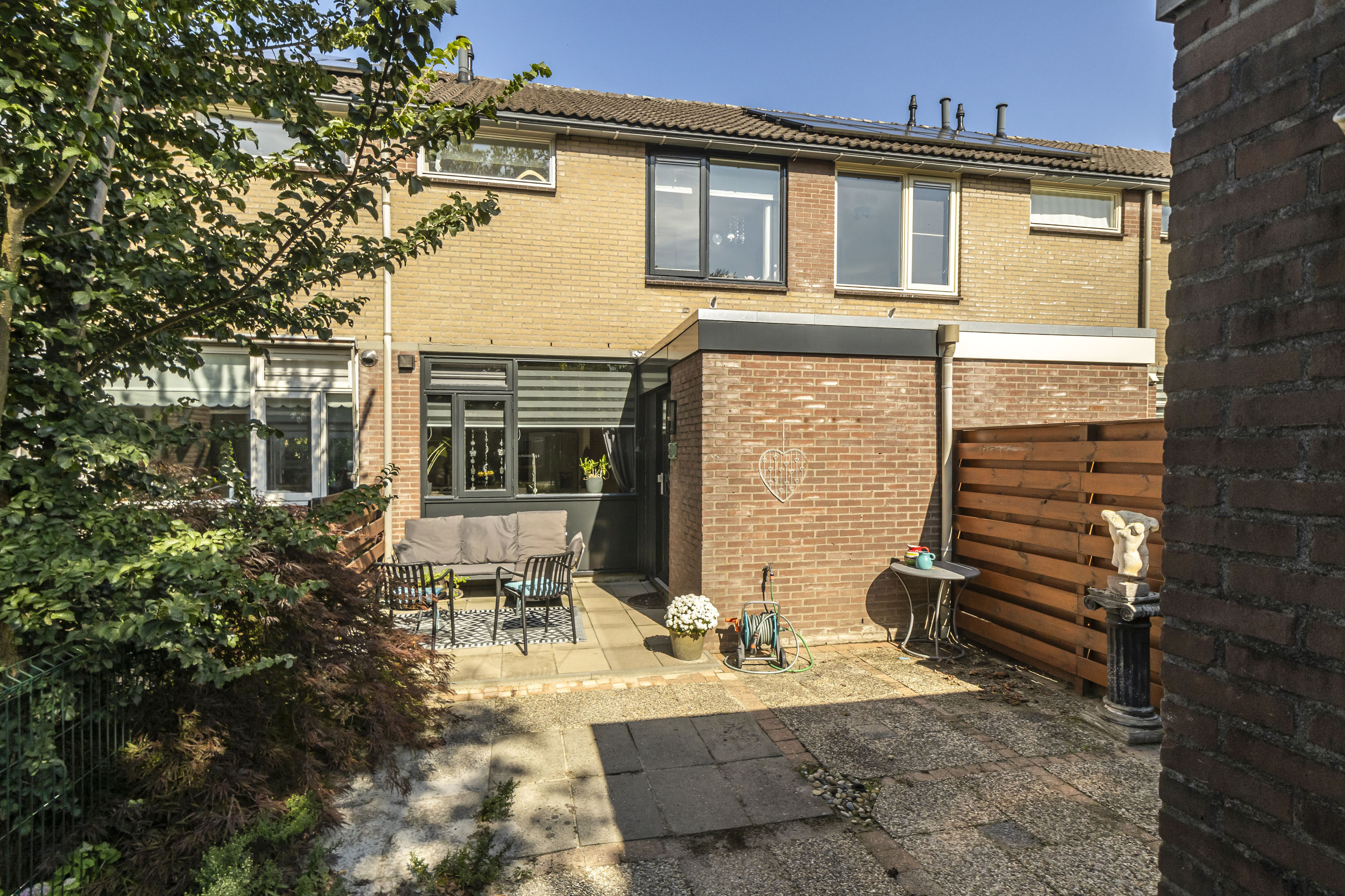 De ruime en diepe tuin is georiënteerd op het noorden en biedt zowel zonnige plekjes als koele, schaduwrijke hoekjes. In de achtertuin kun je onder de overkapping heerlijk in de schaduw ontspannen, terwijl je in de voortuin volop van de zon kunt genieten. Ook in de achtertuin vind je ideale plekjes om in de zon ter genieten. Er is volop ruimte om diverse zit- en speelplekken in te richten en te genieten van een uitzicht op groen. Bovendien tref je in de voortuin een praktische (fietsen)berging en eigen parkeergelegenheid.
