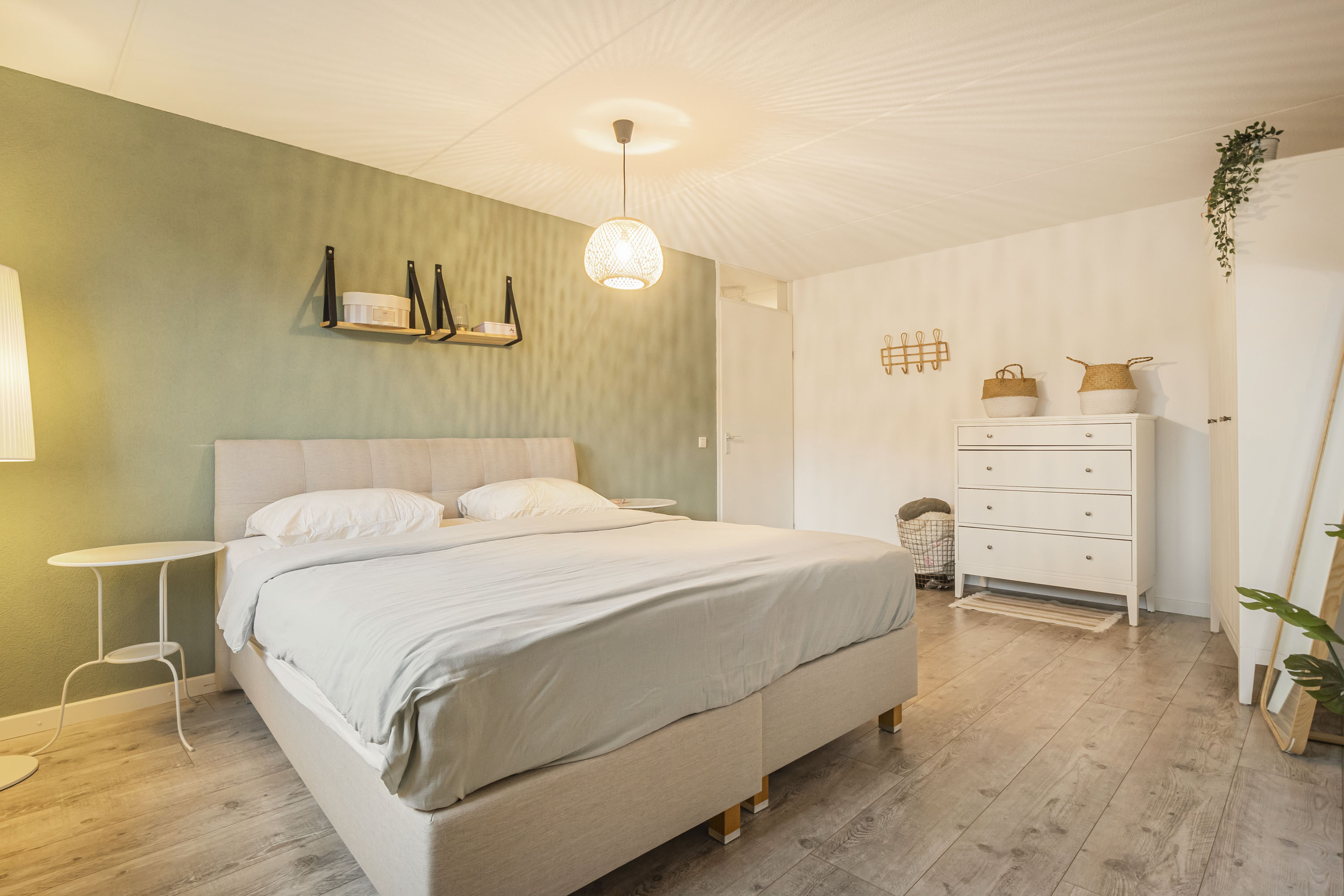 Op de eerste verdieping bevinden zich drie ruime slaapkamers. De grootste slaapkamer ligt aan de achterzijde (ca. 21 m²) en biedt volop ruimte voor een groot bed en een kastopstelling. Aan de achterzijde bevindt zich tevens een tweede slaapkamer (ca. 9,5 m²) en aan de voorzijde een derde slaapkamer (ca. 11 m²). De badkamer (2023) is modern afgewerkt en uitgerust met een inloopdouche, dubbele wastafel en een tweede toilet.