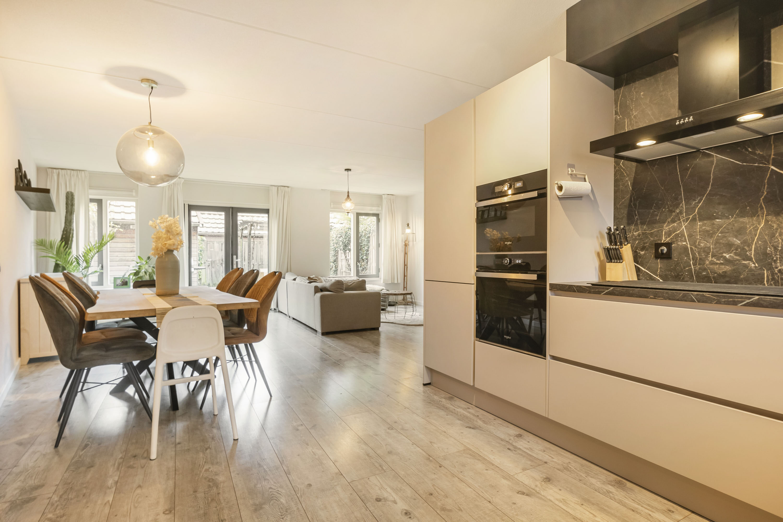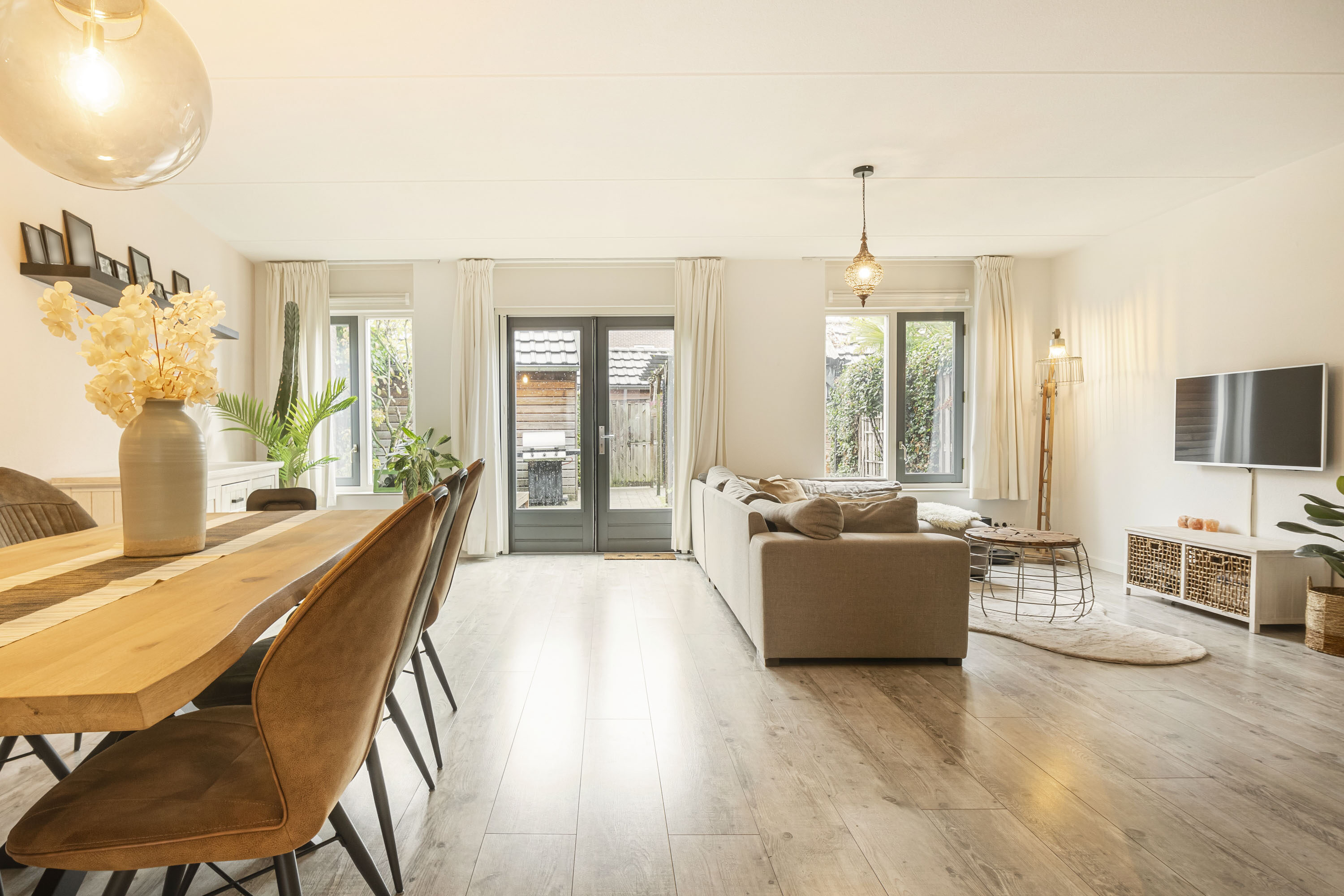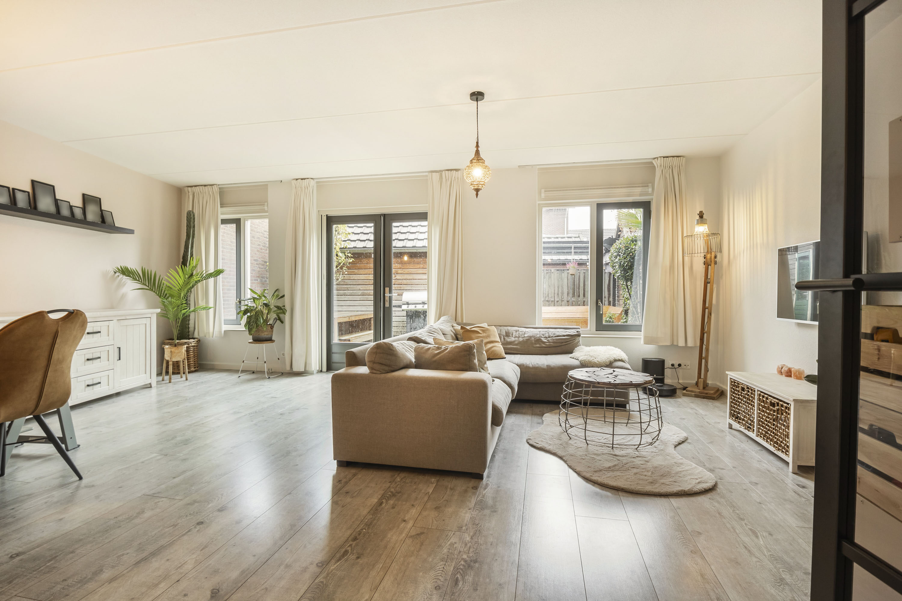 - Brede woonkamer met openslaande deuren naar de tuin