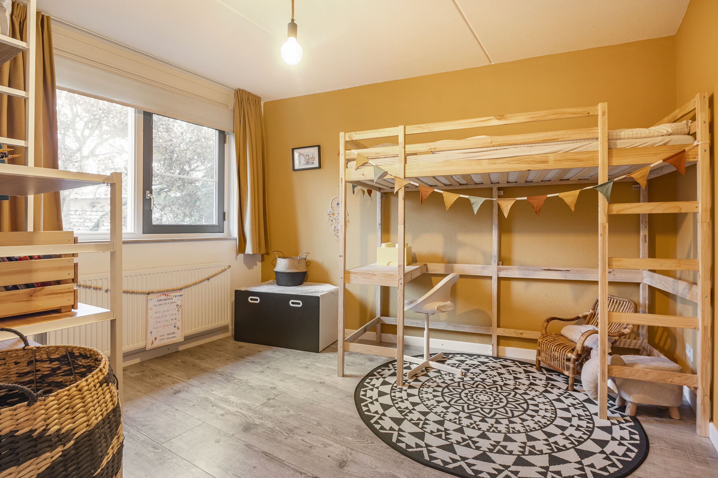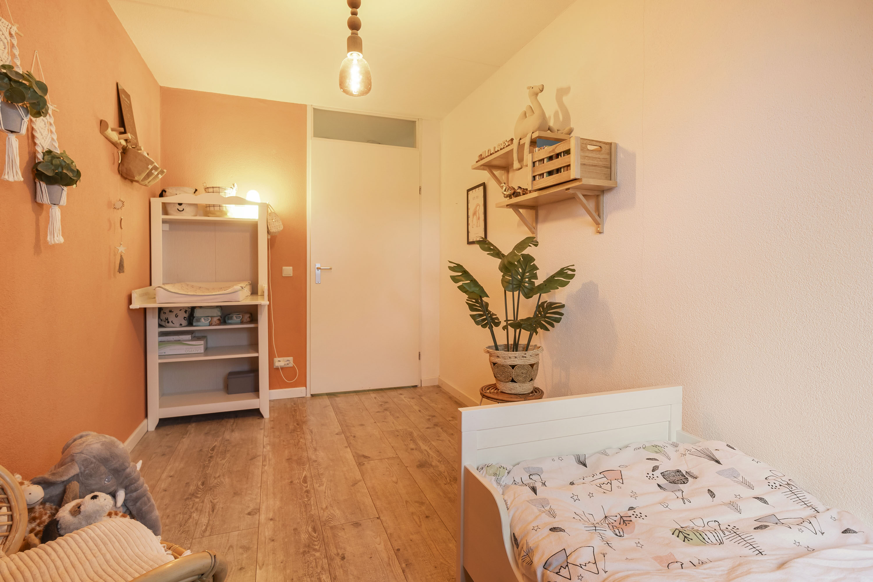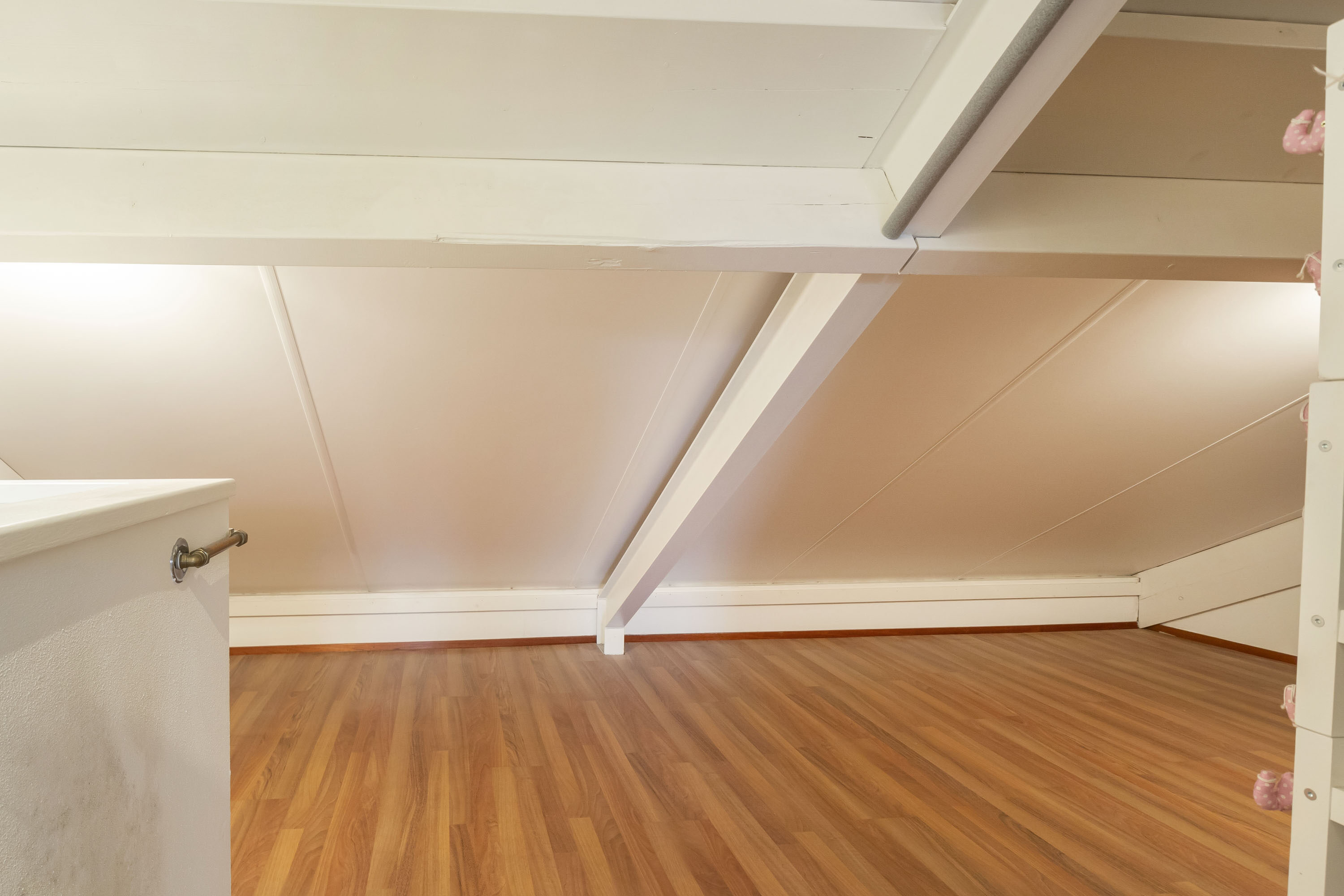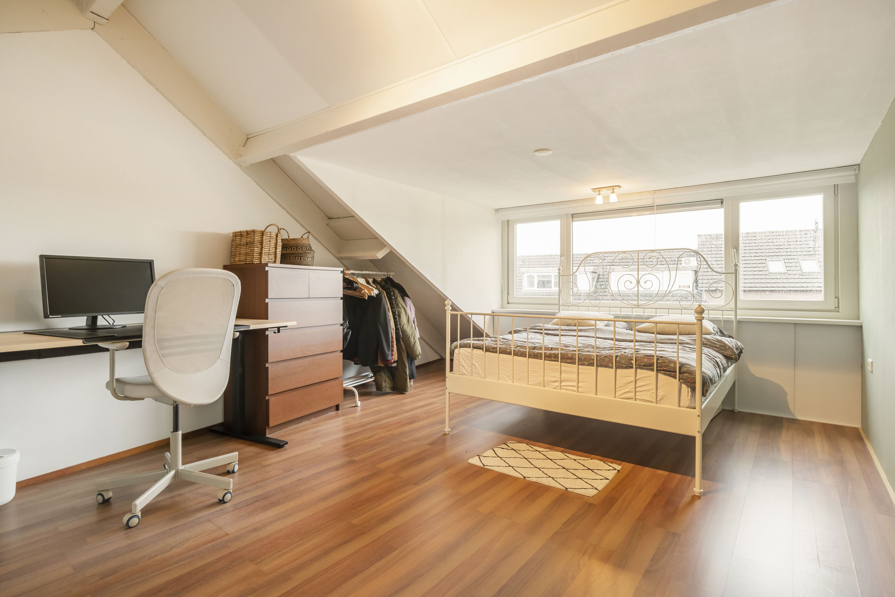 De tweede verdieping is praktisch ingedeeld en beschikt over een ruime overloop met een handige wasruimte. Op deze verdieping is een vierde slaapkamer gerealiseerd, voorzien van een dakkapel die zorgt voor extra licht en ruimte. Onder de schuine kanten is extra bergruimte aanwezig, ideaal voor het opbergen van seizoensspullen.