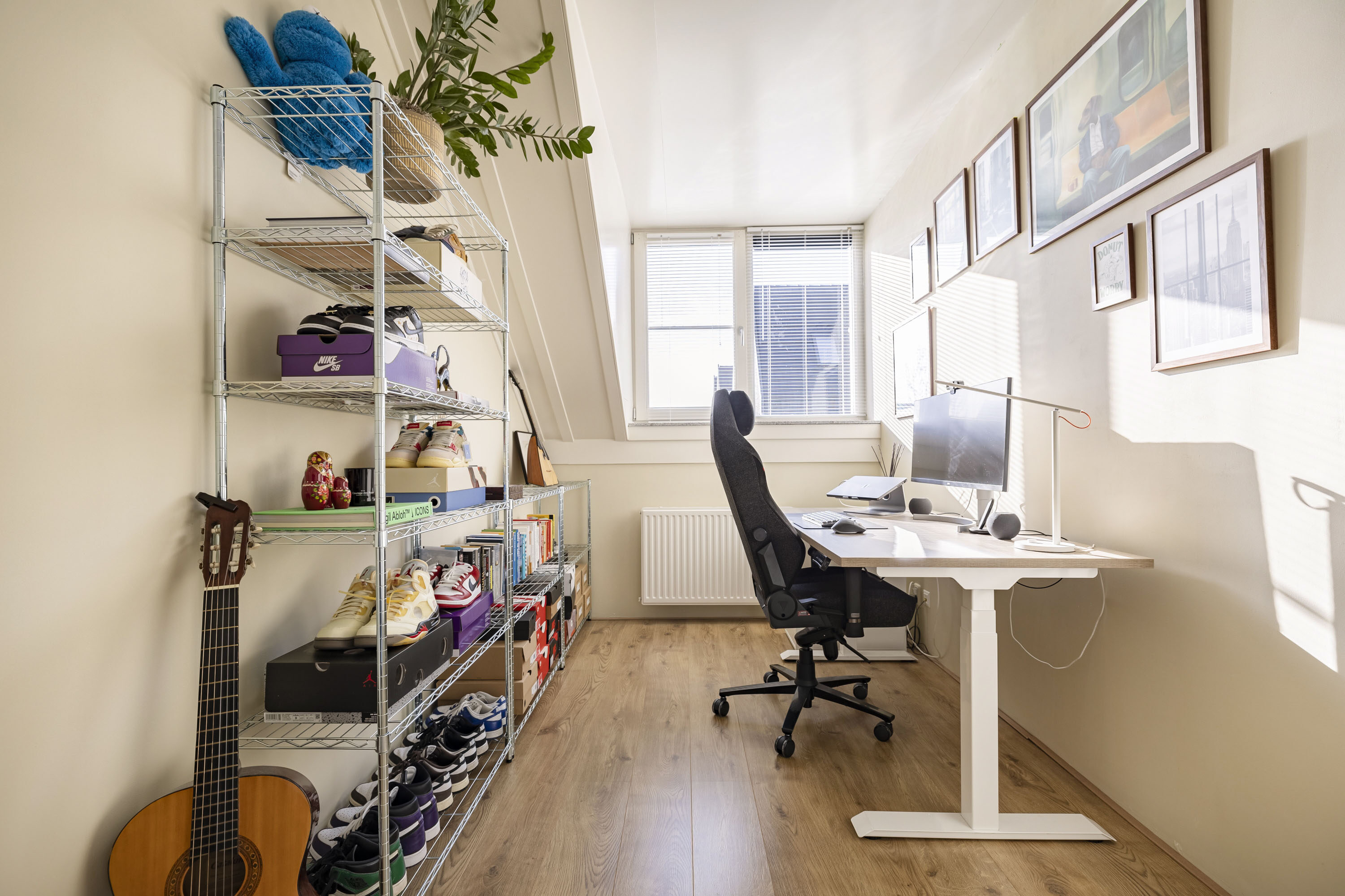 Via de vaste trap is de tweede verdieping te bereiken. Deze verdieping is open en vrij in te delen naar wens. Je kunt hier gemakkelijk een 4e slaapkamer realiseren of deze ruimte als werk-, kantoor- of sportplek gebruiken. Tevens is hier de witgoed-aansluiting aanwezig en beschik je over bergruimte achter de knieschotten.