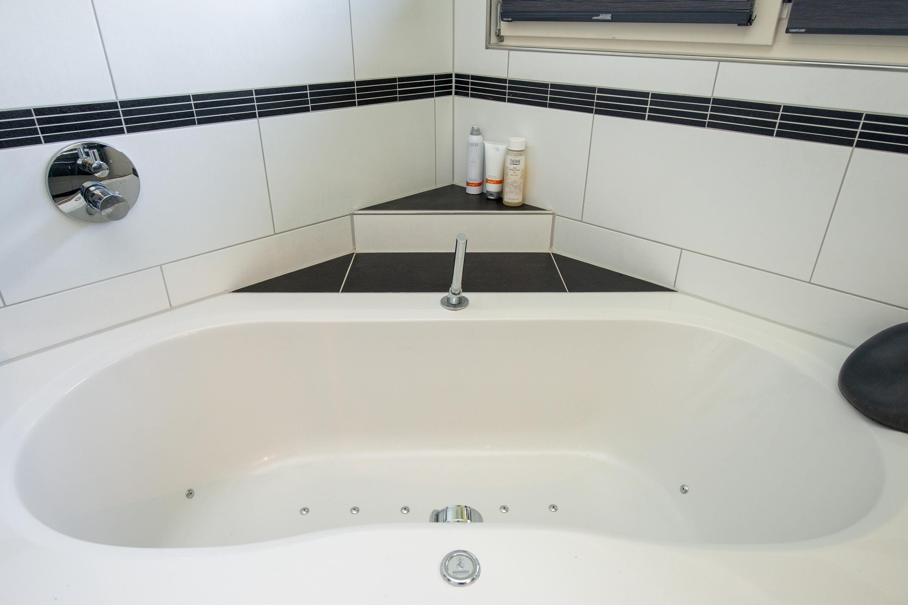 De ruime badkamer is een echte luxe ruimte die van alle gemakken is voorzien. Hier kun je heerlijk ontspannen in het ligbad met whirlpoolfunctie, ideaal voor een moment van rust na een lange dag. Het wastafelmeubel is uitgerust met een lade, de spiegelkast met verlichting en een praktische wastafelkast, waardoor je altijd voldoende opbergruimte hebt voor al je badkamerbenodigdheden. Daarnaast beschikt de badkamer over een aparte douche met regendouche en een toilet. De grote ramen zorgen voor een prettige hoeveelheid daglicht, bovendien bieden ze de mogelijkheid om de badkamer op een natuurlijke wijze te ventileren.