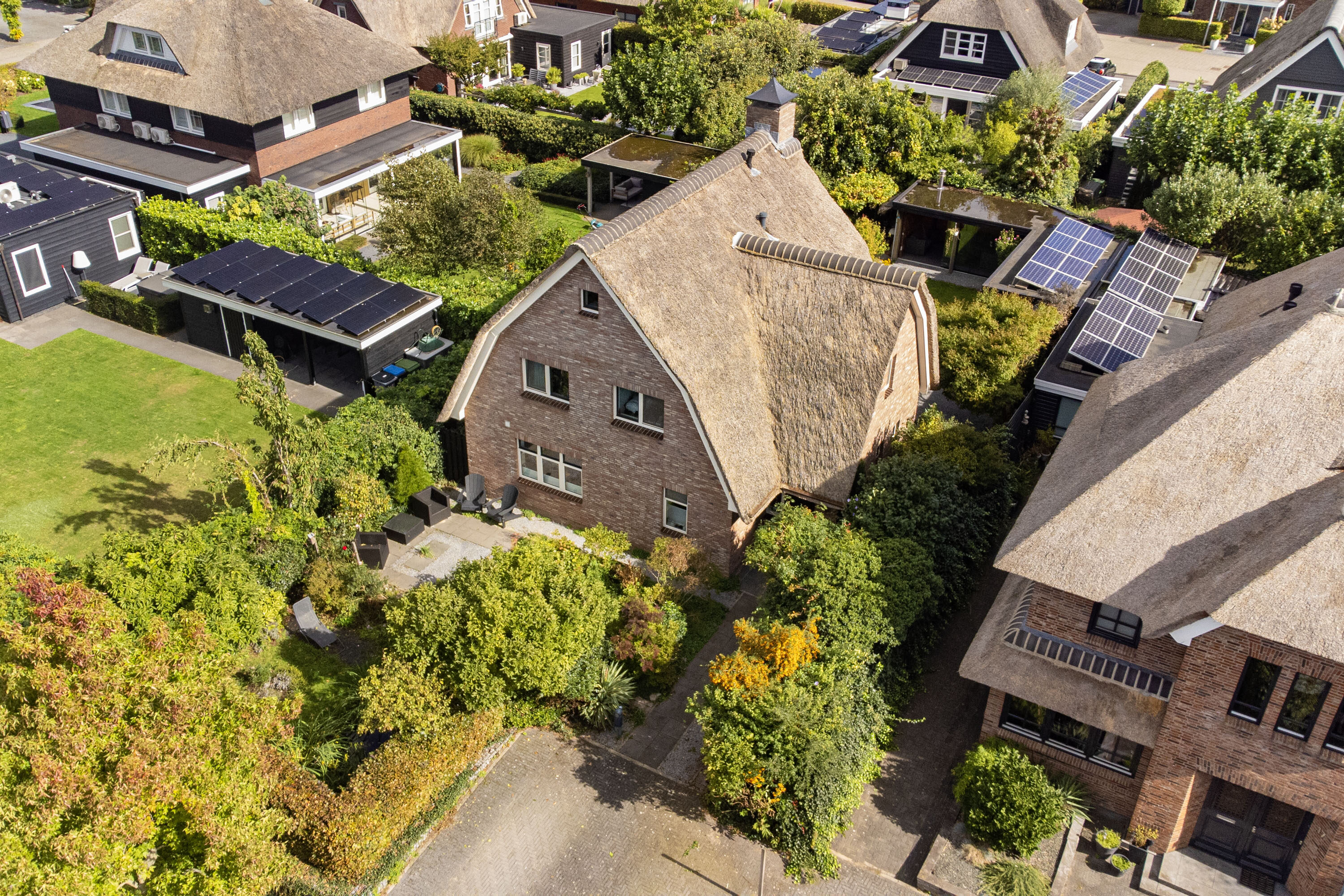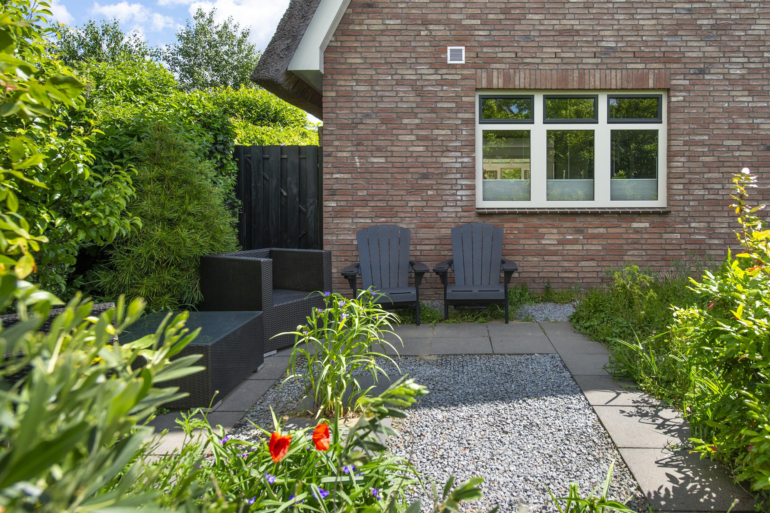 Rondom de woning ligt een prachtig aangelegde tuin die met zorg is ontworpen. De tuin biedt volop ruimte om te genieten van rust en natuur, dankzij diverse gezellige terrasjes waar je op elk moment van de dag heerlijk kunt vertoeven. Dankzij de ligging op het oosten en de diepte van de tuin, kun je bovendien van veel zon genieten. Verder is er een sfeervolle veranda met houtkachel aanwezig en een berging, ideaal voor het opbergen van tuinmeubilair of gereedschap. De naastgelegen ruime berging is ideaal voor het opbergen van tuinmeubilair, gereedschap en het stallen van fietsen. Op het dak van de schuur bevinden zich 8 zonnepanelen, wat bijdraagt aan de duurzaamheid van de woning.