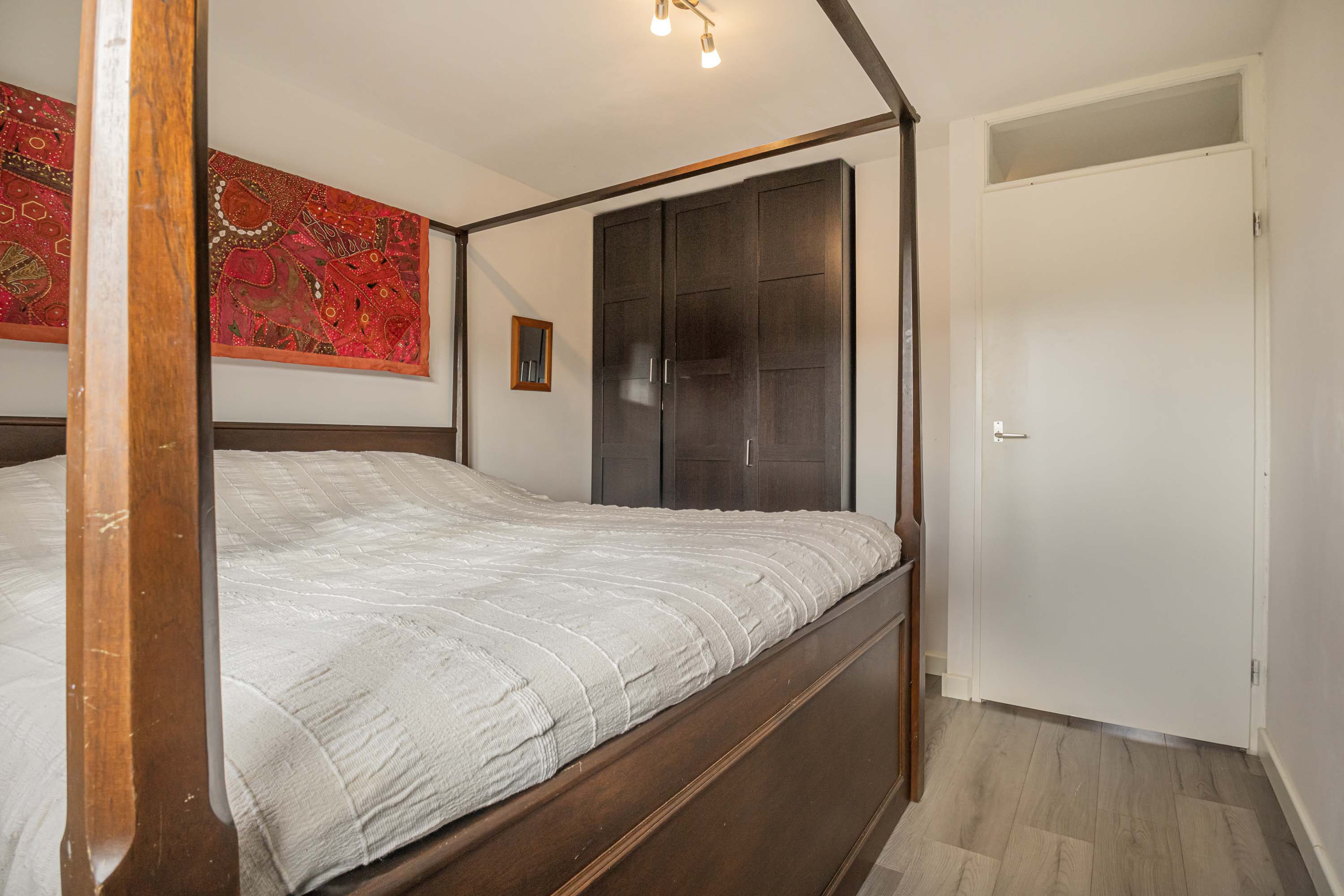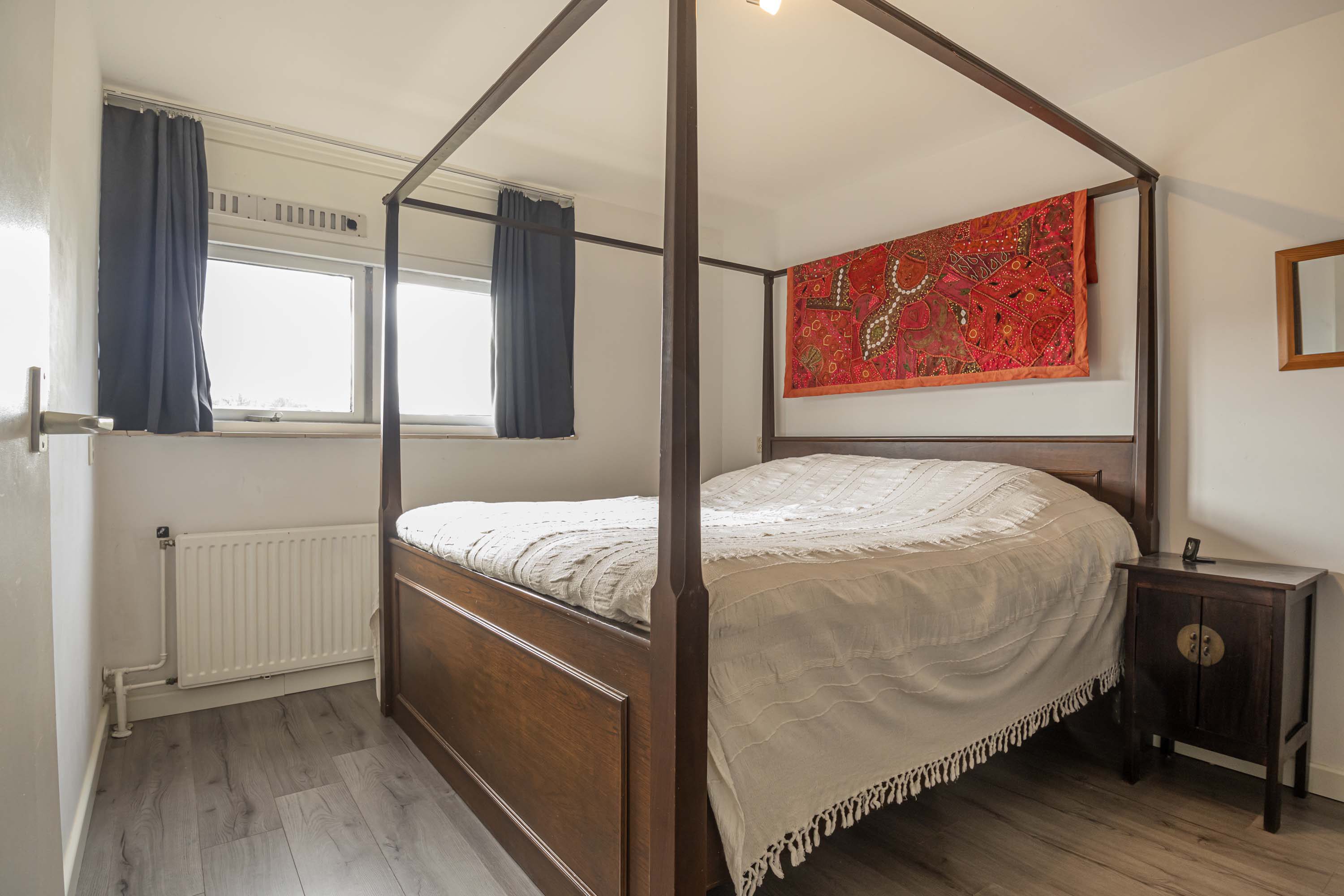 De overloop geeft toegang tot de slaapkamers en de badkamer. De slaapkamers zijn goed bemeten met een afmeting van 11,7m², 11,1m², 10m² en 7,6m² en zijn voorzien van een laminaatvloer en voldoende lichtinval. De badkamer (2019) is in een moderne kleurstelling en beschikt over een ligbad met douche, wastafel met wastafelmeubel en een toilet. Op de overloop bevindt zich tevens nog een vaste kast met wasmachine-aansluiting.