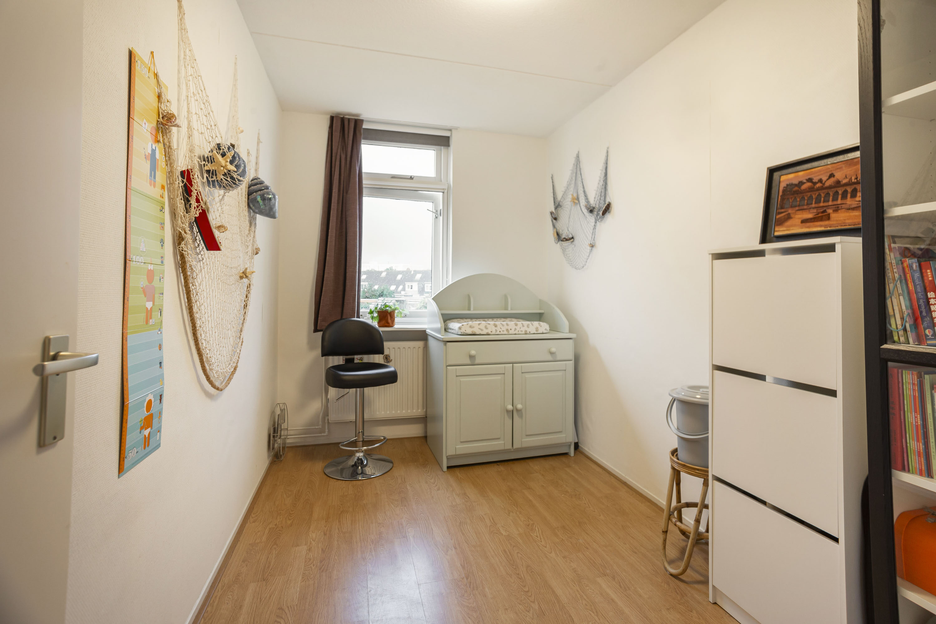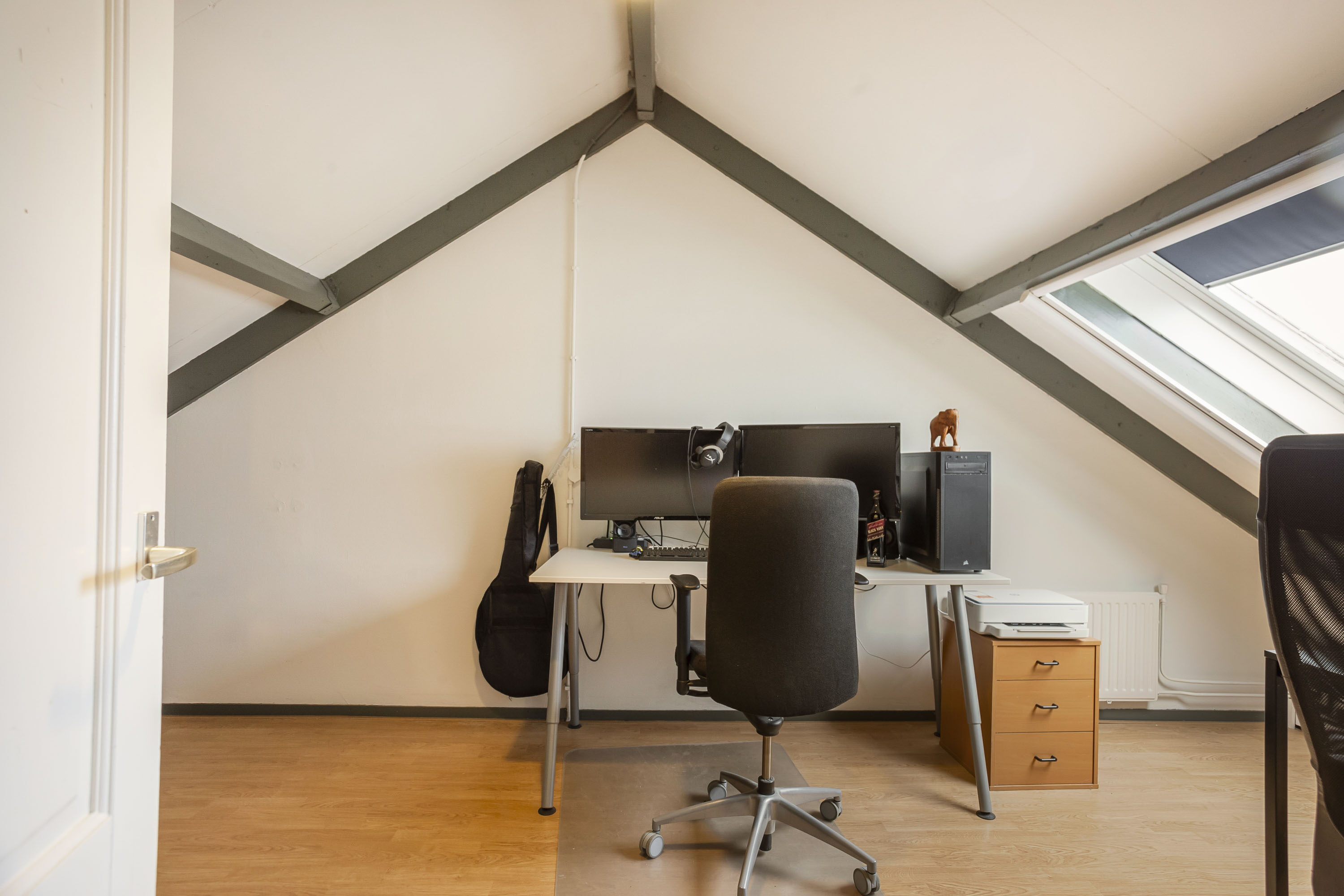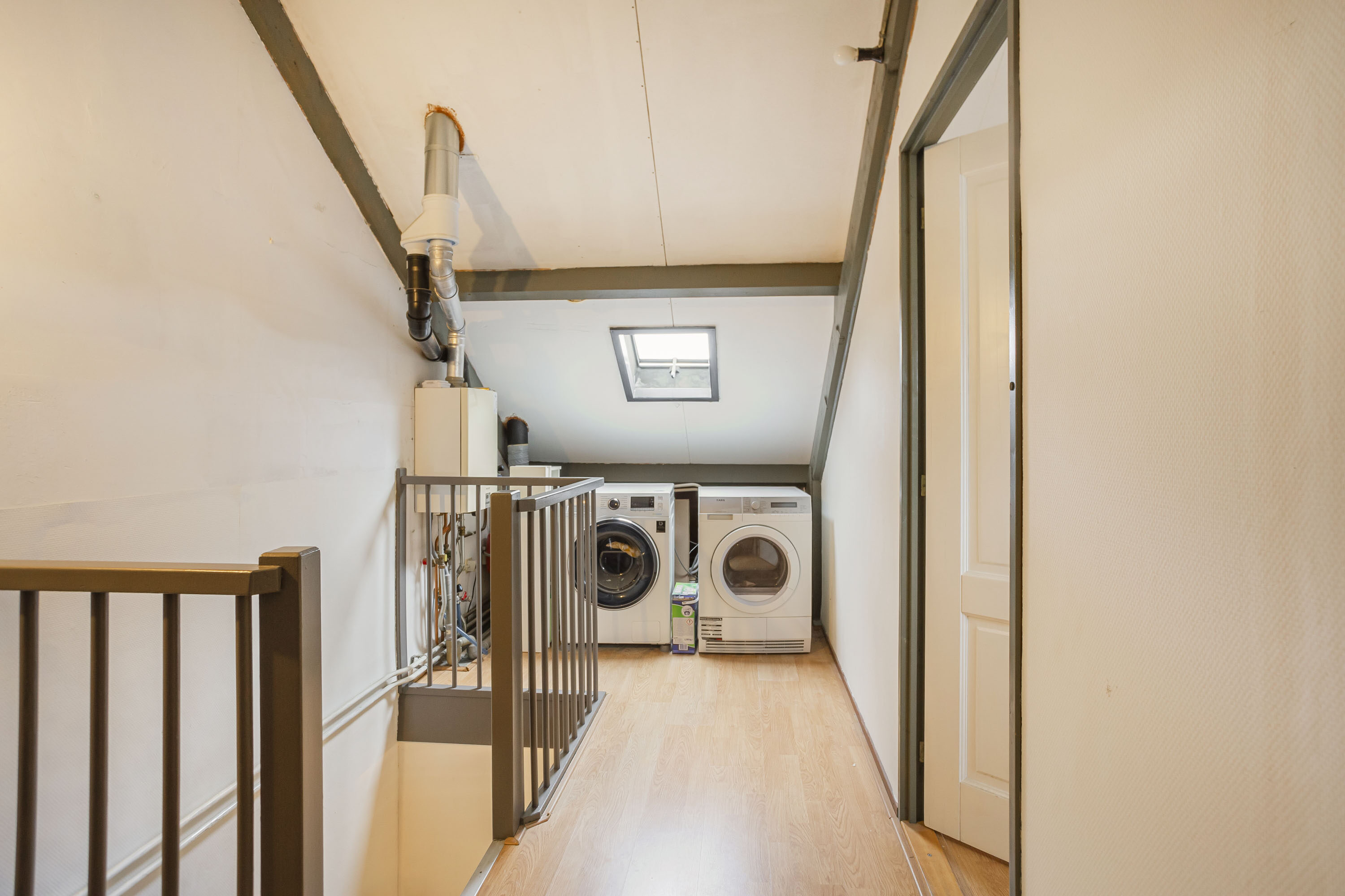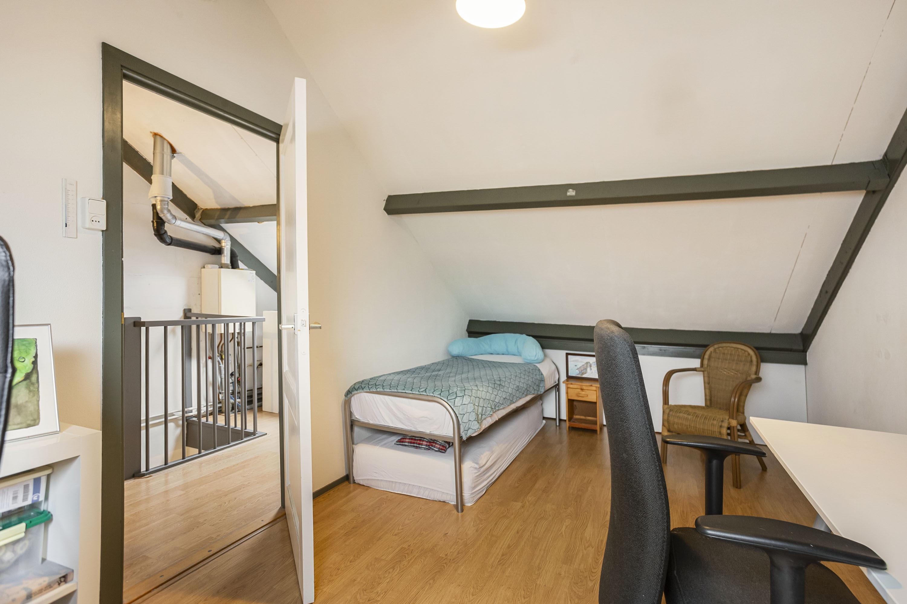 Via een vaste trap is de tweede verdieping bereikbaar. Op de voorzolder bevinden zich de witgoedaansluiting en de cv-installatie. Daarnaast is er een ruime vierde slaapkamer van circa 17 m², voorzien van laminaatvloer, dakraam en bergruimte. Deze ruimte kan ook perfect worden gebruikt als kantoor of logeerkamer.