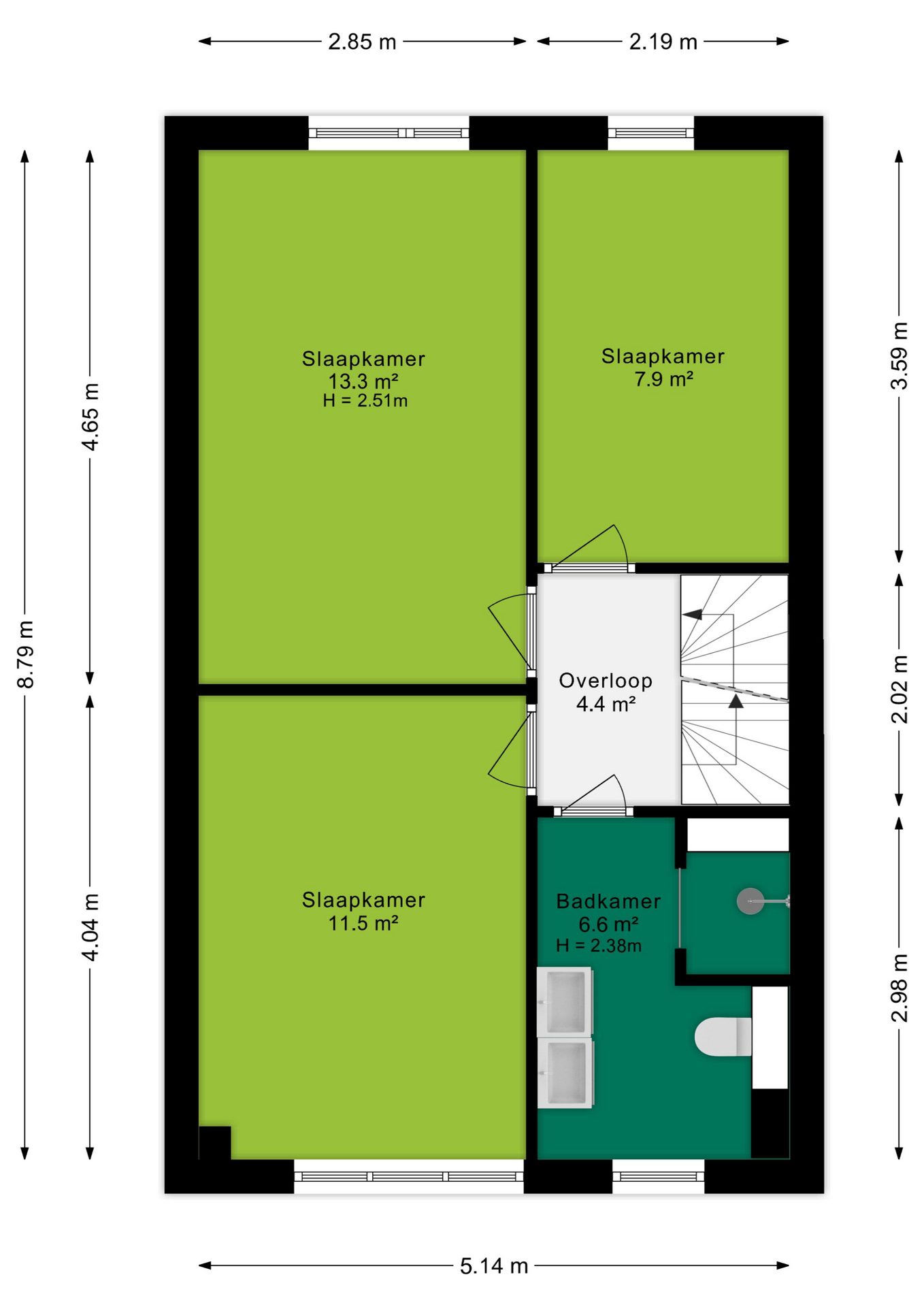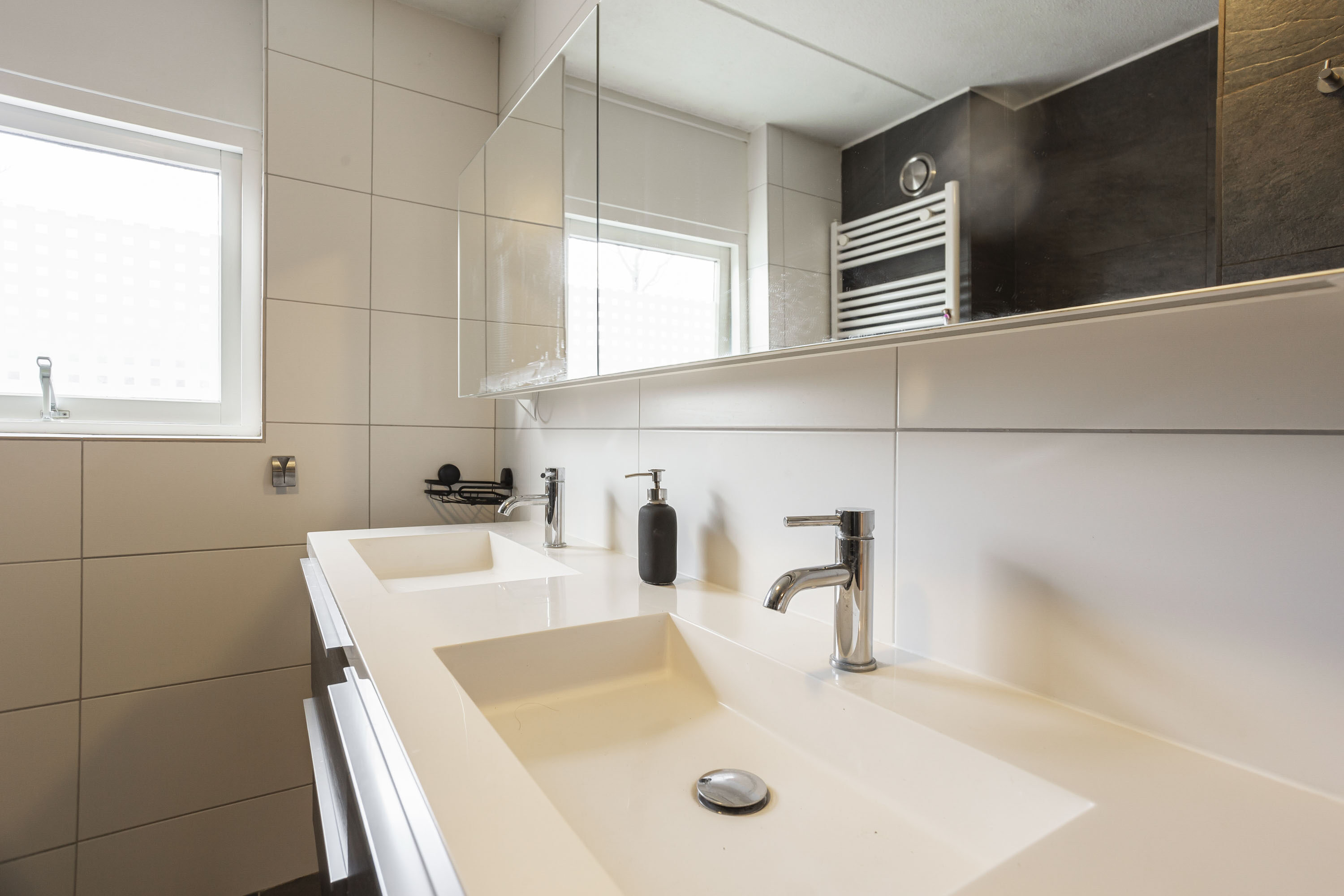 Via de overloop zijn de badkamer en de 3 slaapkamers te bereiken. De slaapkamers zijn voorzien van voldoende daglicht, een nette laminaatvloer en hebben een afmeting van ca. 14m2, 12 m2 en 8m2. De luxe vernieuwde badkamer is voorzien van een douche, dubbele wastafel en handig tweede toilet.