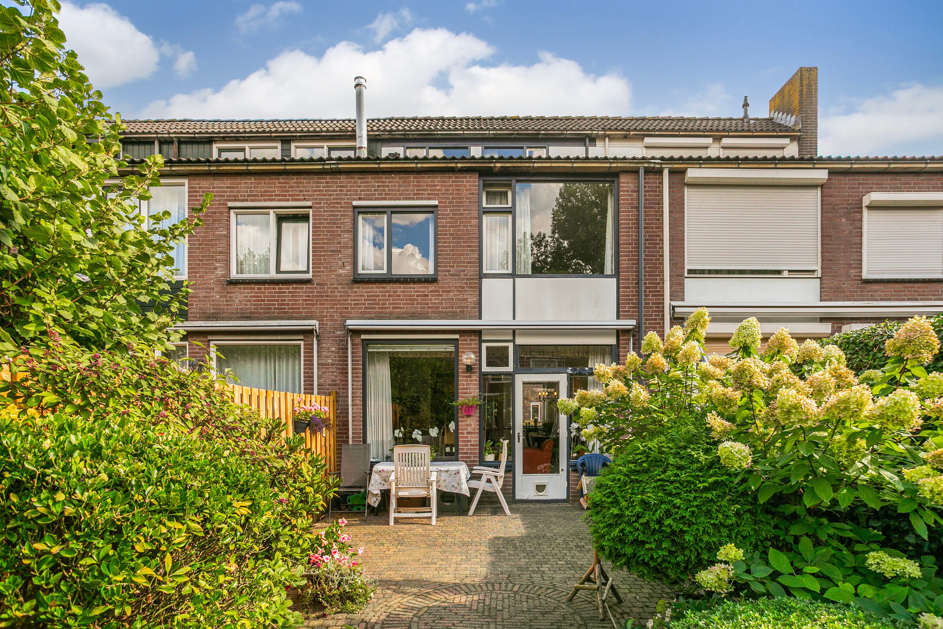 De groene achtertuin is circa 10 meter diep, waardoor je optimaal kunt genieten van zon en buitenleven. Dankzij de royale maatvoering is er ruimte voor een extra terrasje of een speelplek voor de kinderen. Daarnaast is er een praktische achterom. In de voortuin bevindt zich een berging, ideaal voor het stallen van fietsen en het opbergen van tuinspullen.