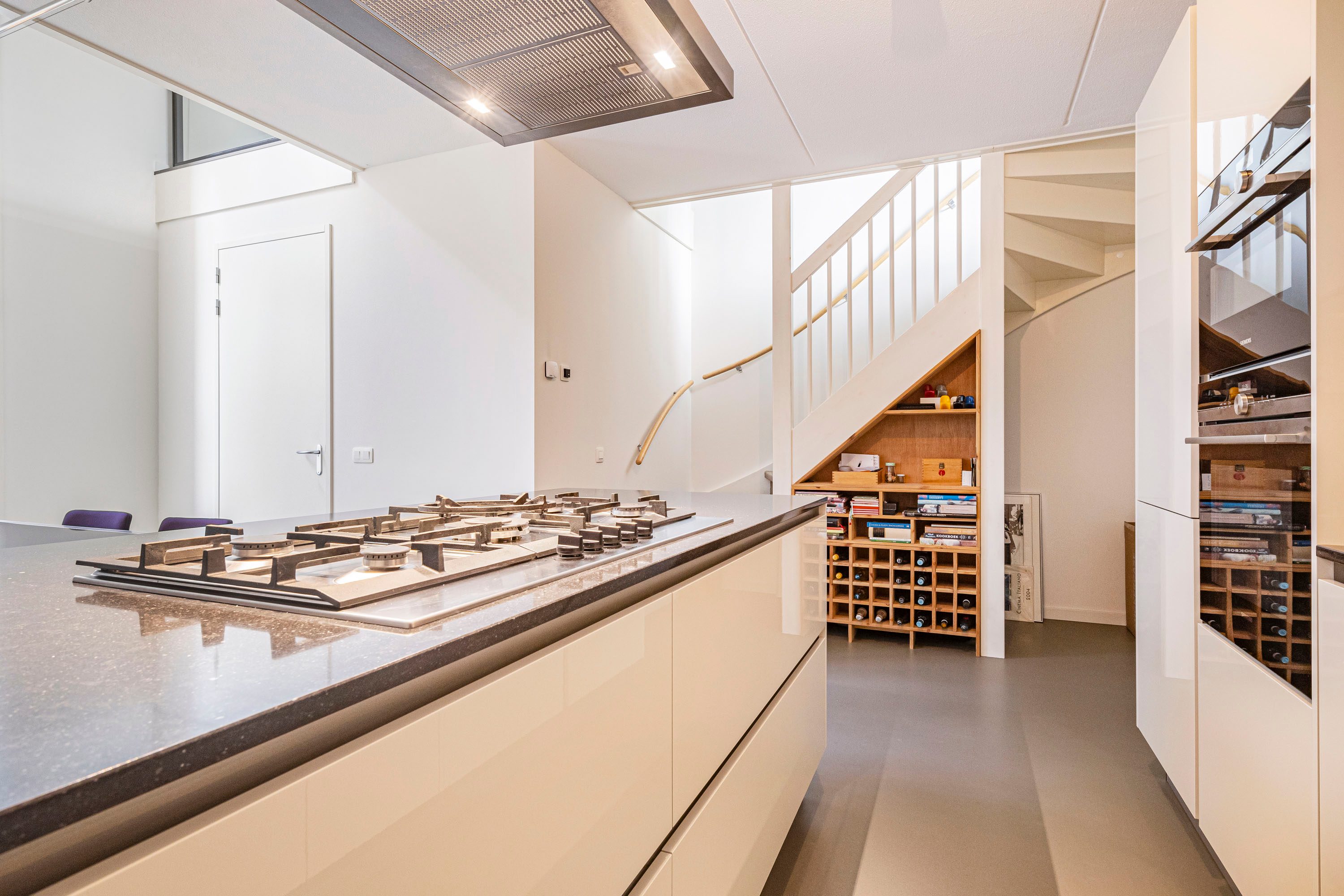 Via de entree met hal, meterkast en modern zwevend toilet bereik je de woning. De woonkeuken is voorzien van een gietvloer en heerlijk veel lichtinval. De woonkeuken is is goed bemeten en voorzien van een kookeiland en diverse inbouwapparatuur, te weten: een kookplaat, afzuigkap, oven, combi-oven/magnetron, koel-vriescombinatie en een vaatwasser. Door de fijne afmeting is er ruimte genoeg voor een grote eettafel en mede door de vide krijg je hier een ruimtelijk effect. De praktische bijkeuken heeft een afmeting van 14,7m² en hier is de witgoed-aansluiting aanwezig.