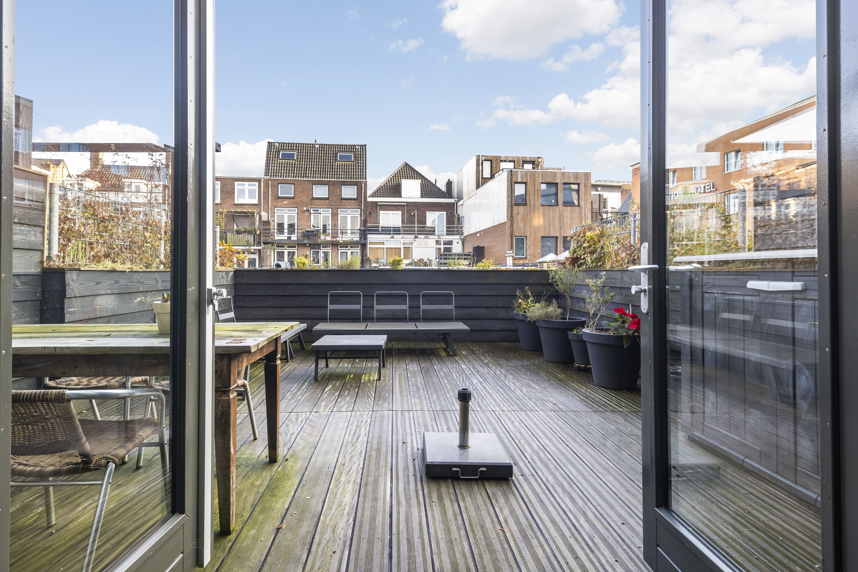 Het heerlijke dakterras is bereikbaar op de eerste verdieping vanuit de woonkamer. Het dakterras is gelegen op het oosten en hier kan je optimaal van het buitenleven en het zonnetje genieten. Vanuit de bijkeuken is de carport te bereiken. Hier is tevens een laadpaal aanwezig voor een elektrische auto.
