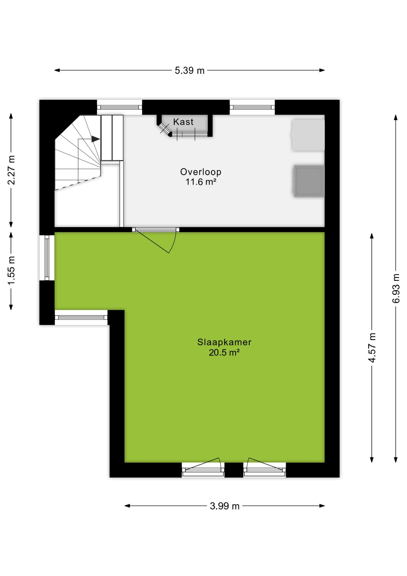 - Vier slaapkamers, waaronder een zeer ruime kamer op de 2e verdieping van ca. 21 m²