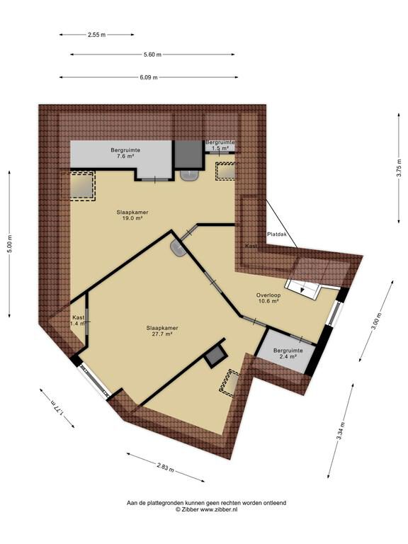 Via een vaste trap bereik je de volwaardig tweede verdieping. Deze verdieping telt nog eens 2 slaapkamers en veel opbergruimte. De slaapkamers zijn royaal bemeten met een oppervlakte van 27,7m² en 19m² en beide voorzien van een eigen wastafel. Er is veel opbergruimte aanwezig, ideaal voor het opslaan van je spullen.