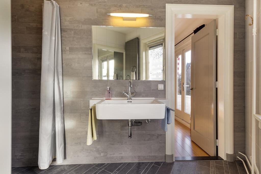 Het bijzondere trappenhuis geeft je toegang tot de eerste verdieping. Deze verdieping telt 3 slaapkamers, 2 badkamers en een separaat toilet. De slaapkamers zijn goed bemeten met een afmeting van 21,1m², 16,5m² en 7,7m². De grootste slaapkamer geeft toegang tot het balkon aan de voorzijde en aan de deze kamer grenst de eerste badkamer. Deze badkamer is voorzien van een inloopdouche, wastafel en een raam om te kunnen ventileren. De tweede badkamer is te bereiken via de royale overloop en is voorzien van een ligbad, inloopdouche en een wastafel. Vanuit deze badkamer krijg je toegang tot het 2e balkon welke is gelegen aan de achterzijde van de woning.