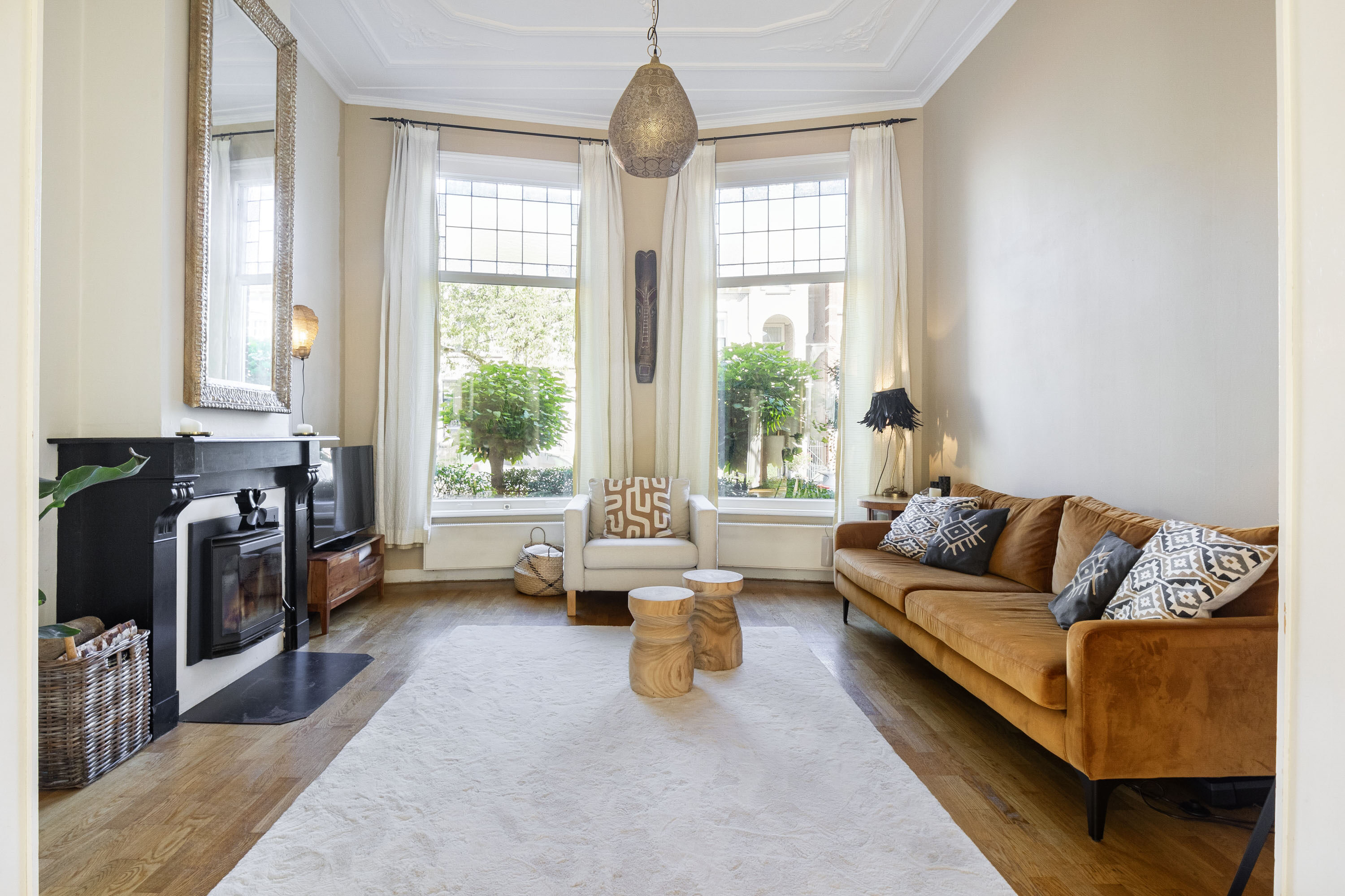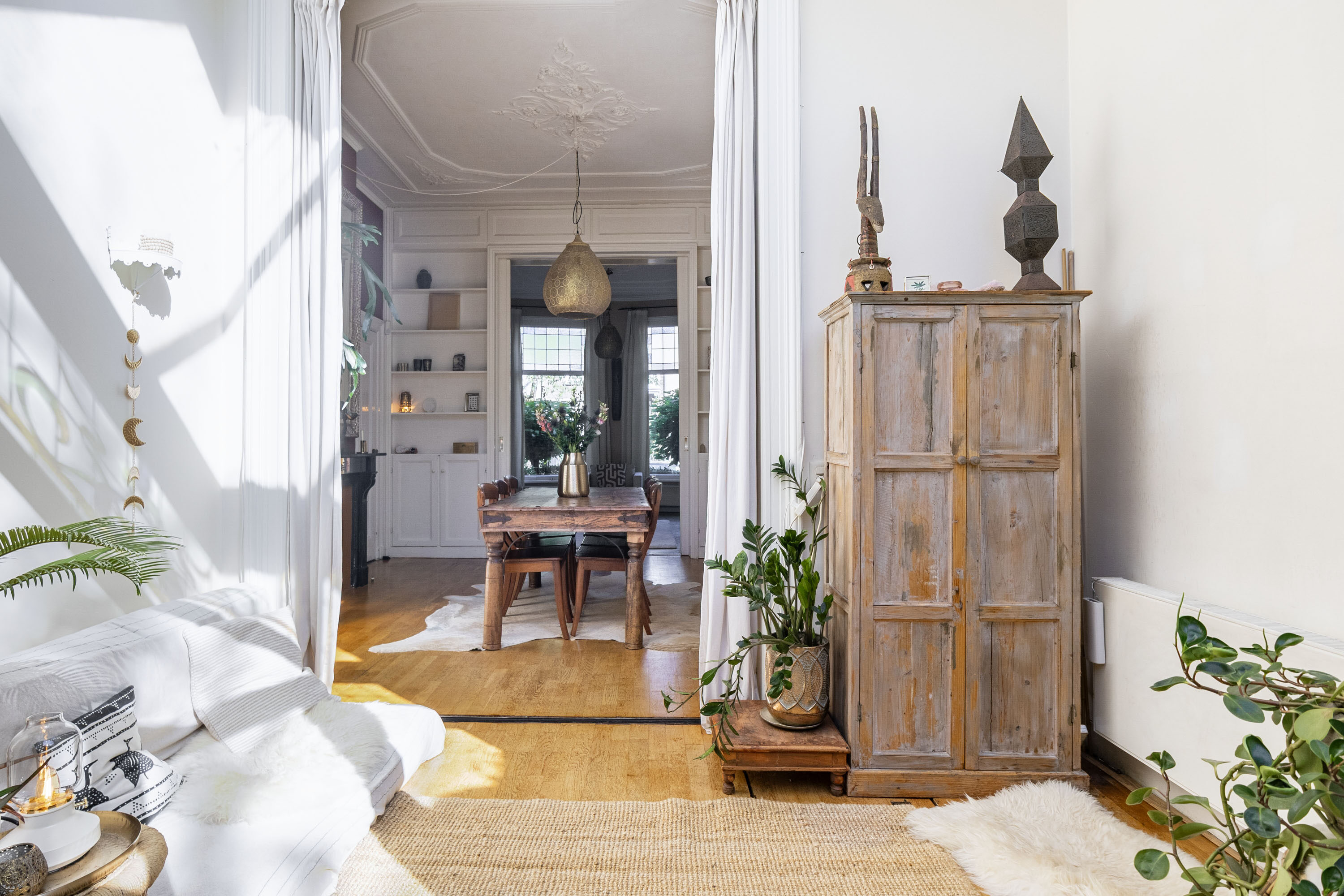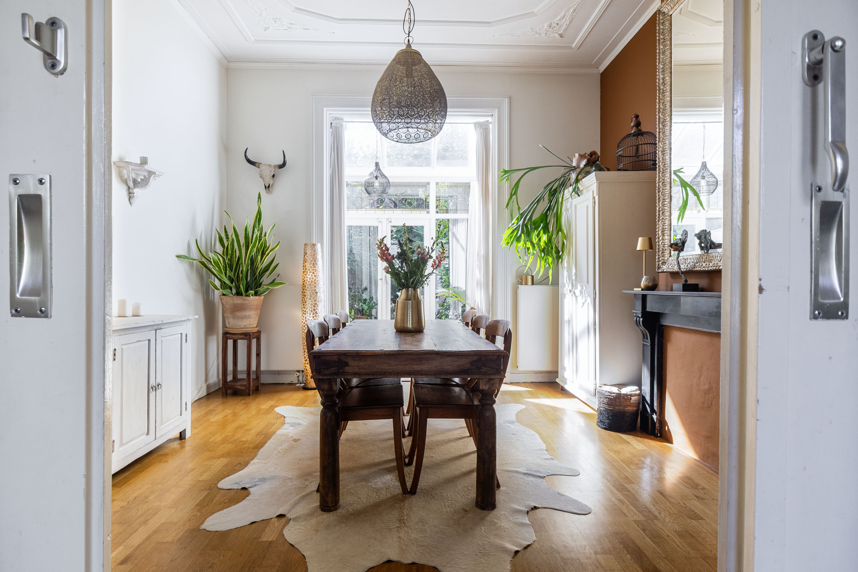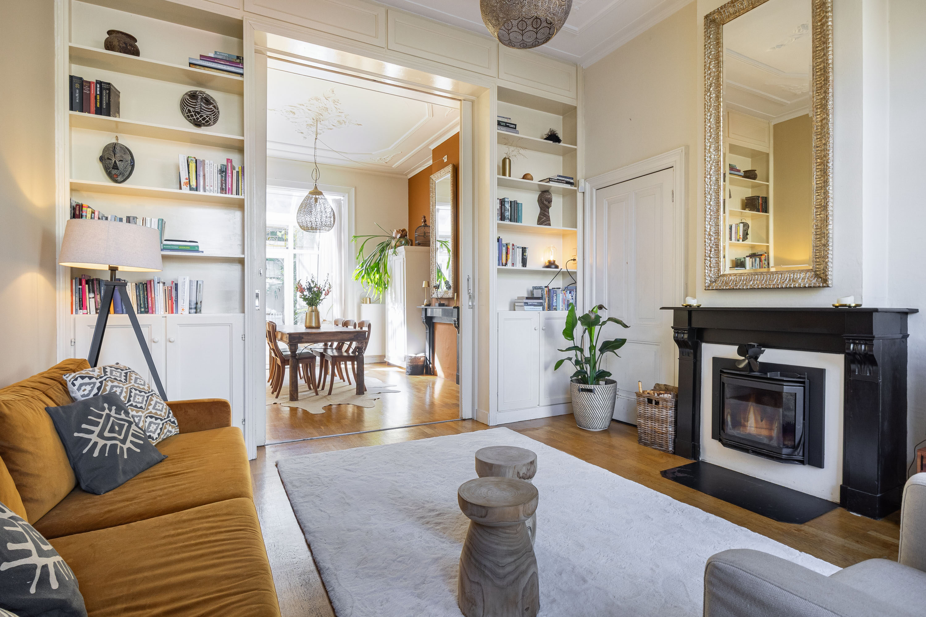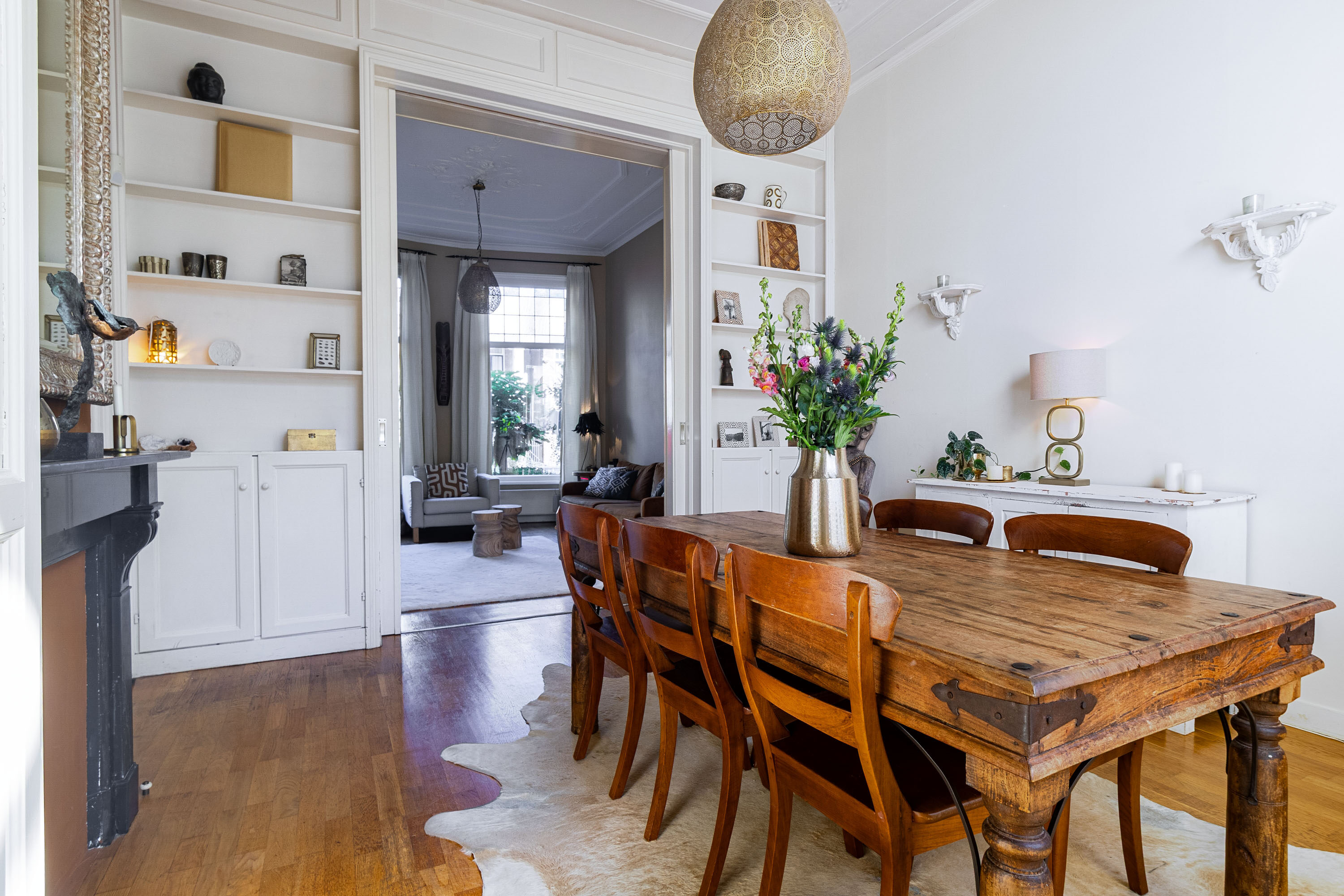 - Authentieke details: ornamentenplafonds, kamer-en-suite met schuifdeuren en fraaie paneeldeuren