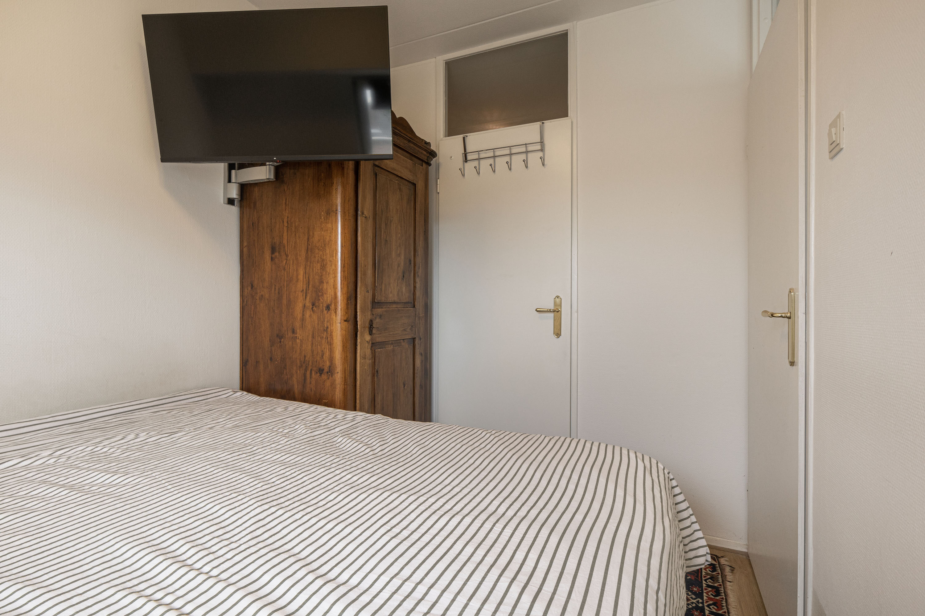 Binnenkomst via de entree, waarna de hal toegang biedt tot alle ruimtes van de woning. Hier vind je tevens een vaste kast en de meterkast.
