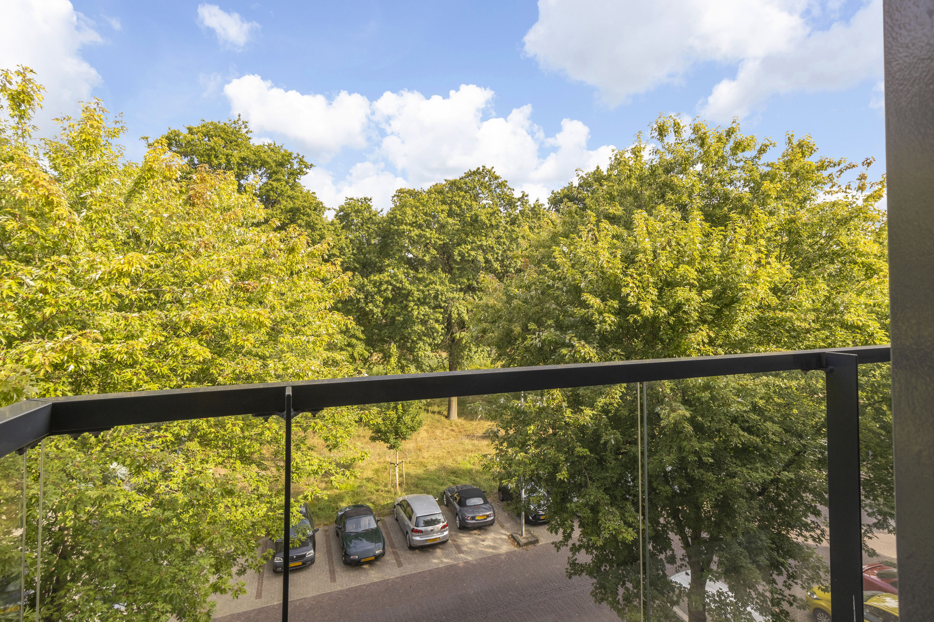 Op de eerste verdieping bevindt zich de royale woonkamer van circa 41 m² met laminaatvloer. Grote raampartijen aan beide zijden zorgen voor veel lichtinval. Ook geniet je hier van vrij en groen uitzicht. Aan de achterzijde is een klein balkon aanwezig.