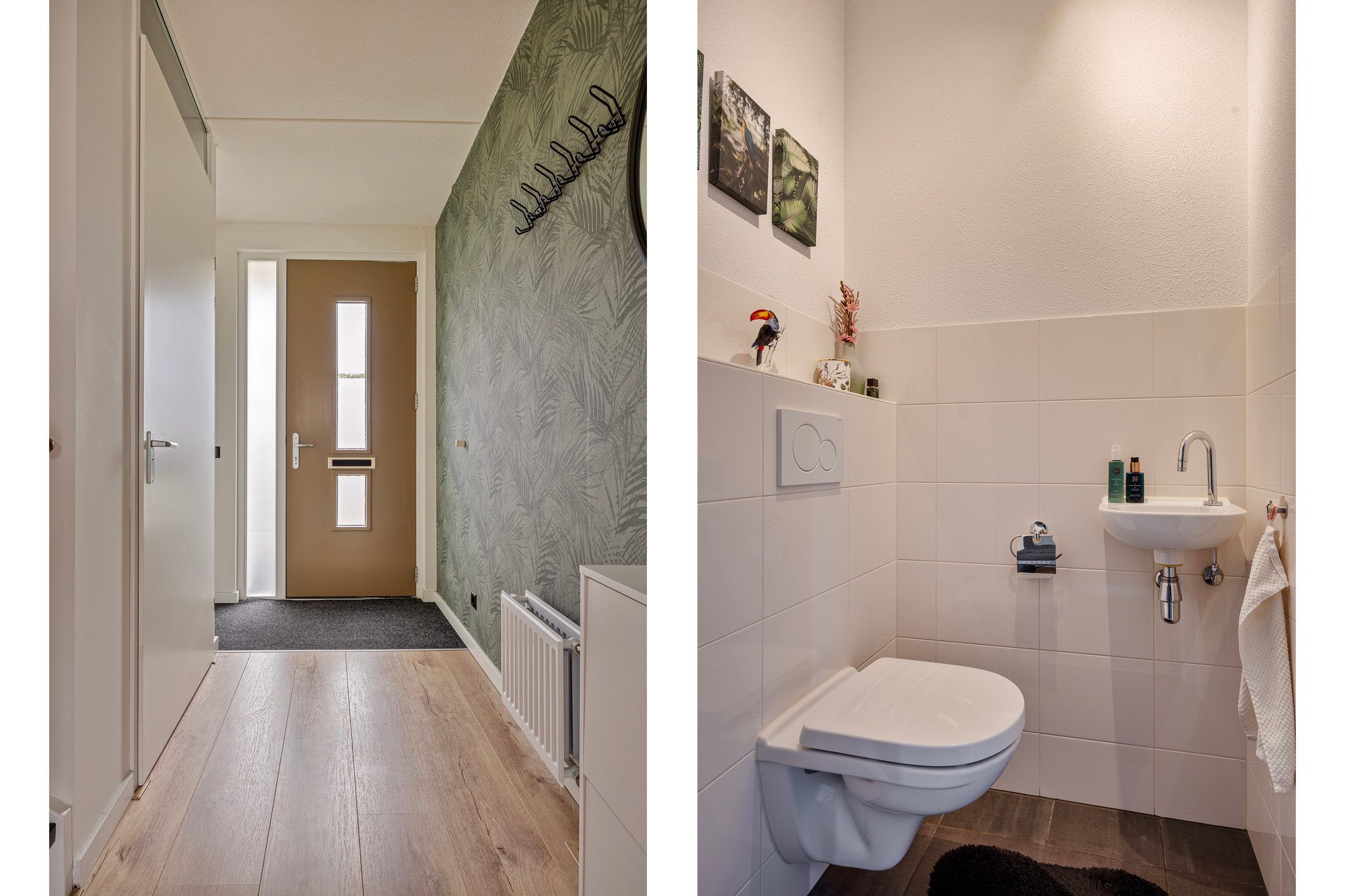 Via de entree kom je in de ruime hal met meterkast en een separaat toilet. Vanuit hier is er toegang tot de woonkamer en de keuken. De lichte woonkamer van ca. 30 m² is voorzien van een sfeervolle laminaatvloer, strak afgewerkte wanden en veel natuurlijke lichtinval. De sfeerhaard met tv-nis vormt een mooi middelpunt in de ruimte. Dankzij de fijne indeling is er voldoende plaats voor een grote eettafel, waarbij de ligging tussen de woonkamer en keuken zorgt voor een prettige verbinding tussen beide ruimtes.
