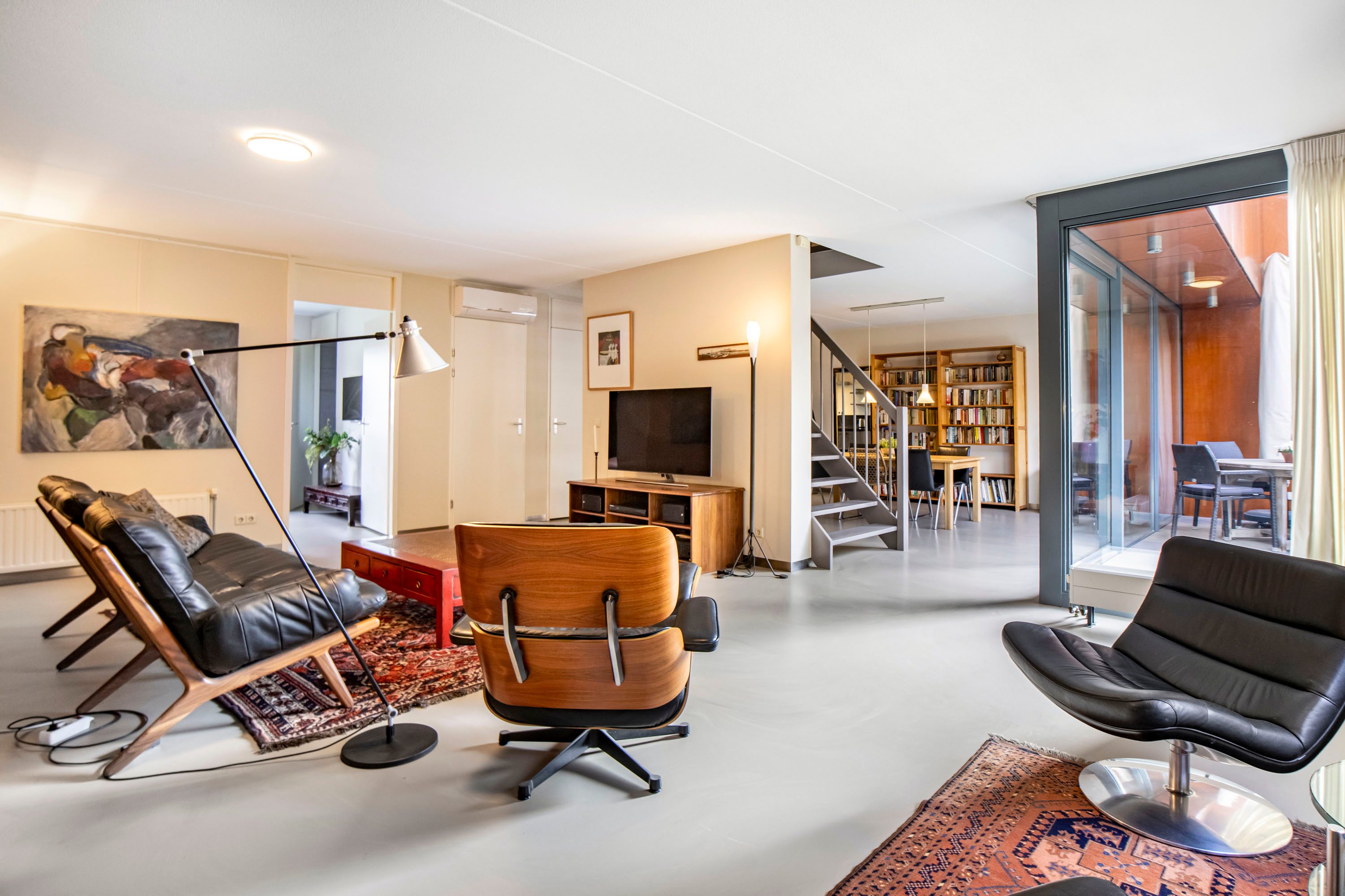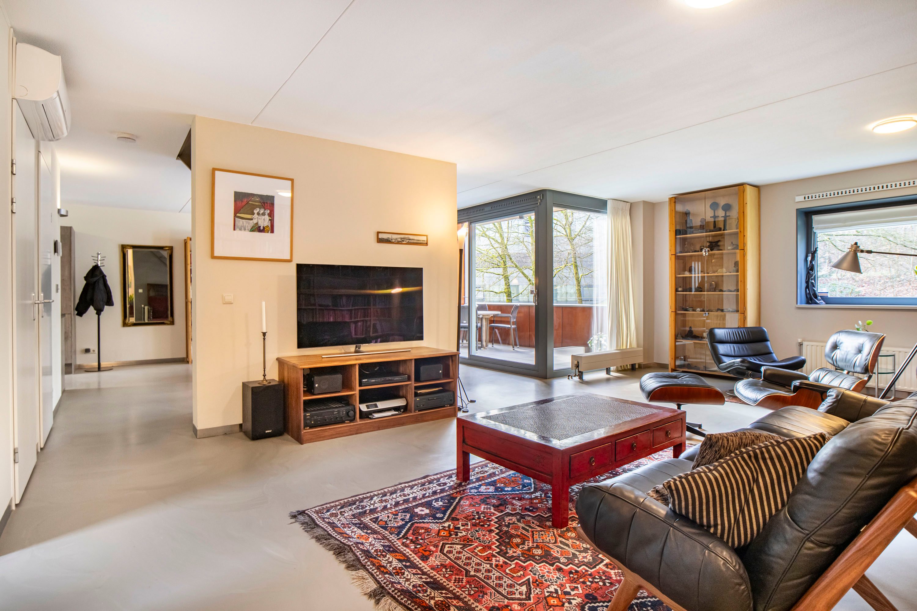 - Woonkamer voorzien van airconditioning en een gietvloer