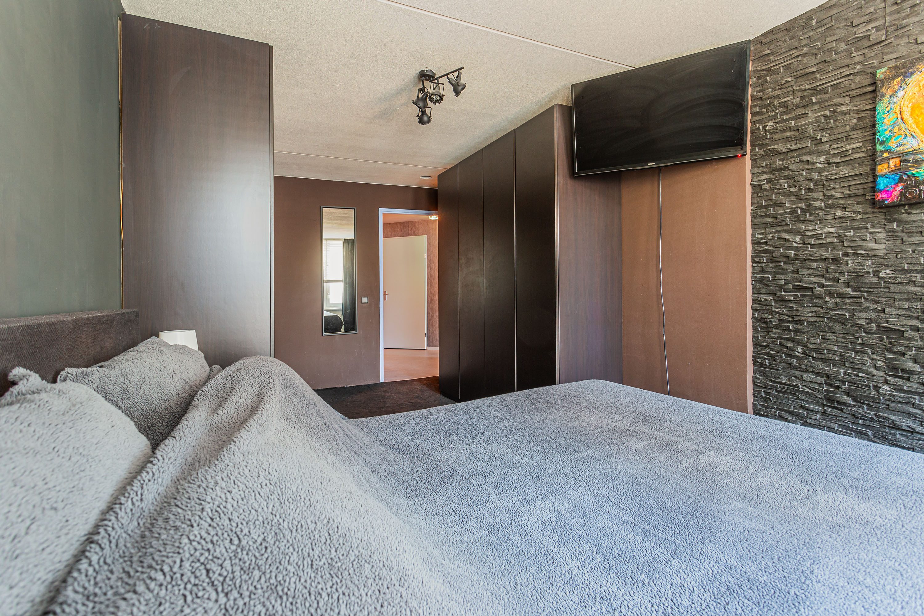 Via de hal in het midden van de woning bereik je o.a. de - eveneens - enige, maar grote slaapkamer van ruim 17m². Met de mogelijkheid om deze eenvoudig te splitsen om een slaapkamer én een aparte inloopkast te realiseren.
