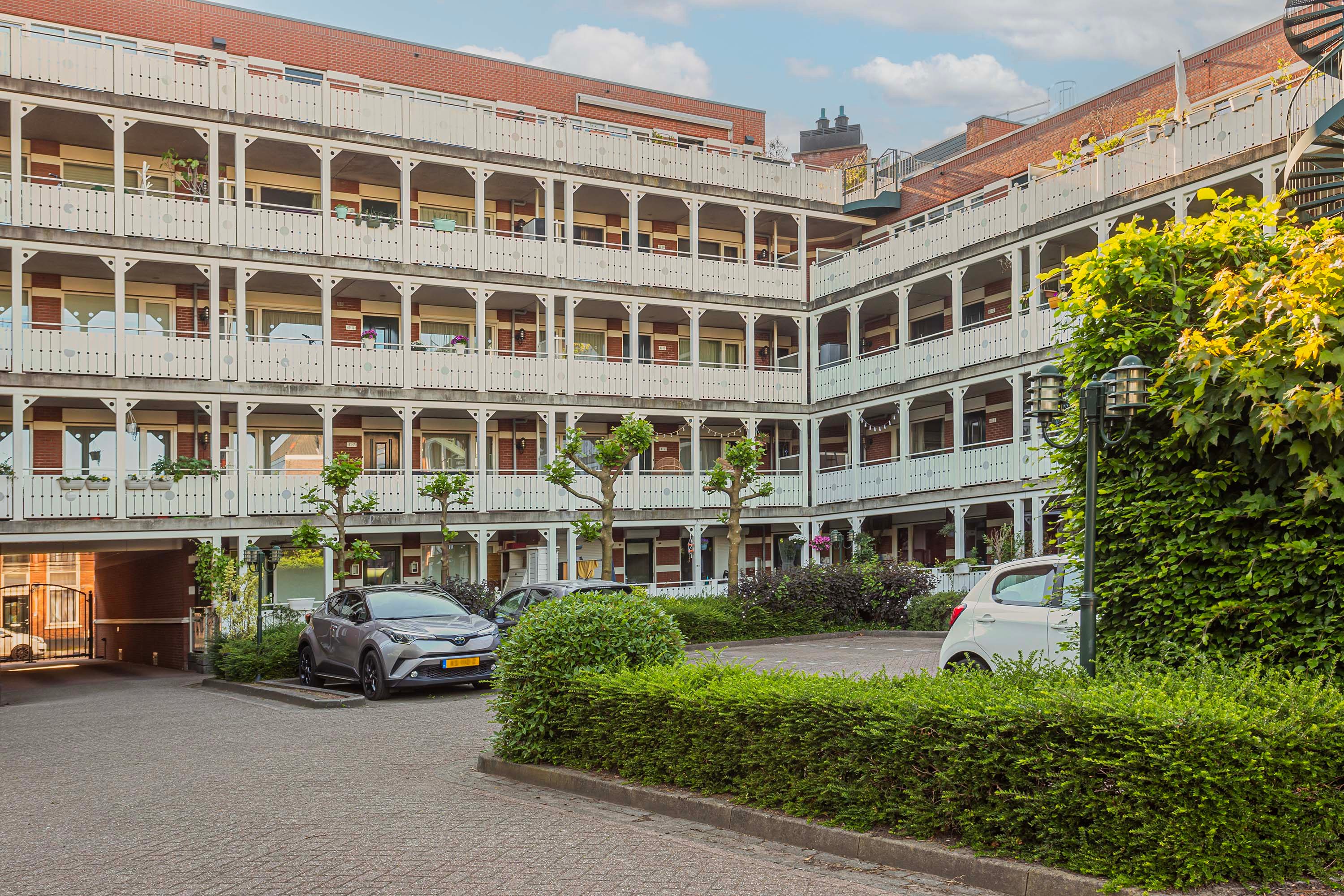 Via de buitendeur aan de achterkant van het appartement bereik je direct de (beveiligde) privé parkeerplaats. In de onderbouw is er een ruime berging aanwezig waar je je fiets of (seizoen)spullen kunt stallen. Op het afgesloten parkeerterrein zelf bevind zich eveneens een fietsenstalling.