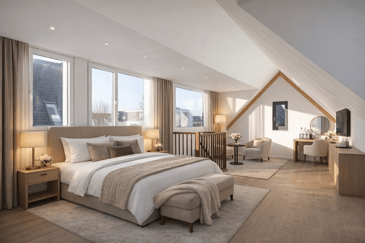 Via een vaste trap bereik je de volwaardige tweede verdieping met een royaal oppervlak van circa 38m². Deze verdieping ademt rust, ruimte en comfort en leent zich bij uitstek voor het creëren van een luxueuze master suite met een echt hotelgevoel. Dankzij de dakkapellen geniet je hier van opvallend veel daglicht, wat zorgt voor een lichte en ontspannen sfeer, perfect voor jouw droom slaapkamer met bijvoorbeeld een inloopkast of werk-/leeshoek. Met enkele aanpassingen is deze verdieping bovendien flexibel in te delen en geschikt voor het realiseren van één of meerdere (slaap)kamers.