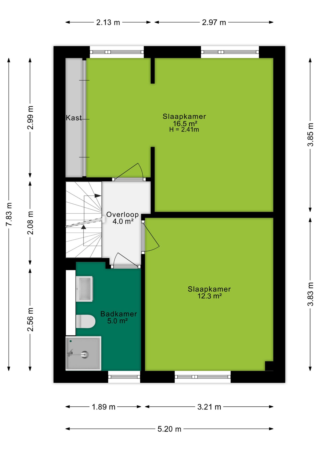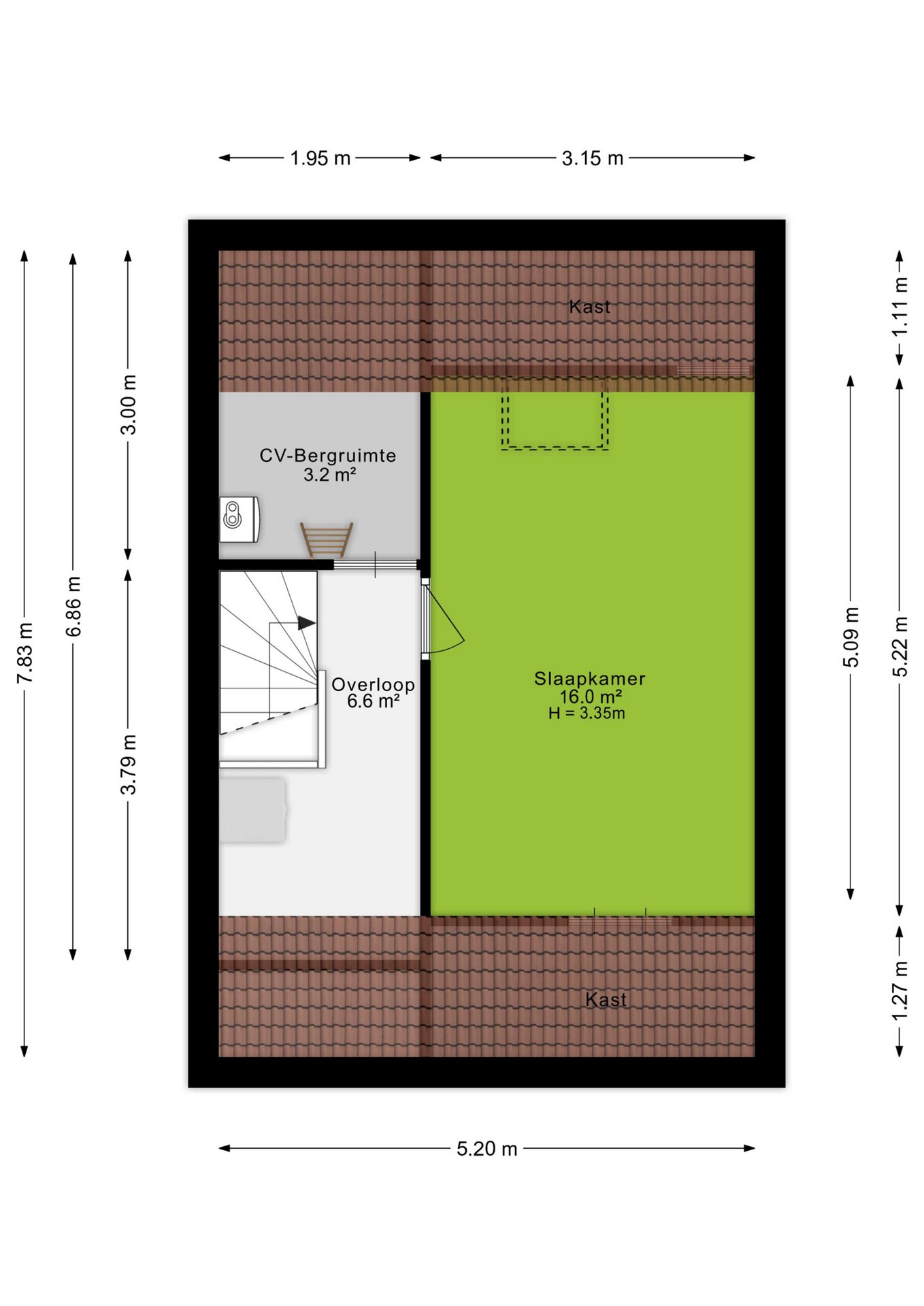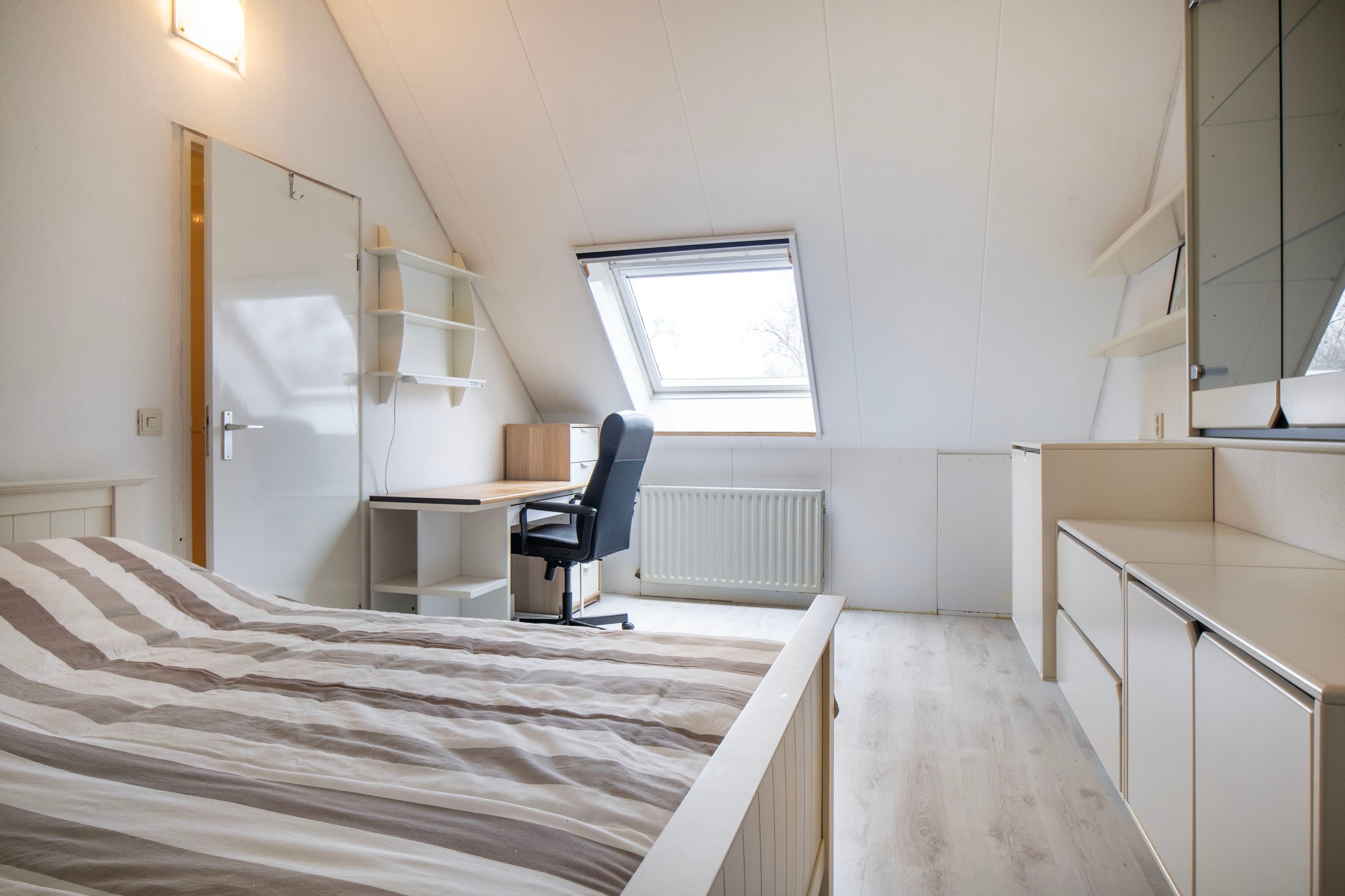 Op deze verdieping bevindt zich de derde slaapkamer van circa 16 m², een ruime kamer die uitstekend geschikt is als extra slaapkamer of werkruimte. Aan beide zijden van de slaapkamer zijn kastruimtes achter schotten aanwezig, wat extra handige opbergruimte biedt. Dankzij de ruimte zijn er bovendien mogelijkheden om de verdieping anders in te delen en eventueel meerdere kamers te realiseren.