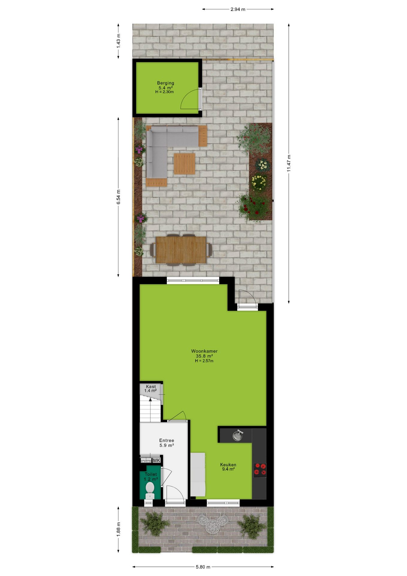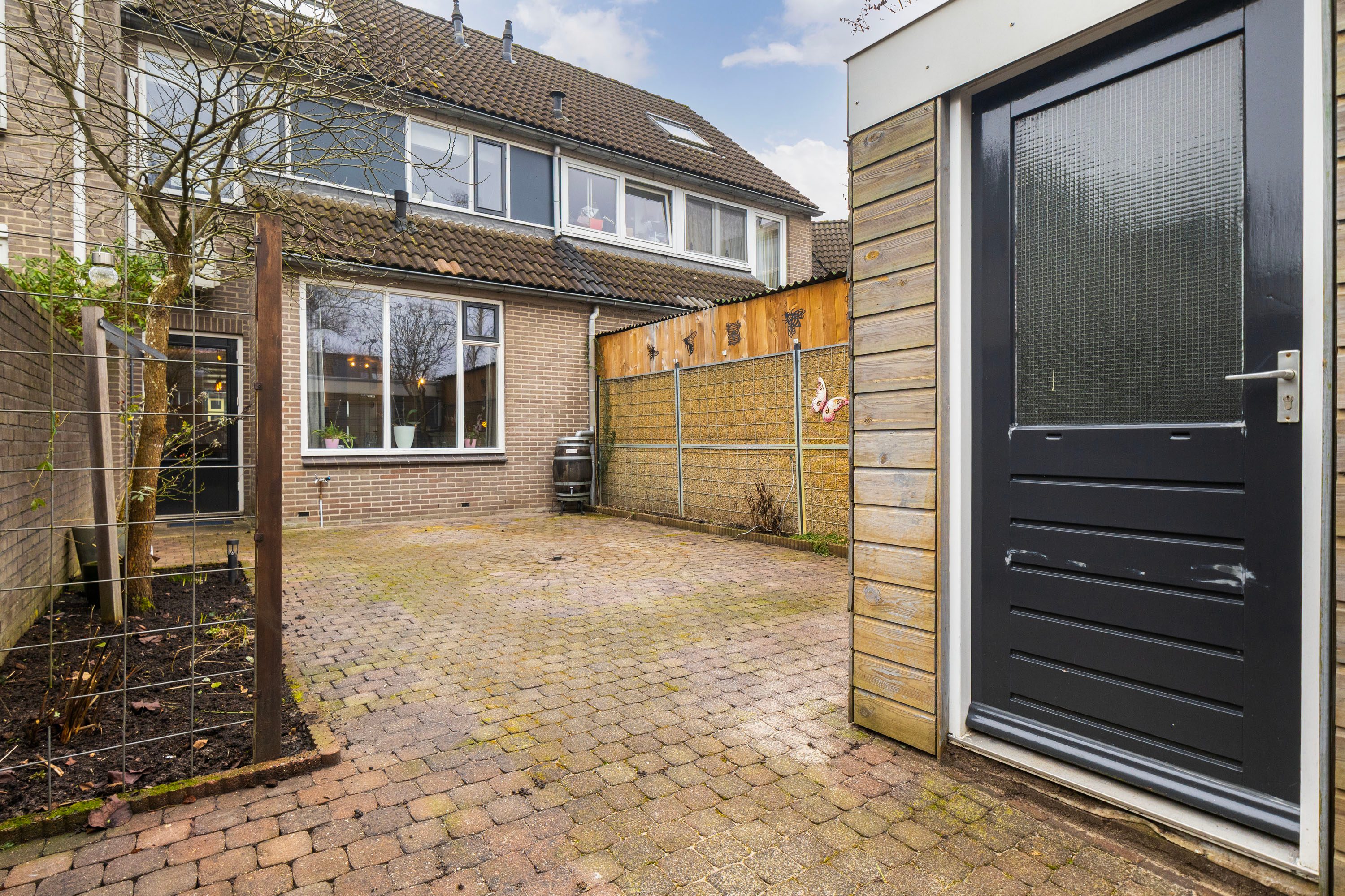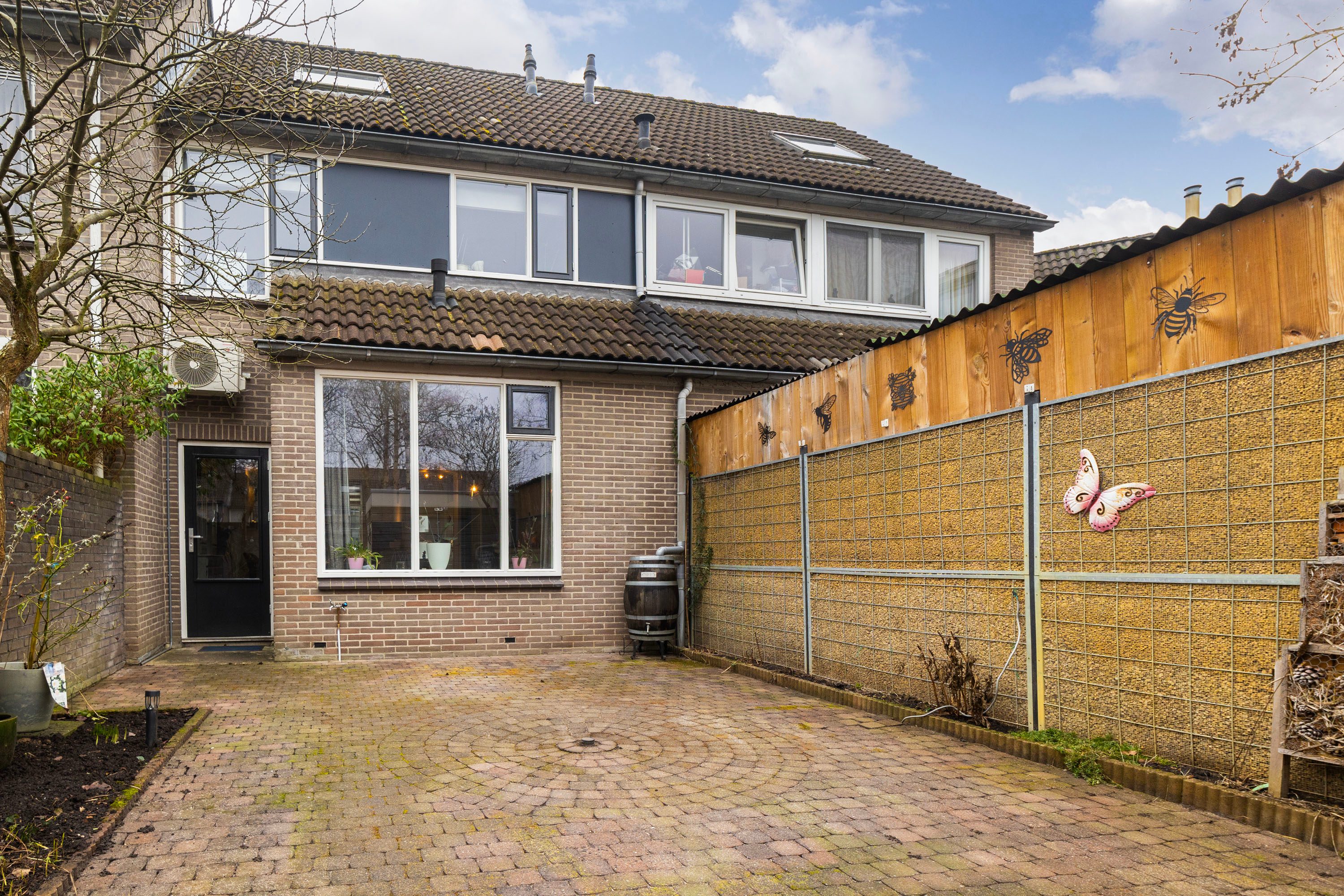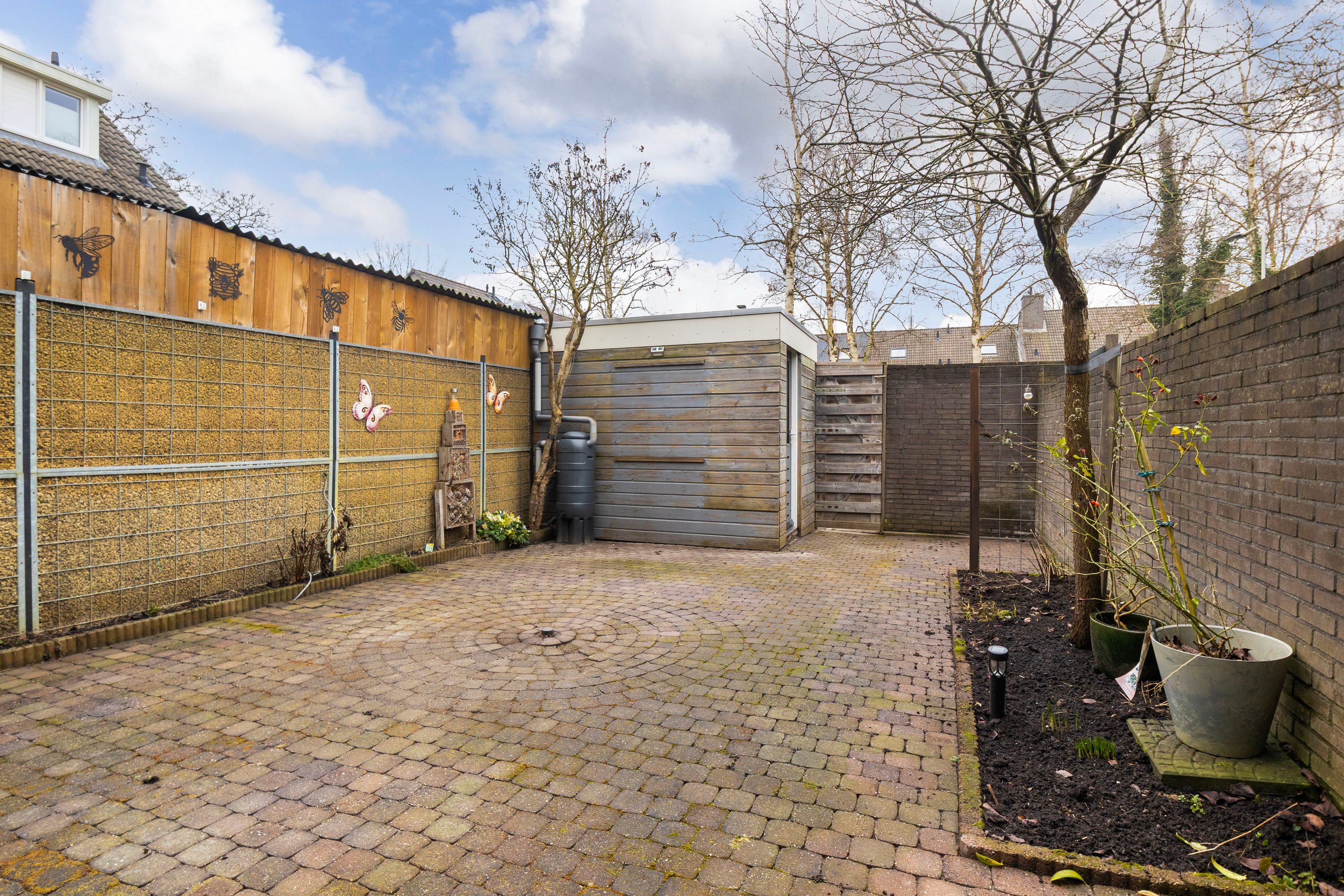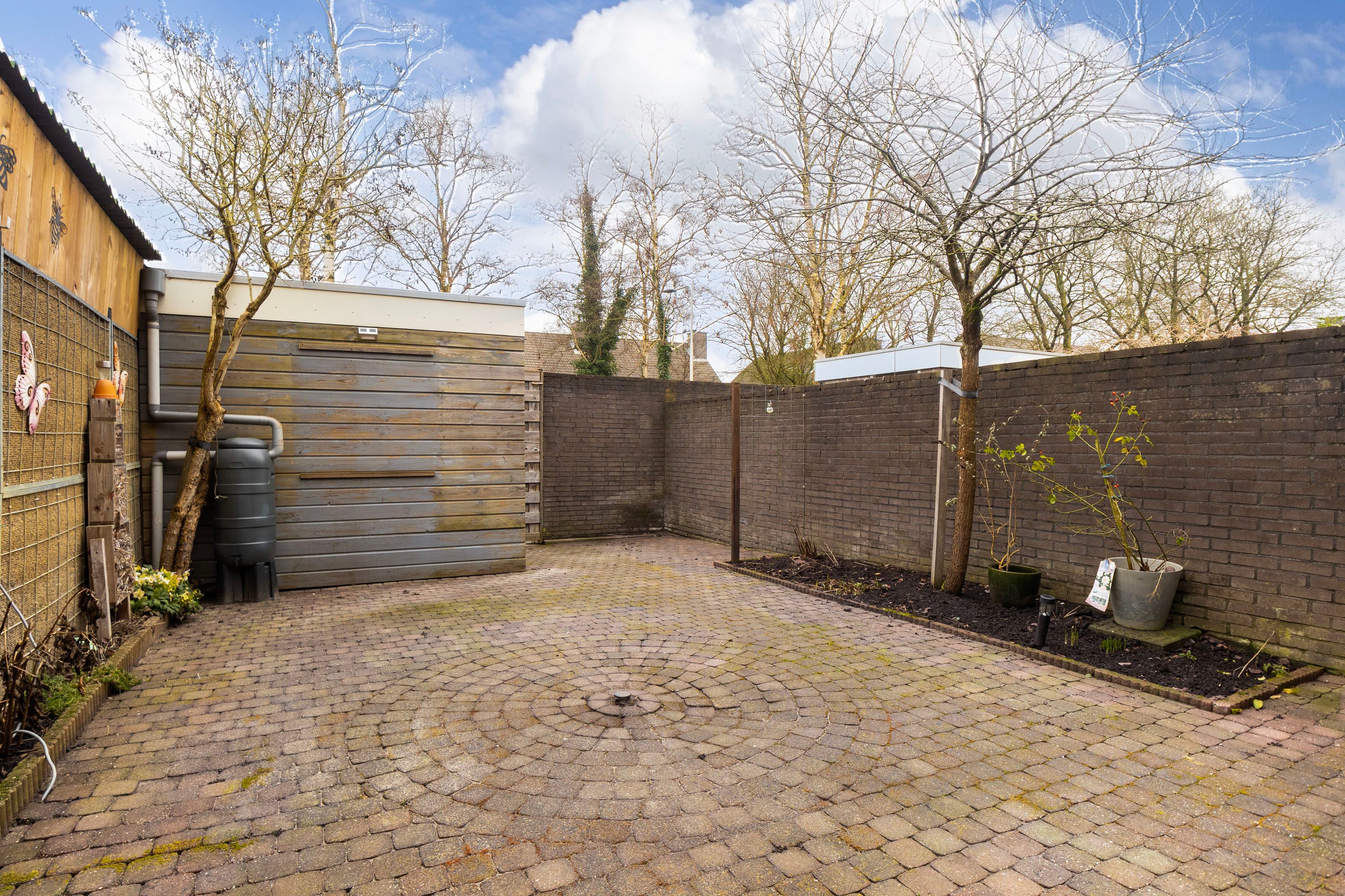 De achtertuin is vanuit de woonkamer via de achterdeur bereikbaar, maar ook via de poort achterom. De tuin die op het noordoosten ligt van circa 58 m², biedt voldoende ruimte voor zowel een comfortabele loungehoek als een gezellige tuintafel. Achterin bevindt zich een berging van ongeveer 5 m², ideaal voor het stallen van fietsen of het opbergen van spullen.