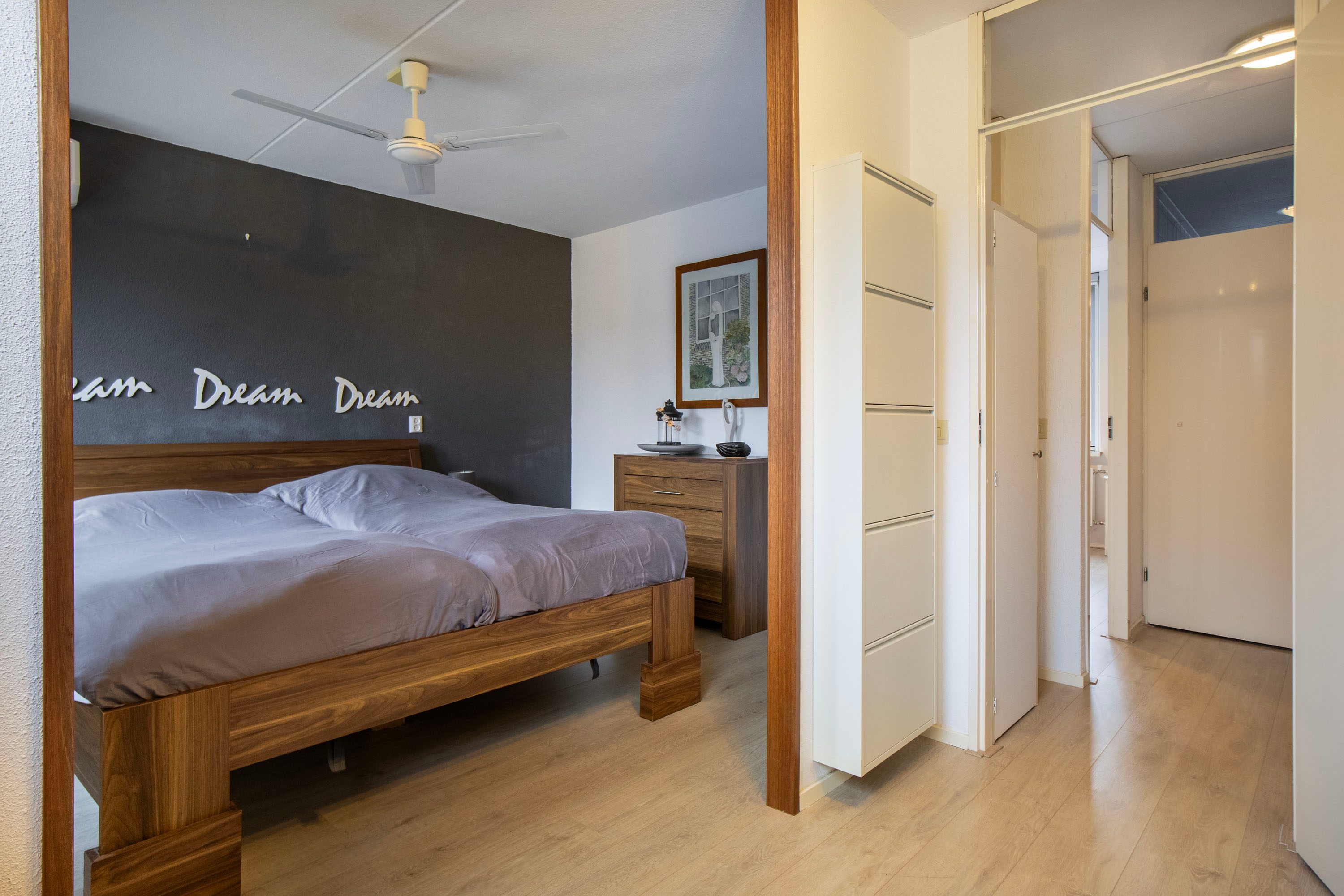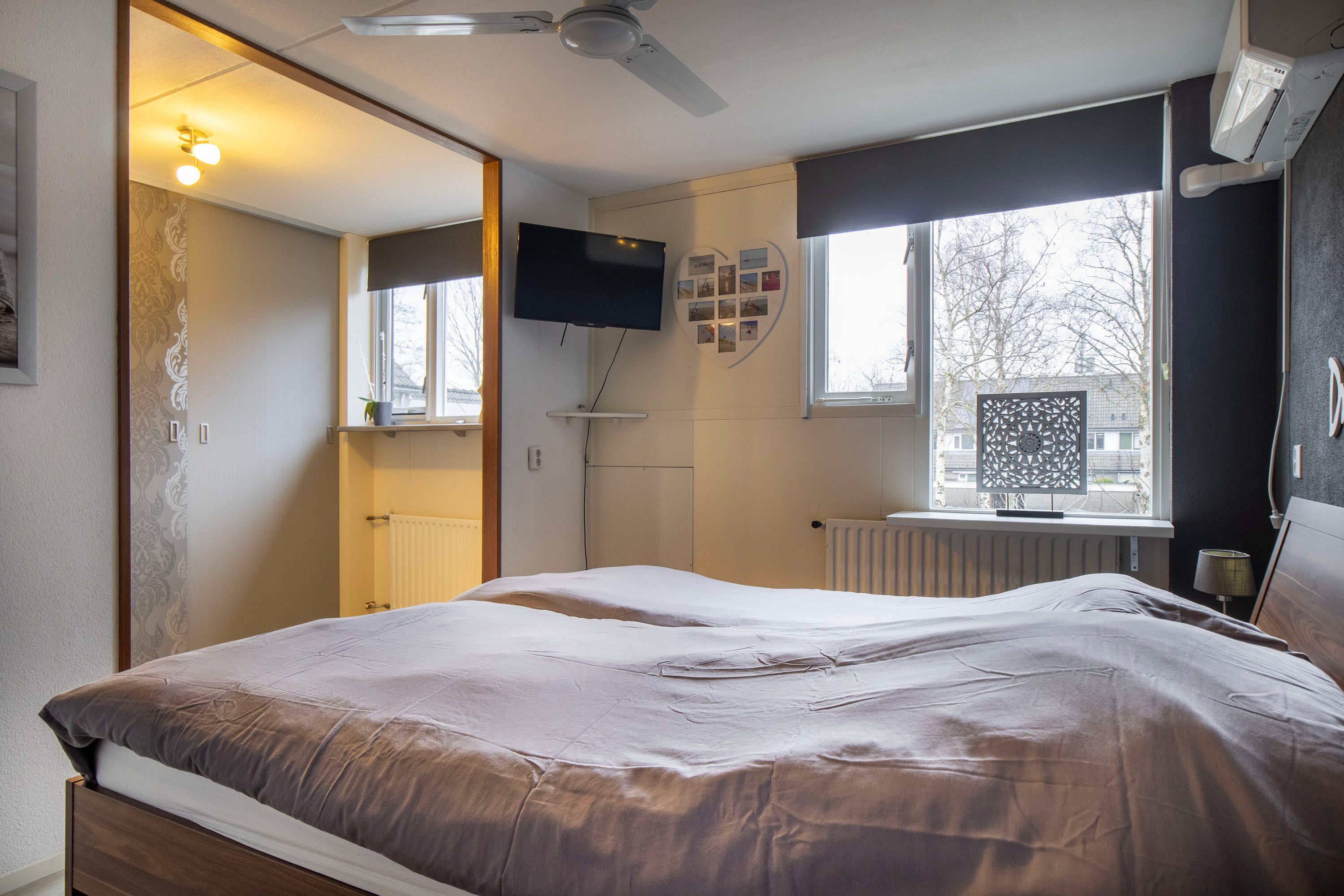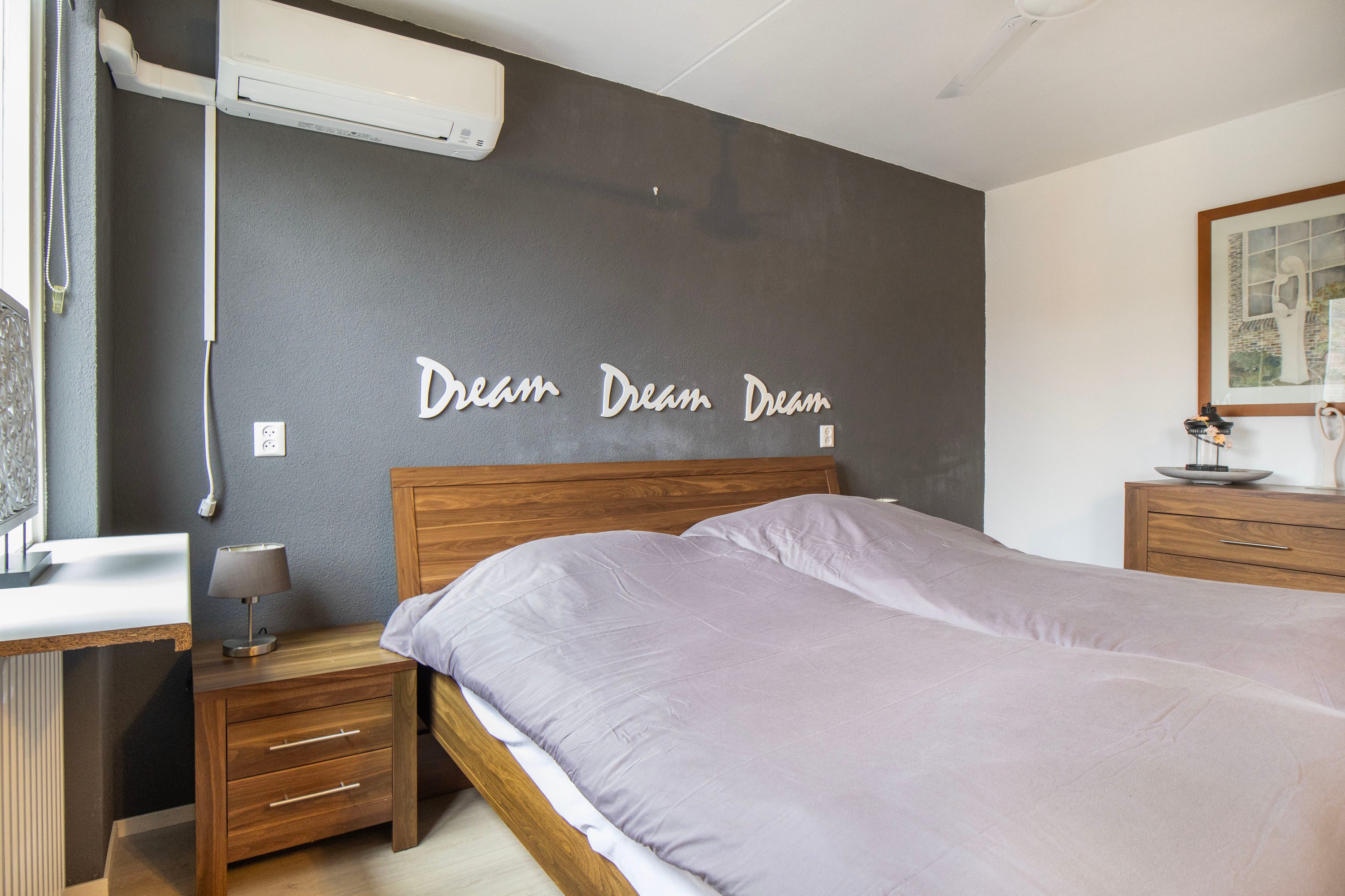 De grootste slaapkamer van circa 16 m² ligt aan de achterzijde van de woning en is voorzien van een airconditioning, wat zorgt voor extra comfort tijdens warme dagen. Daarnaast is er een ventilatorlamp aan het plafond aanwezig (ter overname). Uniek aan deze kamer is de doorgang naar een aparte ruimte die ideaal is als inloopkast of kleedgedeelte. Oorspronkelijk bestond dit uit twee afzonderlijke kamers, waardoor het eenvoudig mogelijk is om weer een extra slaapkamer te realiseren.