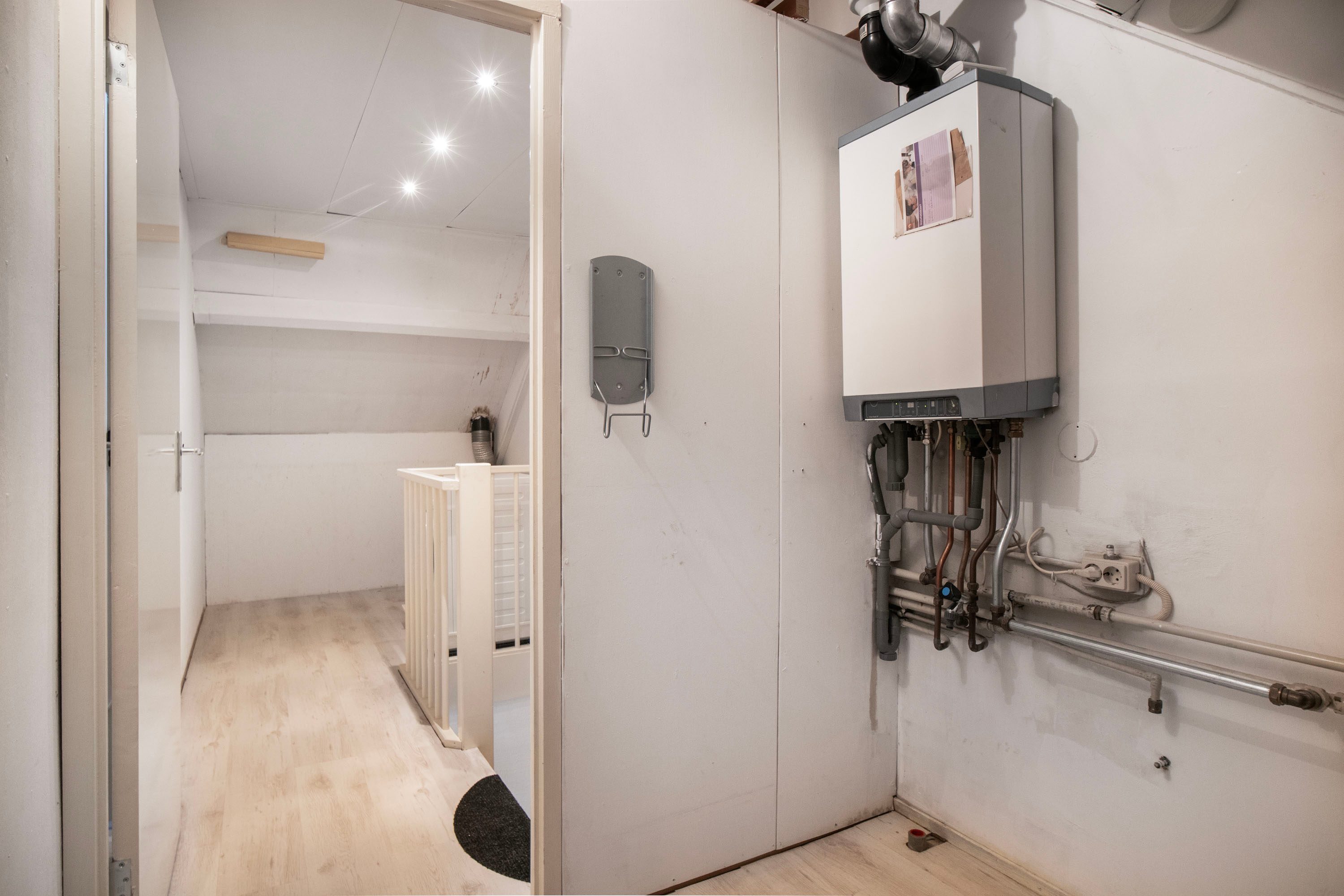 Daarnaast is er op de overloop een aparte bergruimte aanwezig waar de cv-installatie staat opgesteld.